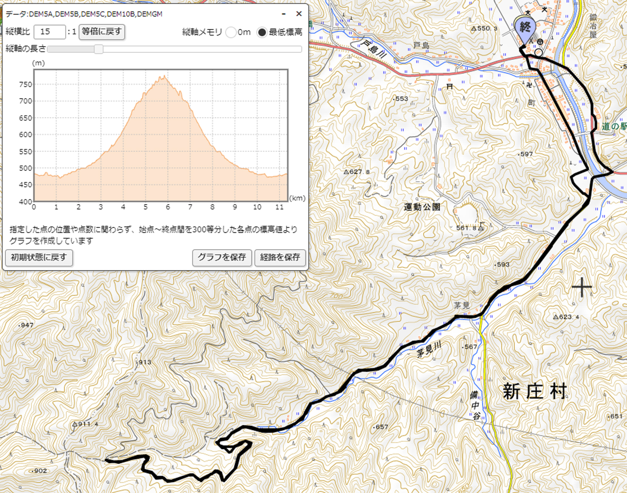でも、12km弱で・・やはり、300mくらいは上りました。