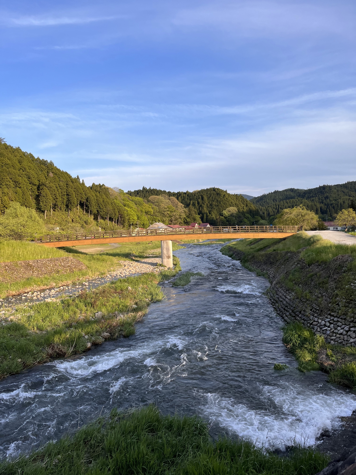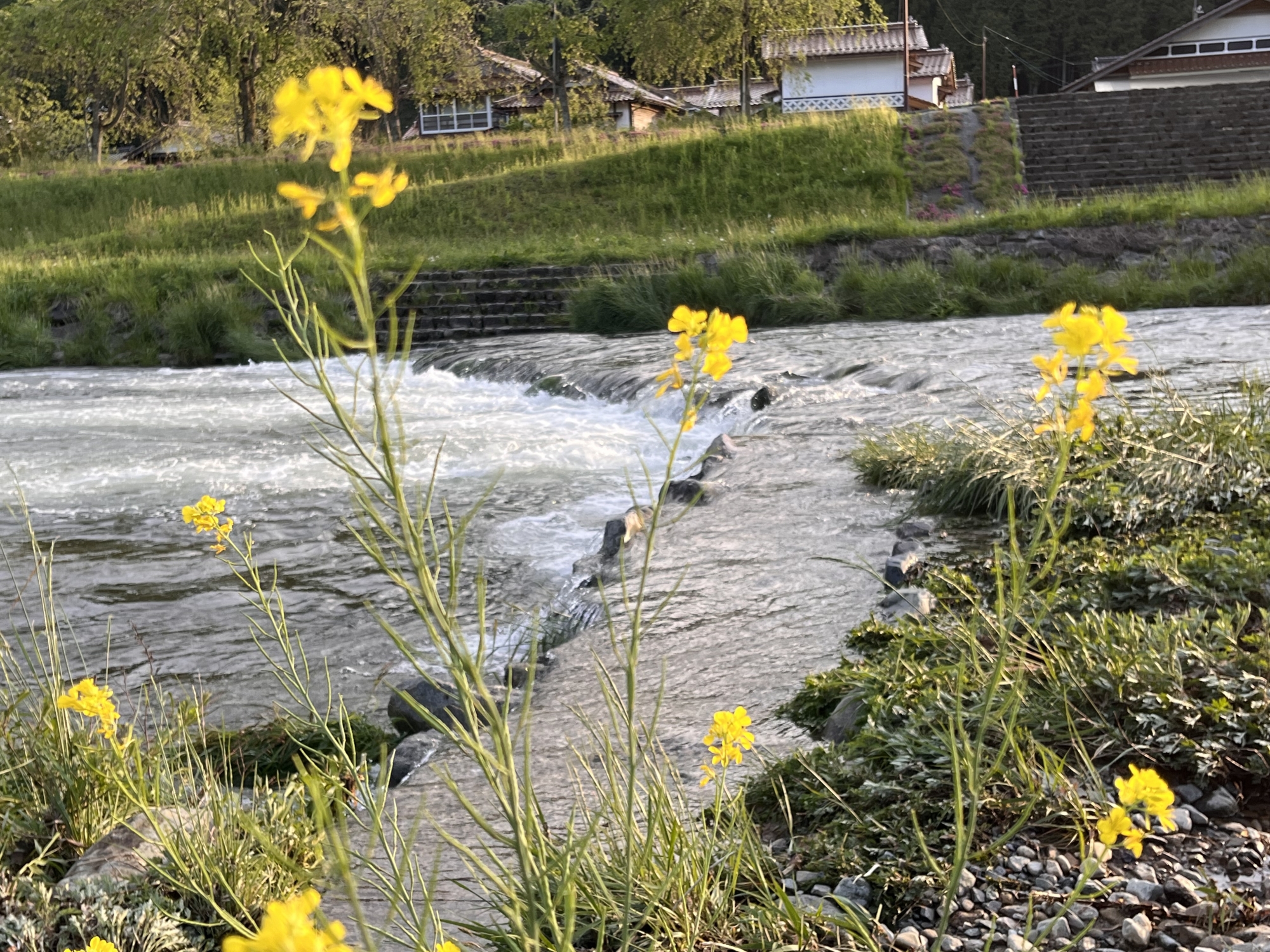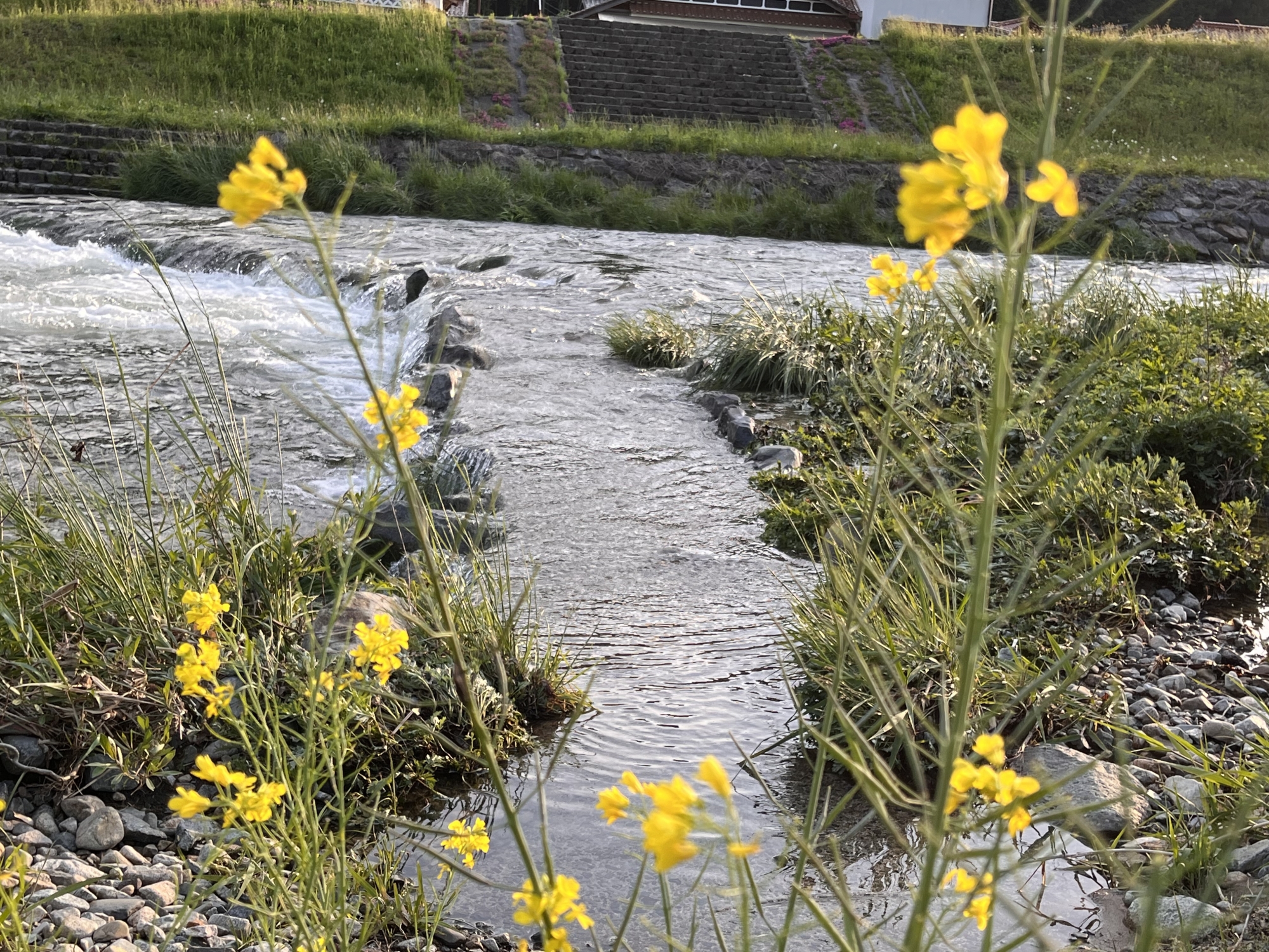 ここ二日の雨で、新庄川は水量豊富。