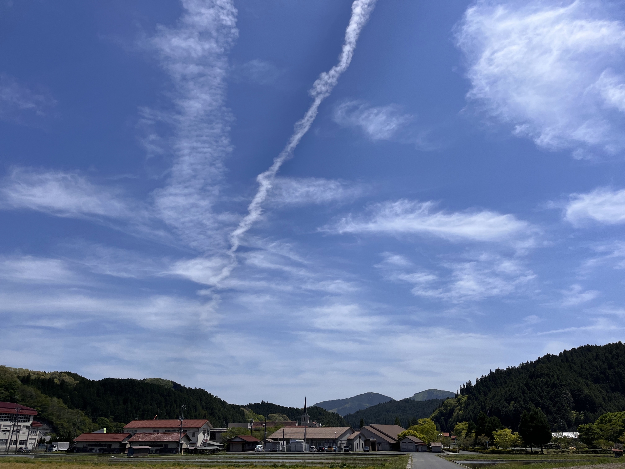 昼は・・・飛行機雲。