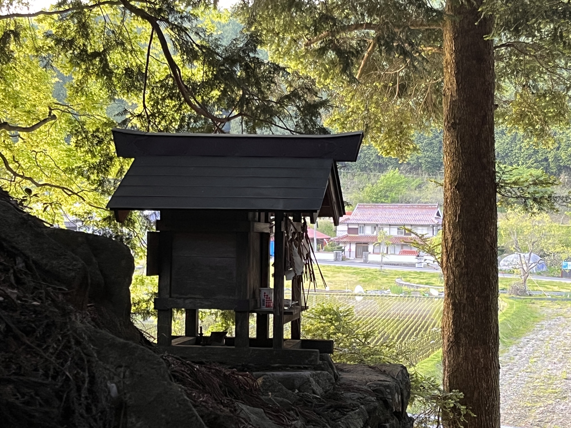 茅見の地区に入って・・小さな祠と・・辛夷の古木!!