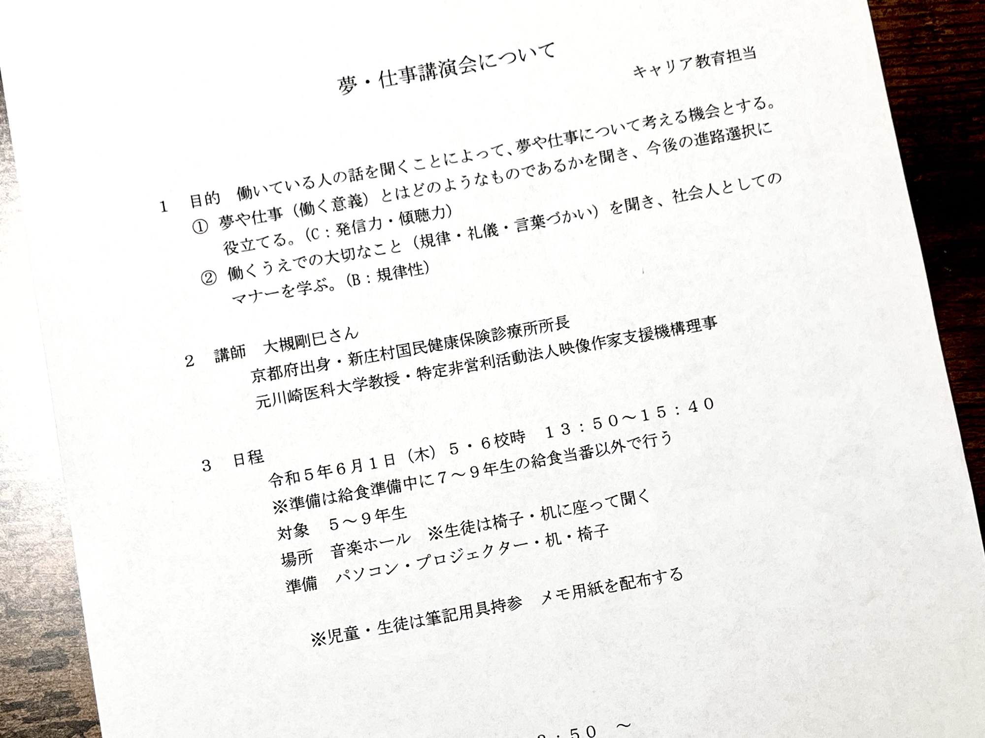 午後、新庄学園(小〜中、一貫校)の5〜9(小5〜中3)年生に「夢・仕事講演会」を、担当しました。
