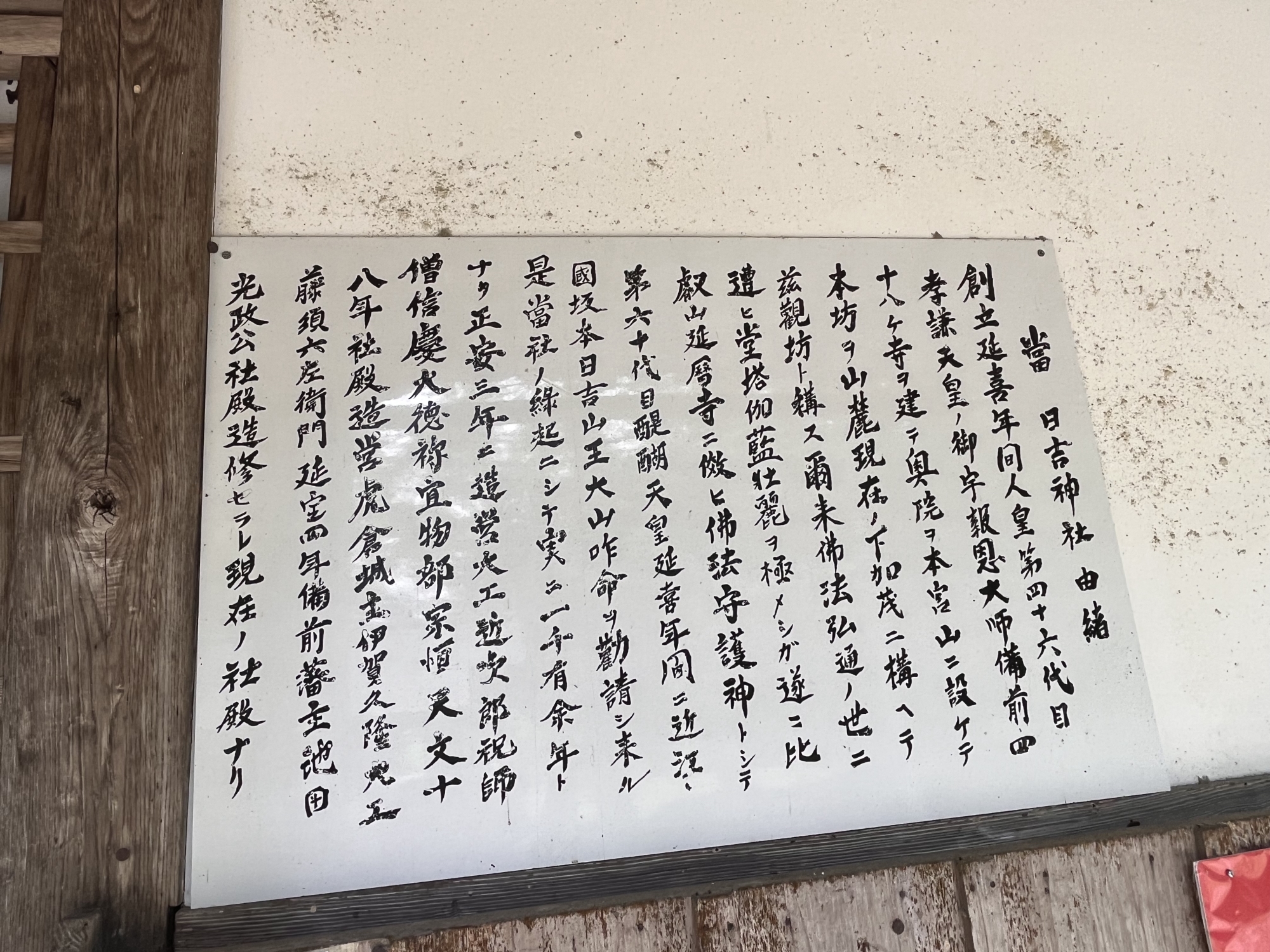 【由緒:第46代孝謙天皇御代、報恩大師、備前48ヶ寺を建立した。その一つを津高郡長庄に建て奥院を本宮山に設け本坊を山麓、現在の下加茂に構えて茲觀坊と証した。爾来佛法弘通の世に遭い堂塔伽藍壯麗を極めたが、遂に比叡山延暦寺に傚ひ佛法守護神として第60代醍醐天皇延喜年間(901~922)に近江國坂本日吉山王(大山咋命)を勸請した。是が当社の縁起で、実に千有余年となる。】
