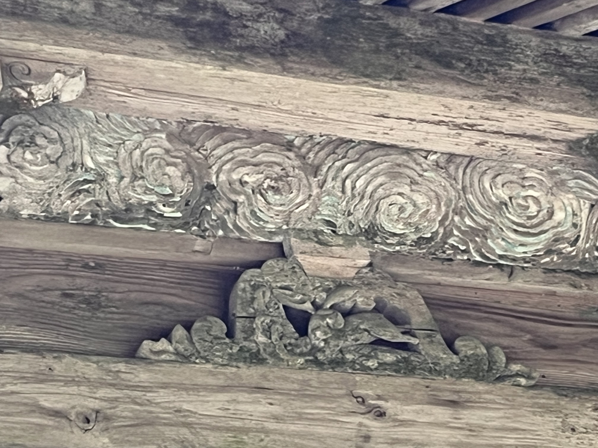 【正安3年(1301)に社殿を造営。大工近次郎、祝師僧信慶大徳、禰宜物部宗恒、天文18年(1549)社殿造営虎倉城主伊賀久隆、大工藤須六左衛門。】