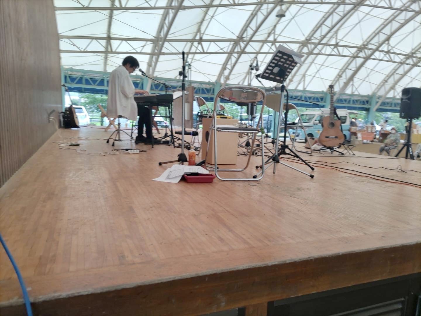 ボクの後、休憩で、米倉さんのギターソロ・・・その途中まで、すごい豪雨で、モニターの音も聞こえにくいほど。
