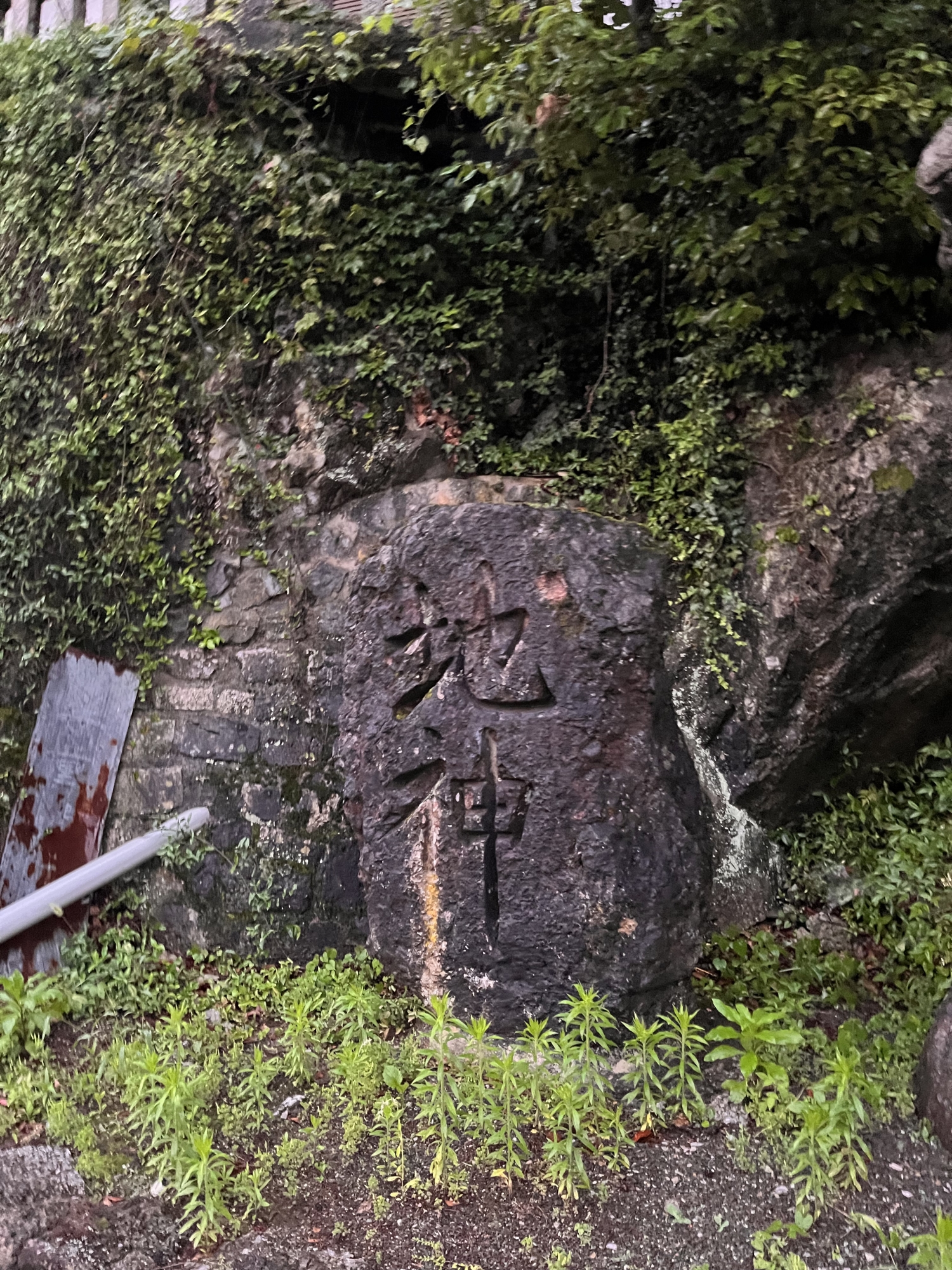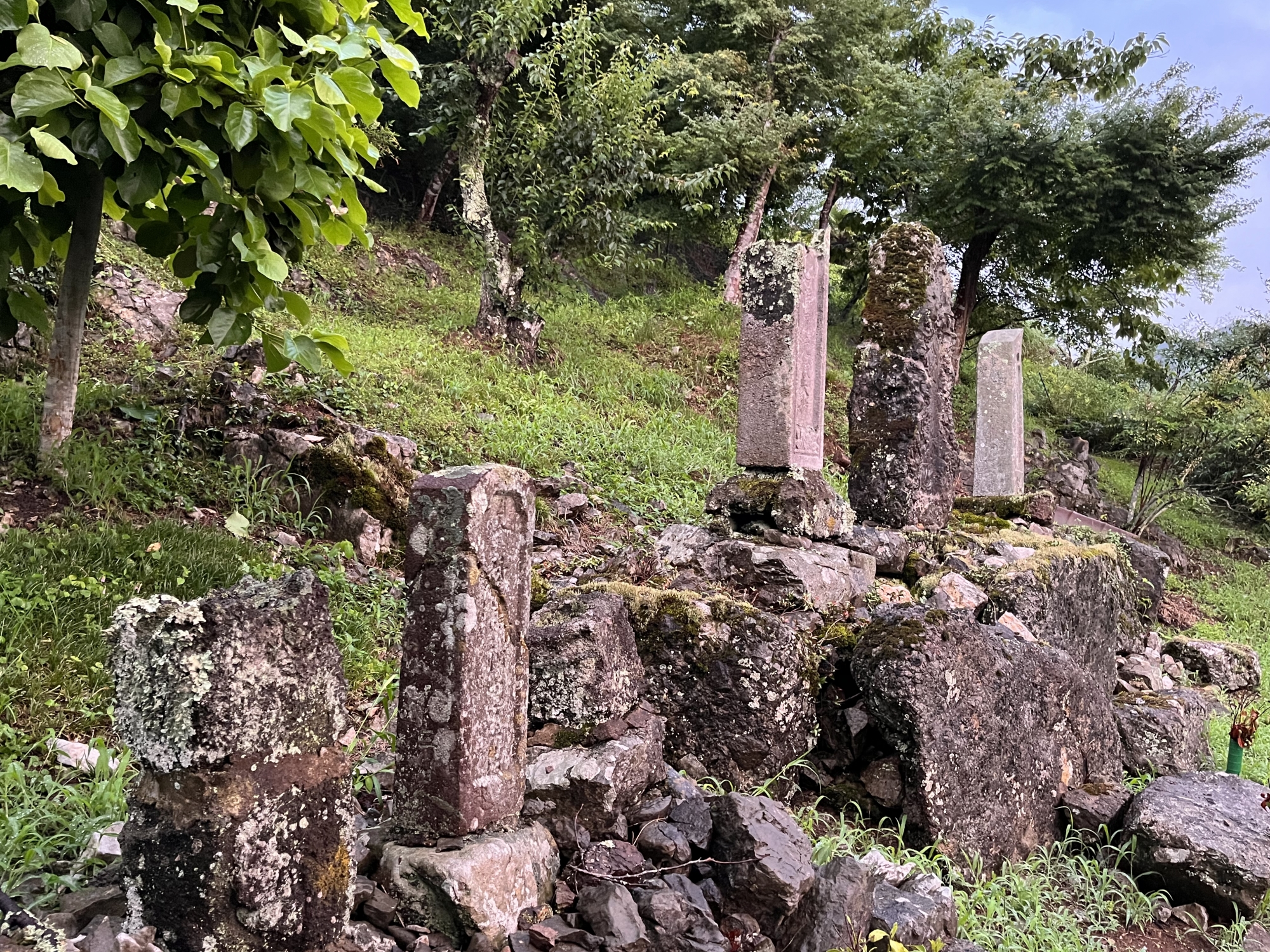 裏の山際に・・・以前の寺院関係のお墓でしょうか、碑?