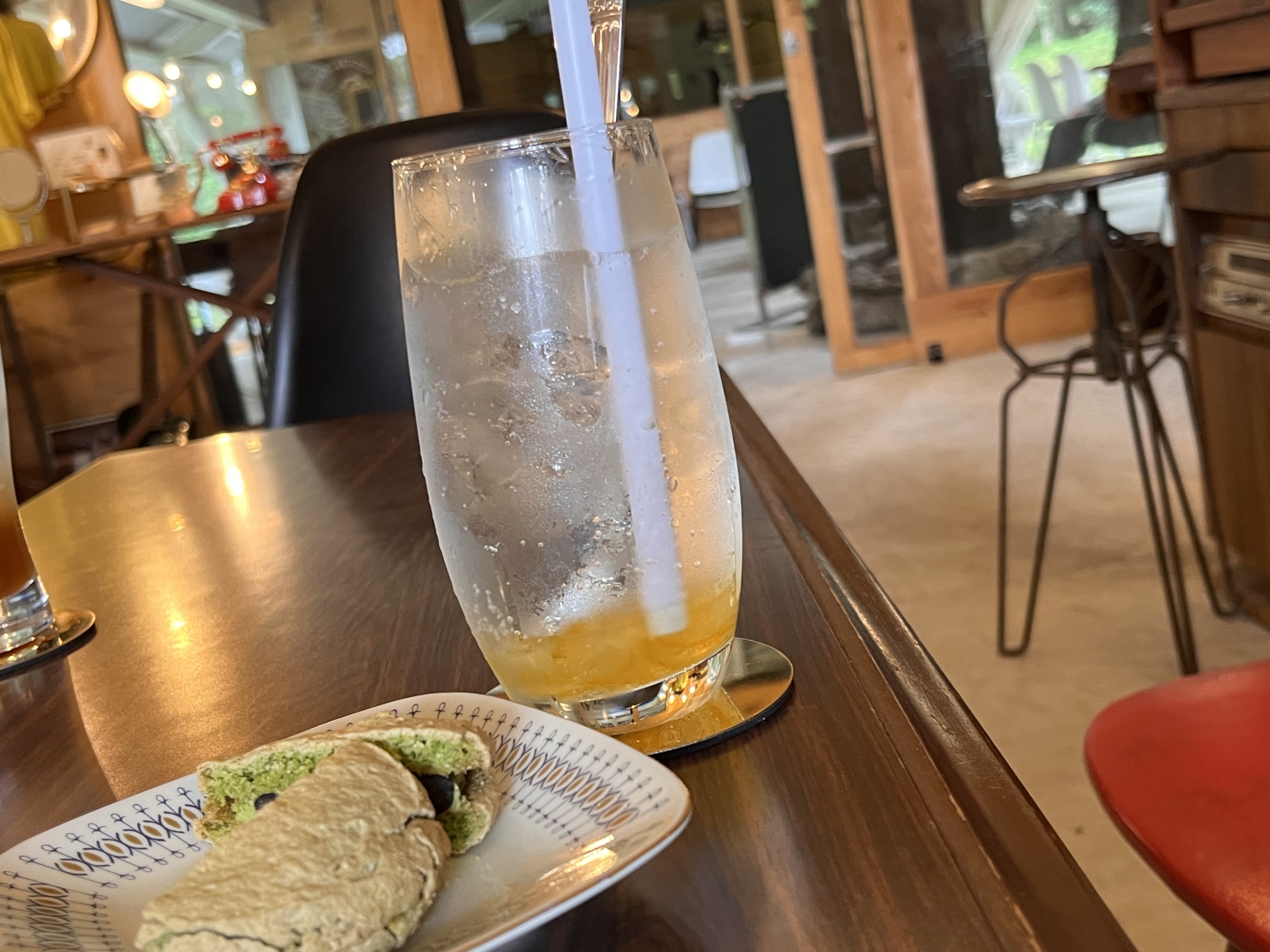 少し休憩で・・・せっかくなので、ジンジャーエールとホットサンド。あら、マスターのお母さまから、北海道のご友人からの頂き物のお裾分けを・・・。