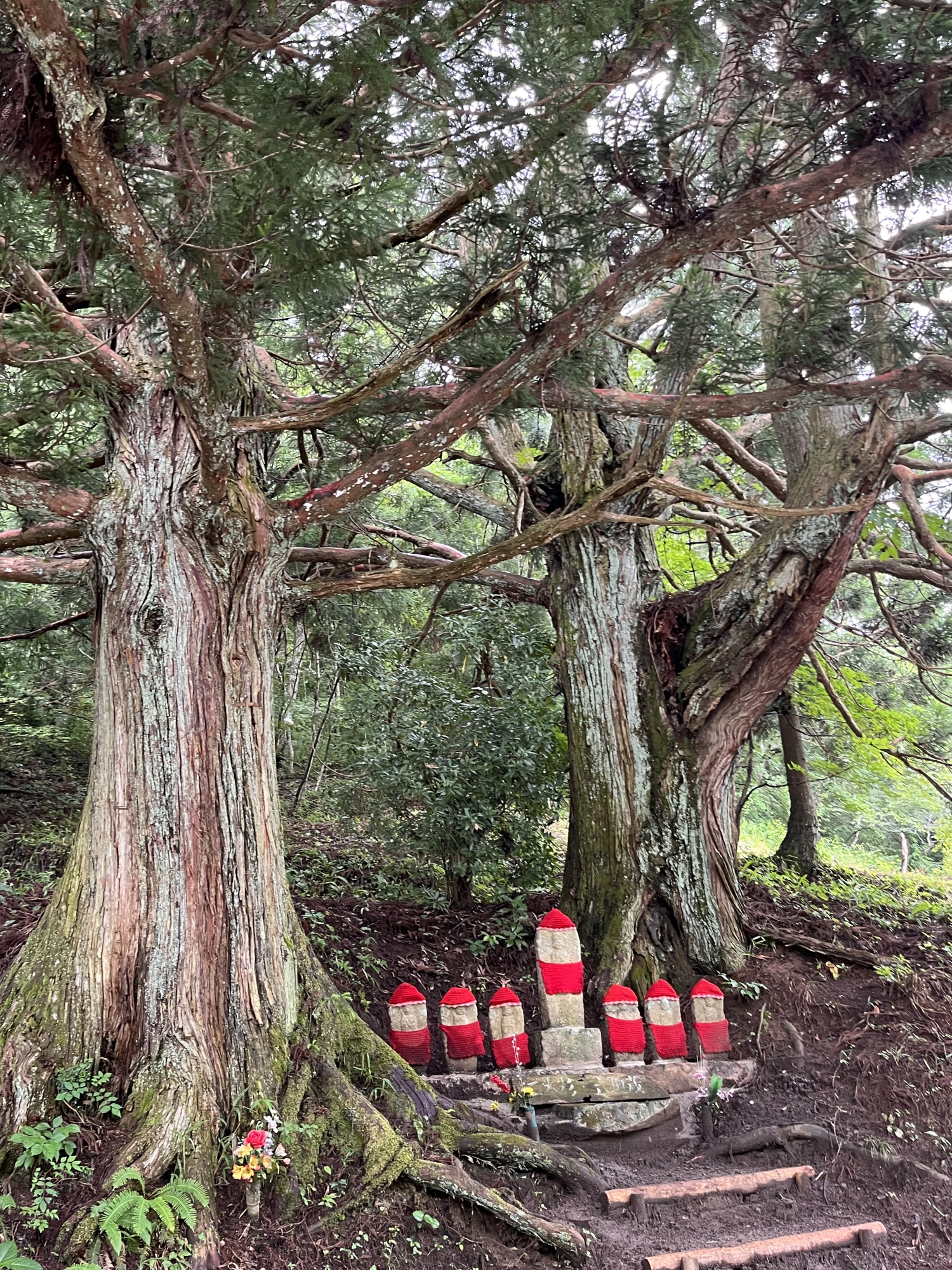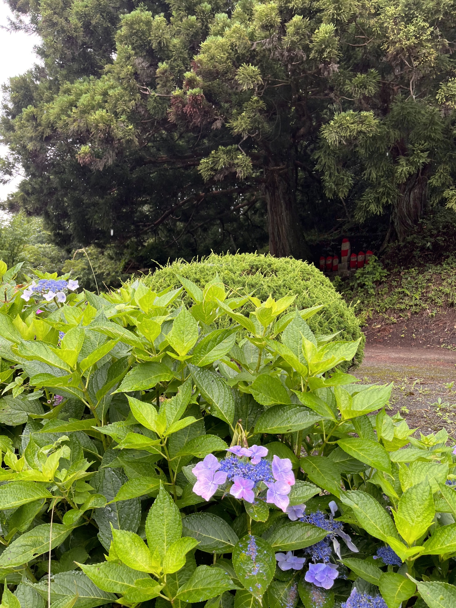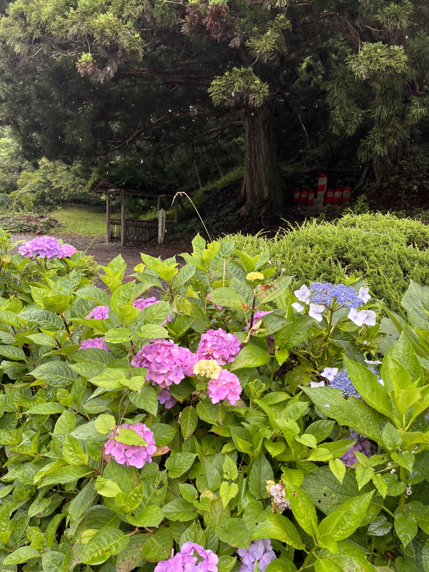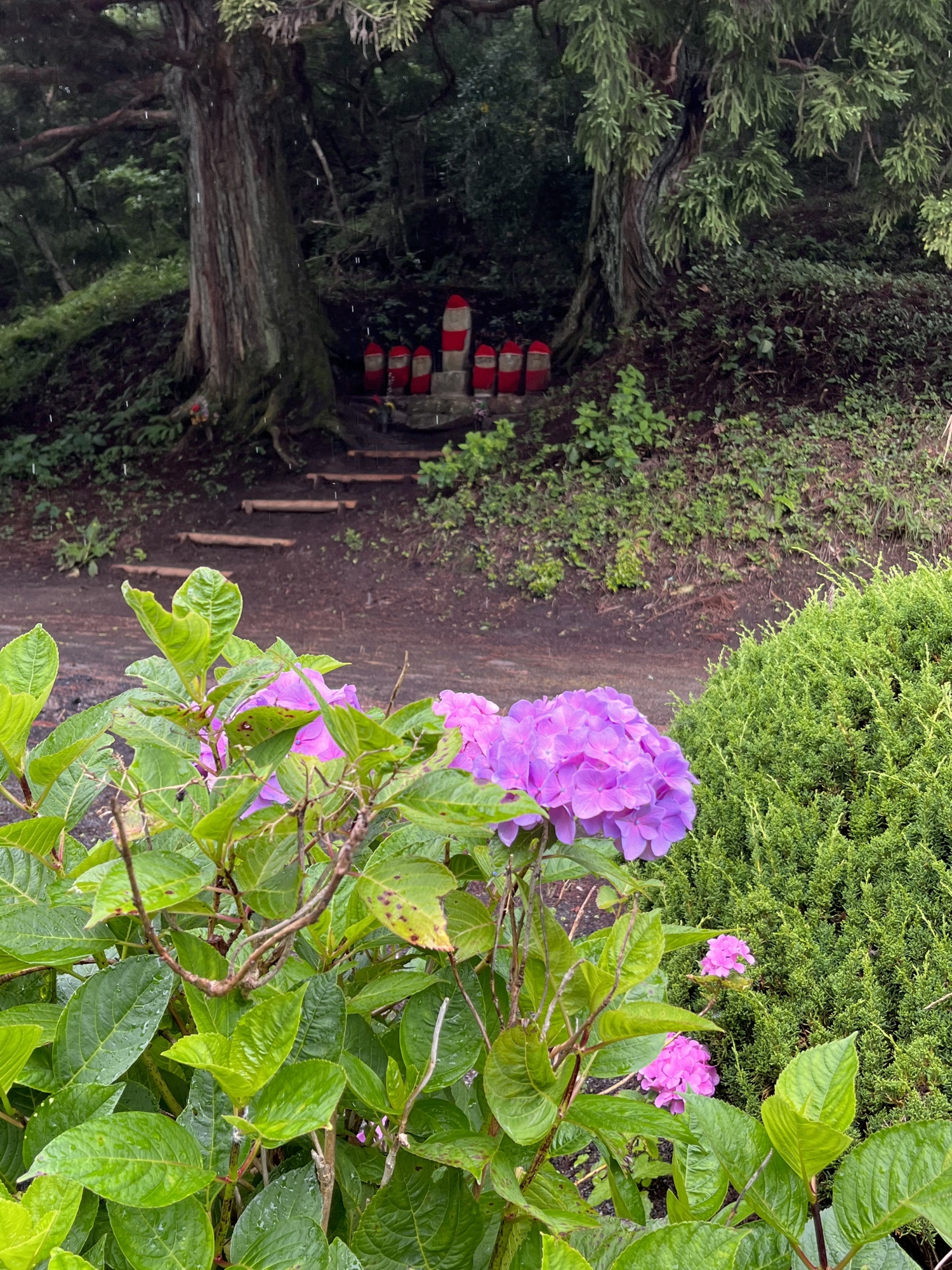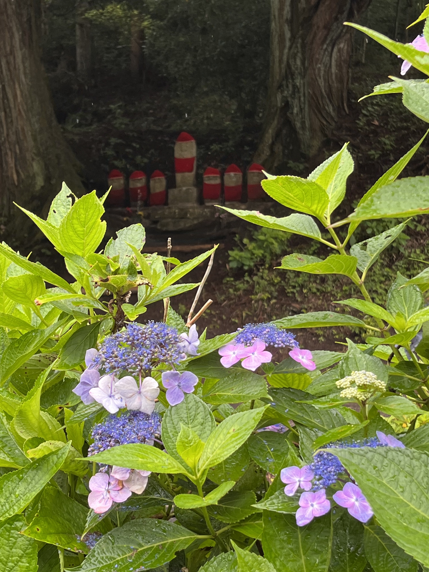 午後から・・・まずは湯原の福祉センターへ・・行く途中の篠ヶ乢の二本杉の六地蔵+1と紫陽花。