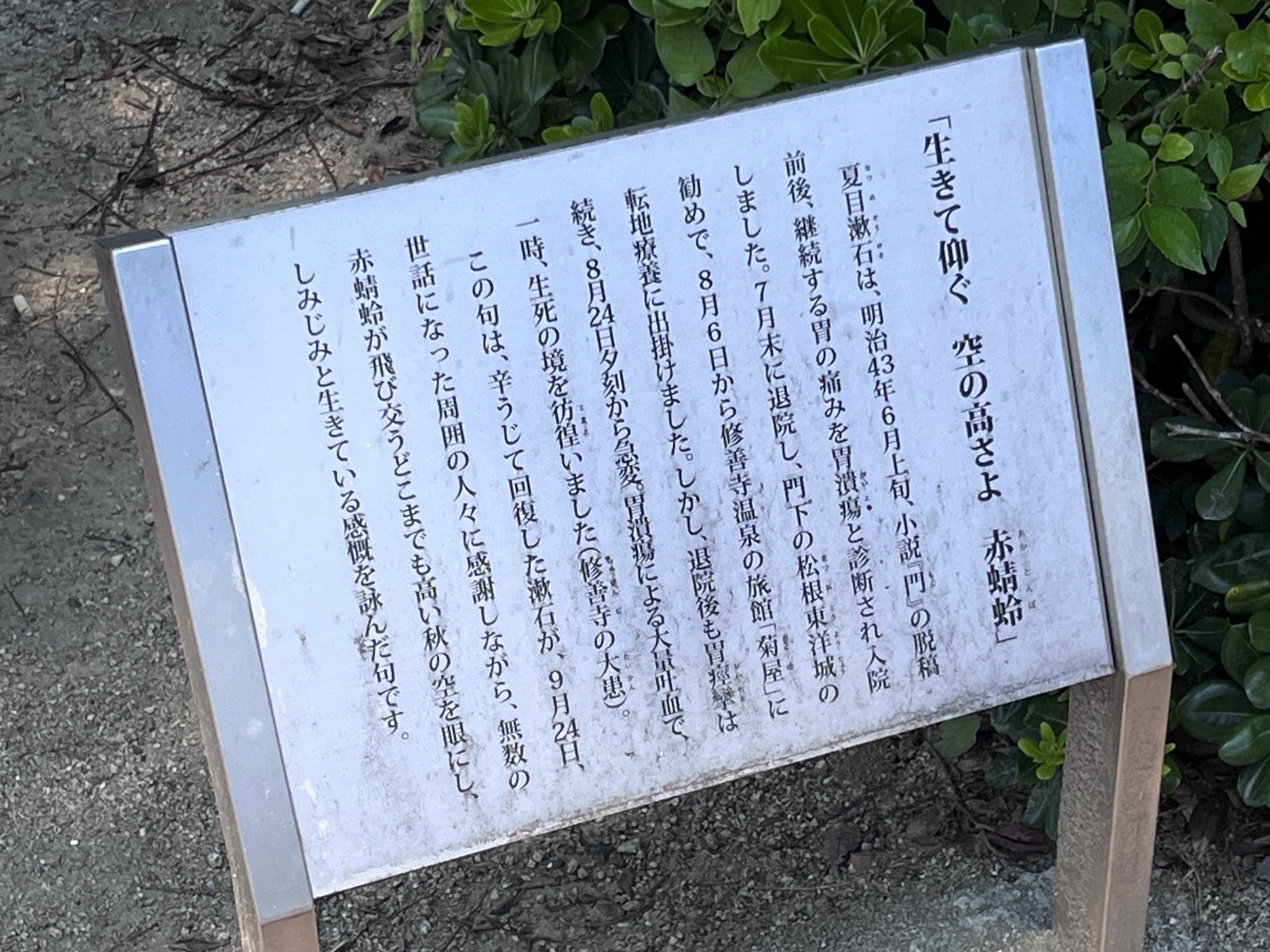 漱石の句碑。