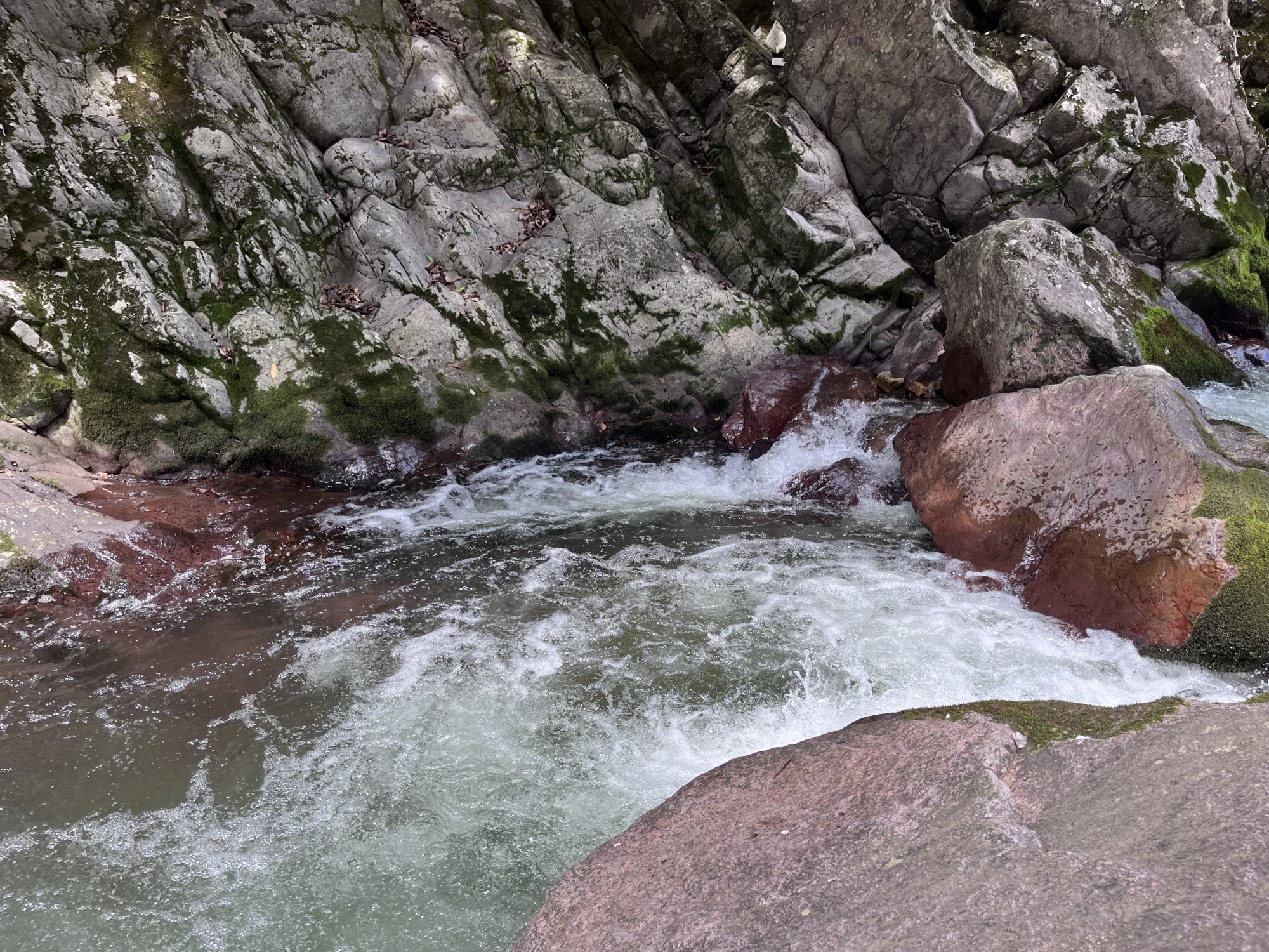 結構、暑い中で、まぁ、流れの音は、涼を誘います。