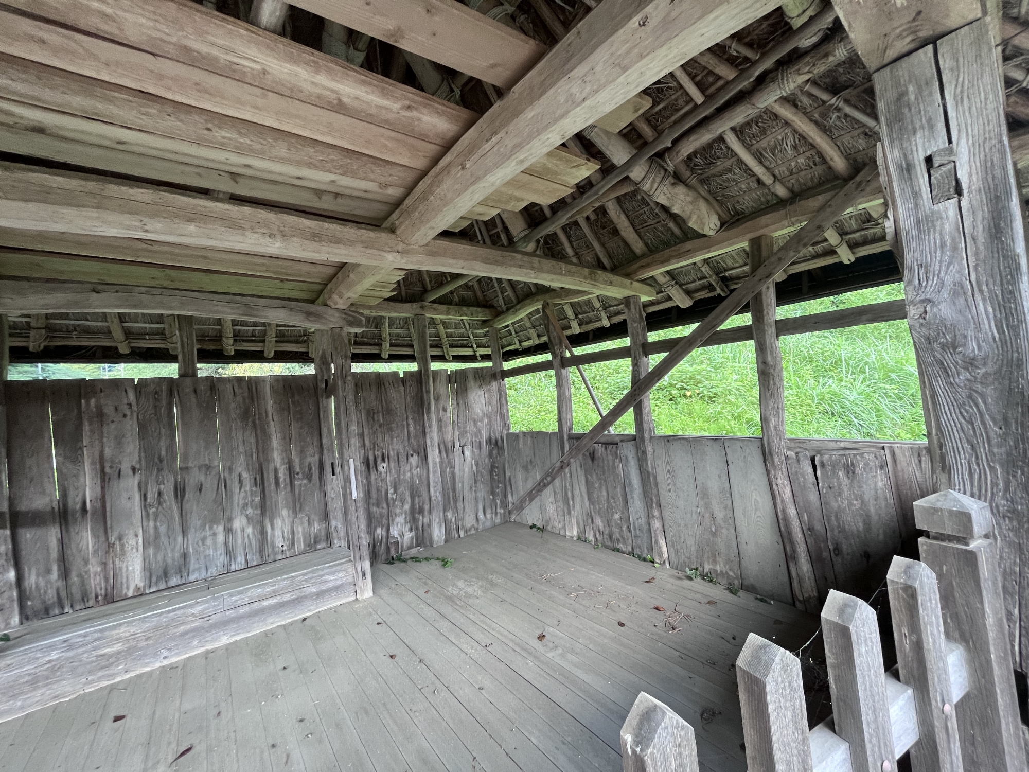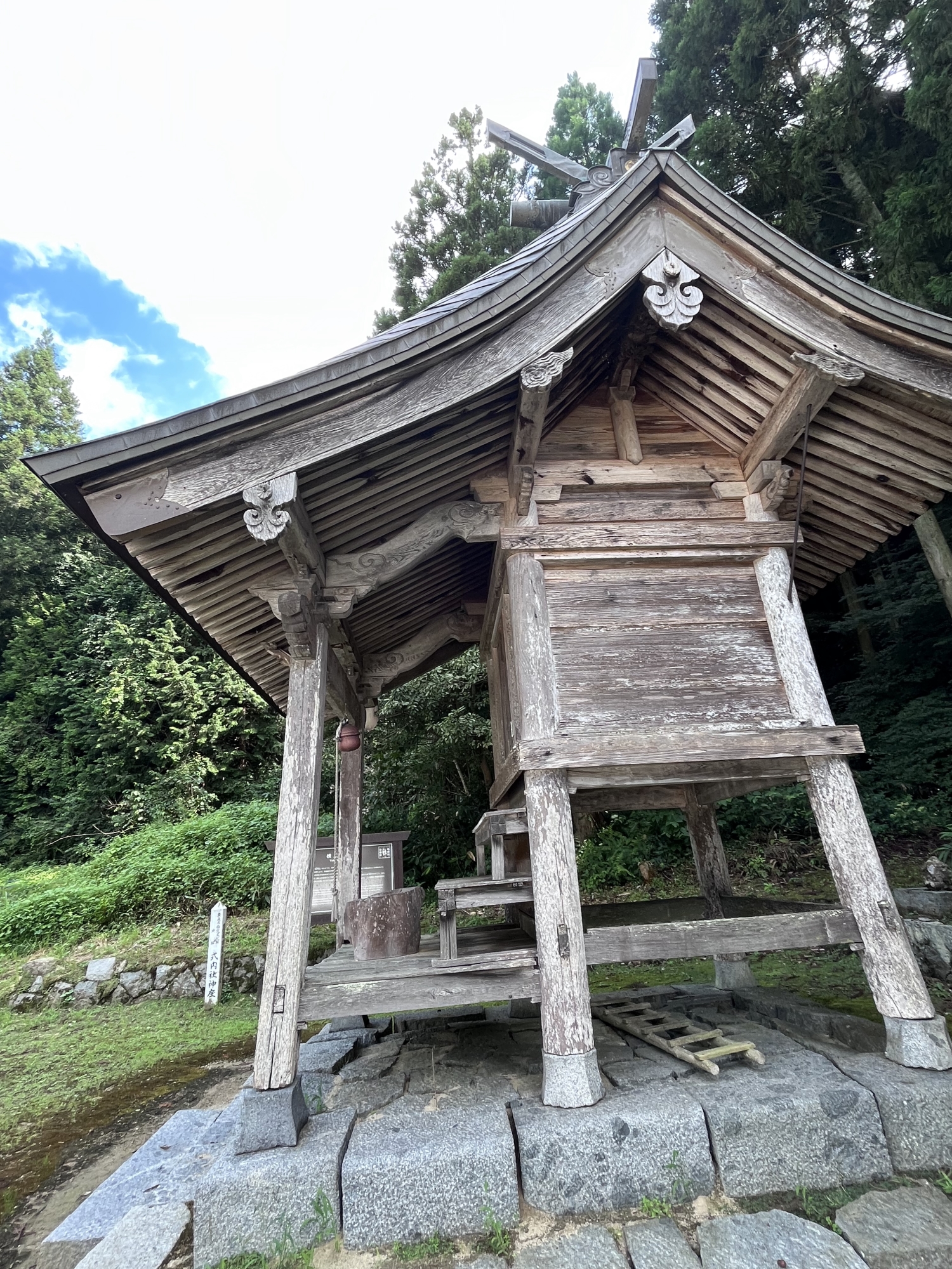 『また、日本では古くから、山や巨岩・滝などを霊場として信仰していますが、横見神社は、社殿の後ろの延長線上にある櫃ヶ山、前の鳥居方面の霰ヶ山、横側の吾市山をひとつの場所で拝むことができる特別な位置にあります。集落から離れているため、他の神社と比べると変わった場所にあると思われるかもしれませんが、こうした理由で現在の場所にあり続けています。』