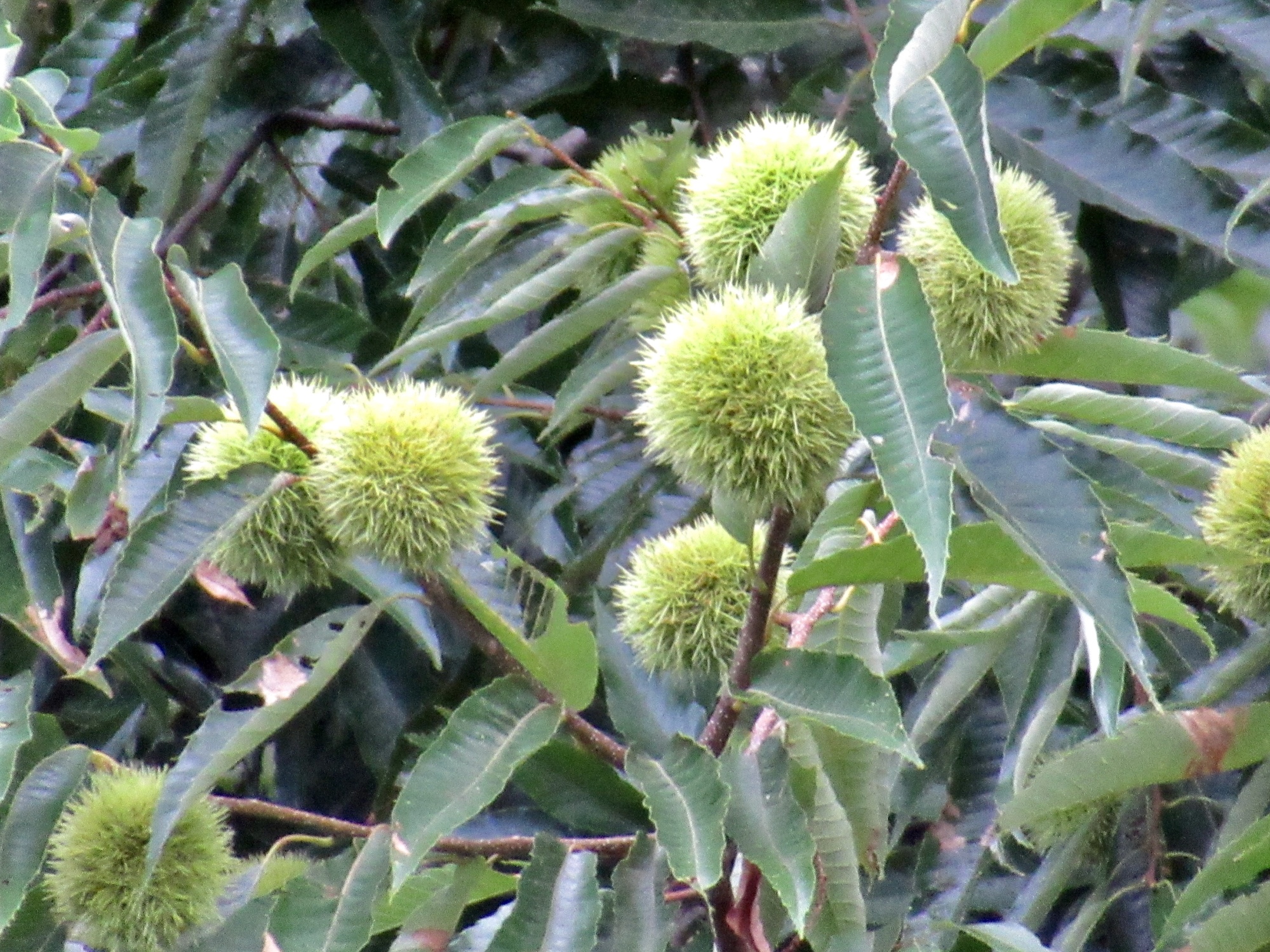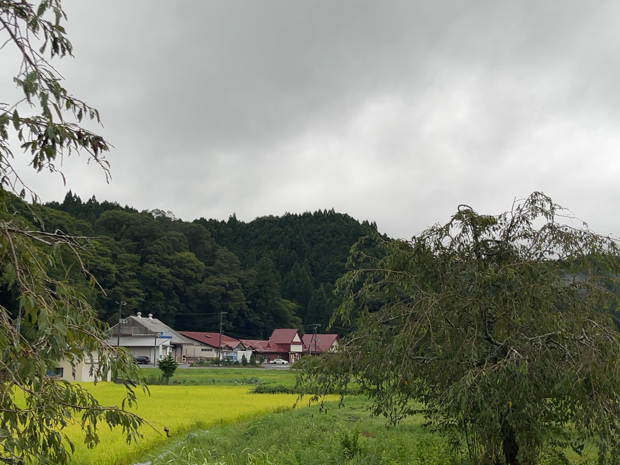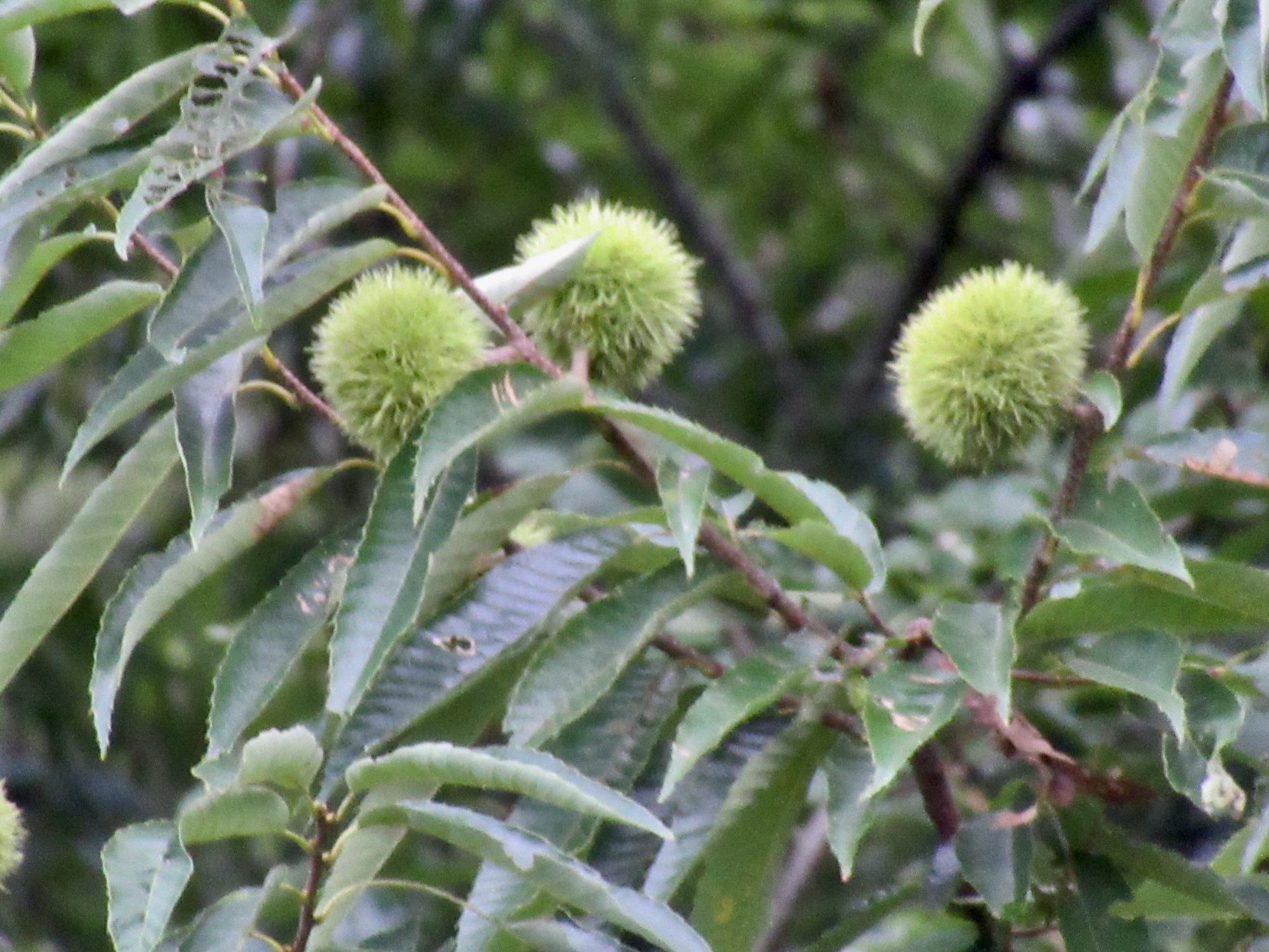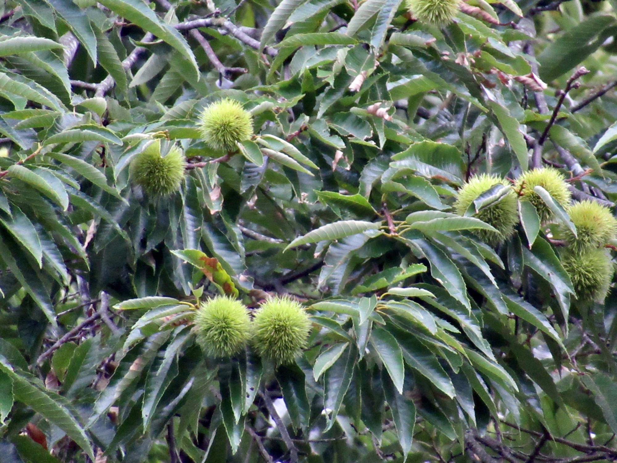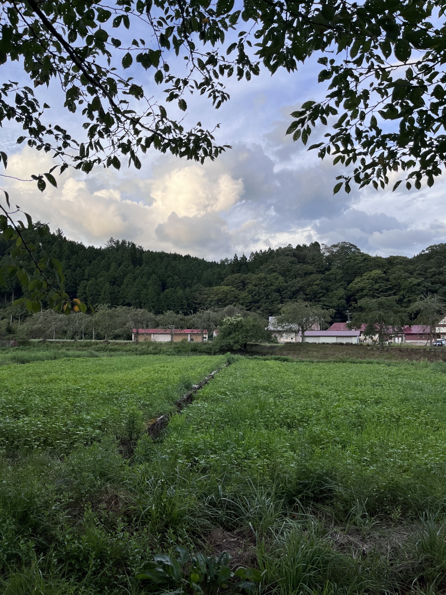 神社の前・・畑の向こうの川沿いに・・大きな栗の木。