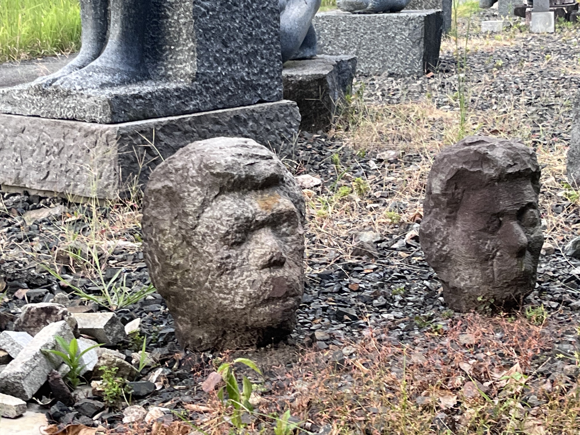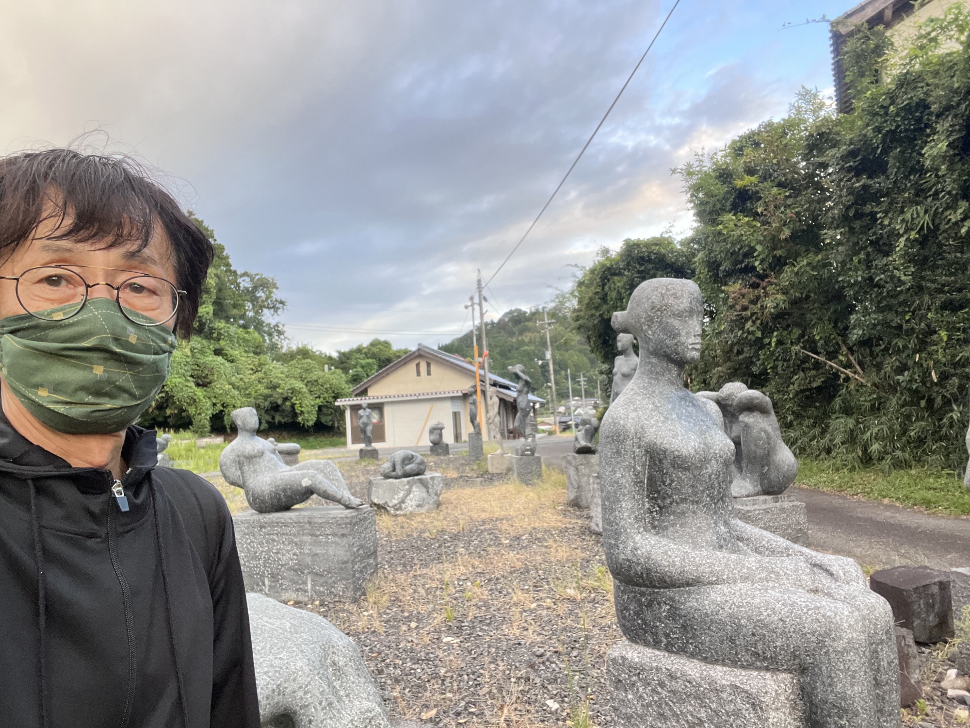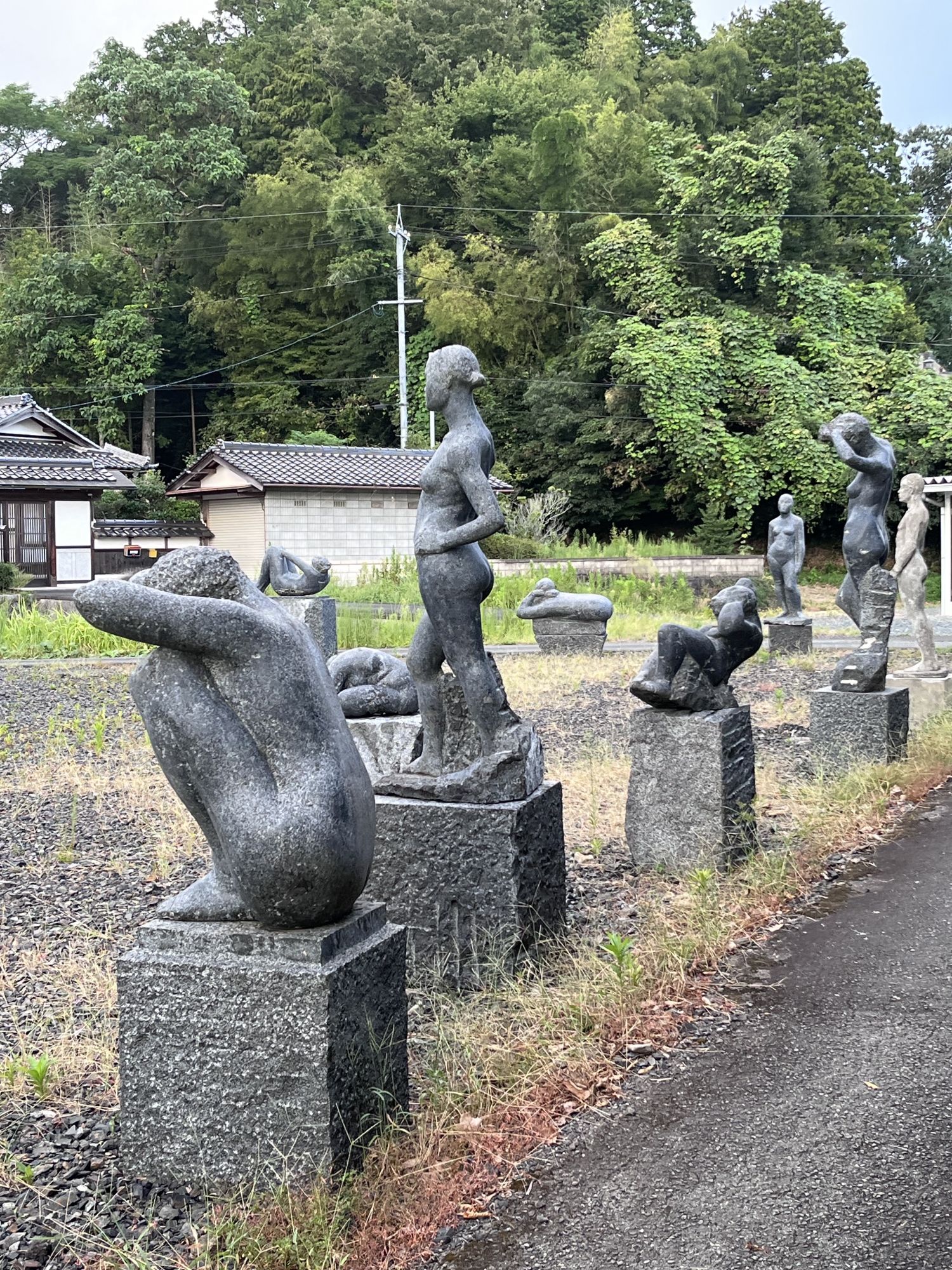 そして、田圃と道路と家屋に囲まれた三角形に・・ちょっとシュールな彫刻群! 何、ここ???