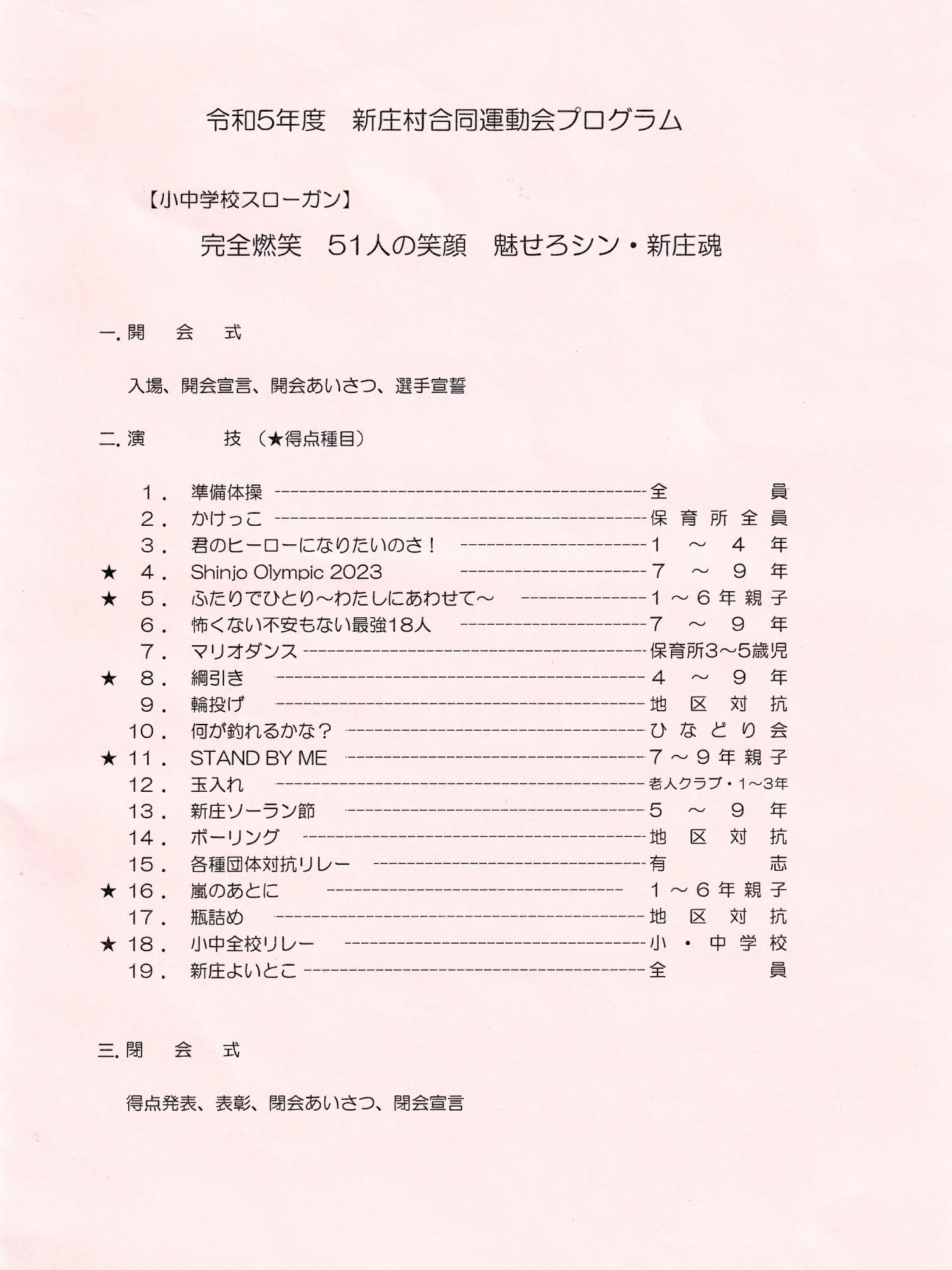 幼稚園から・・地区対向では・・・村の高齢者まで・・・素晴らしいことです。
