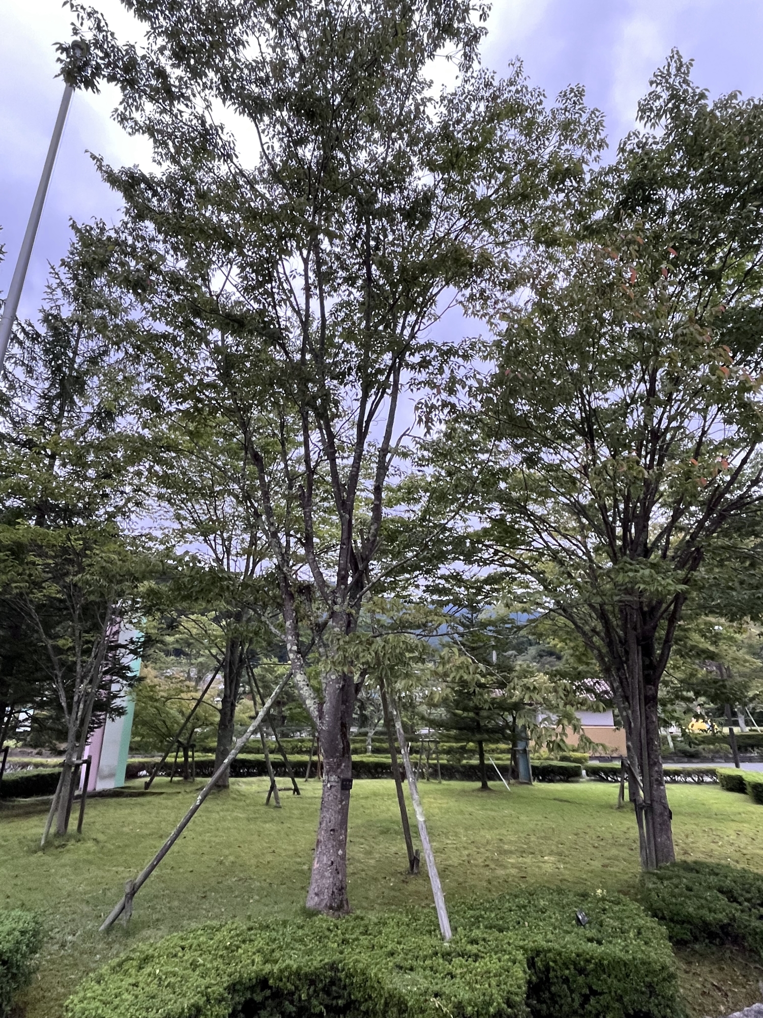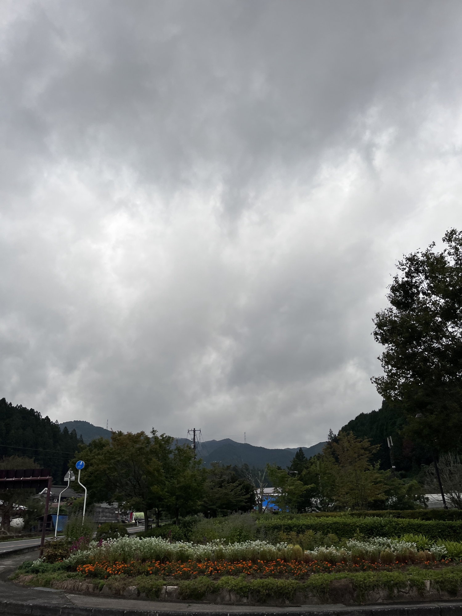 雨が降りそうで・・・で、この役場の看板・・板に白く塗って、抜けた木目が文字なんですね。