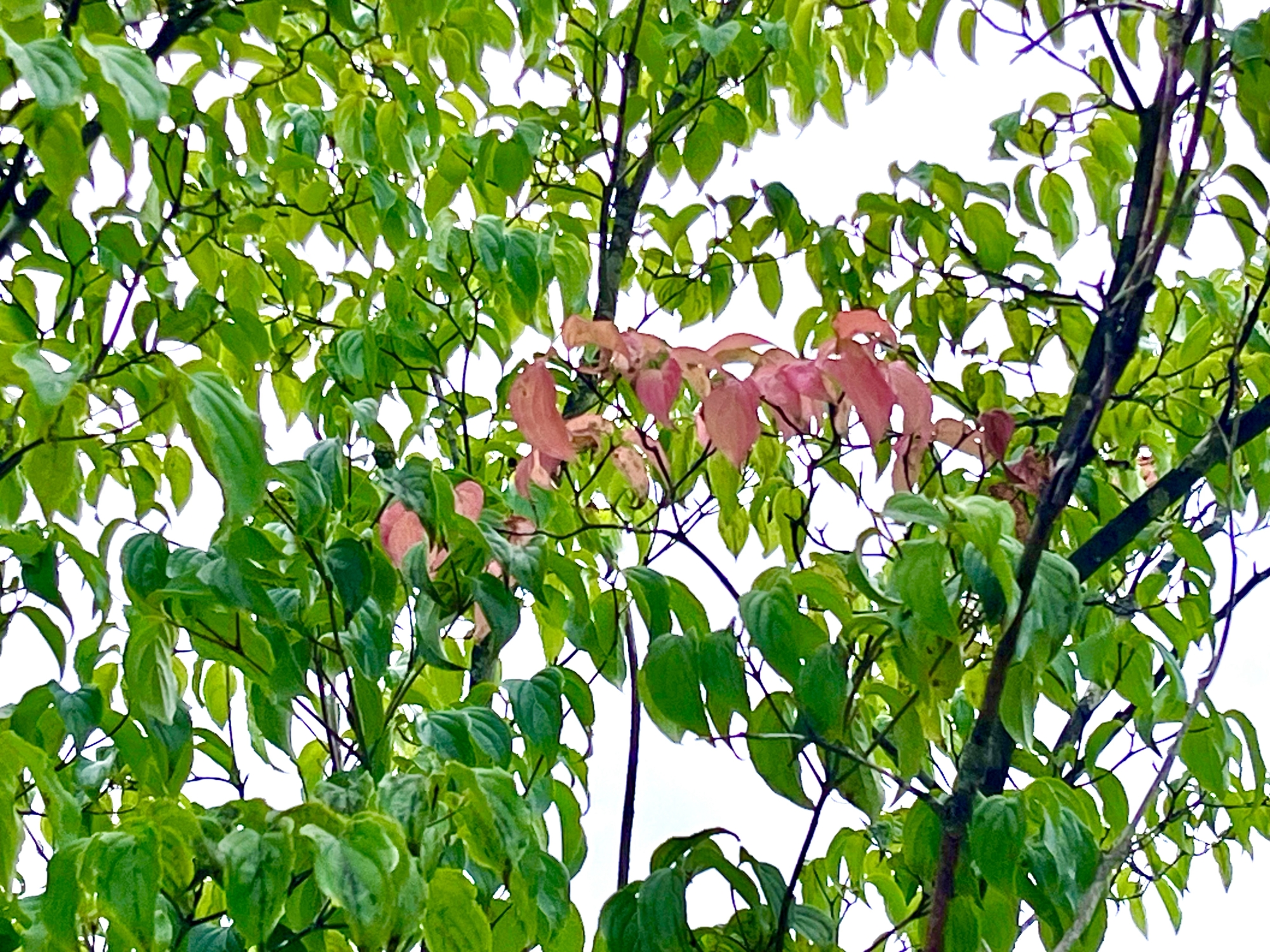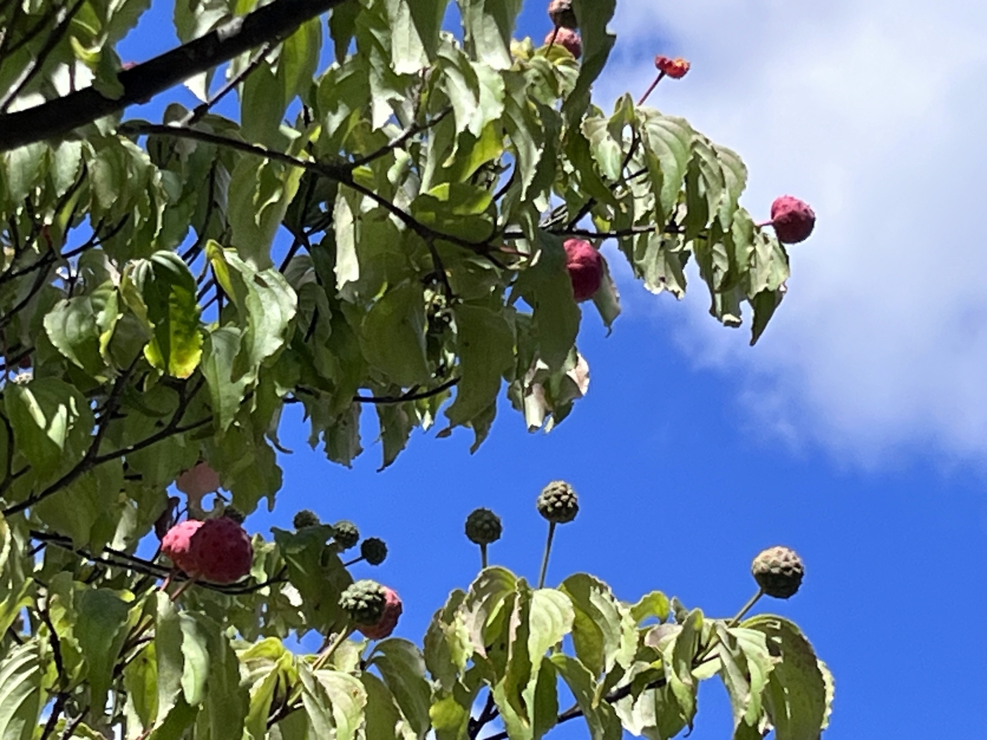 お昼・・・ヤマボウシが紅くなってきています。