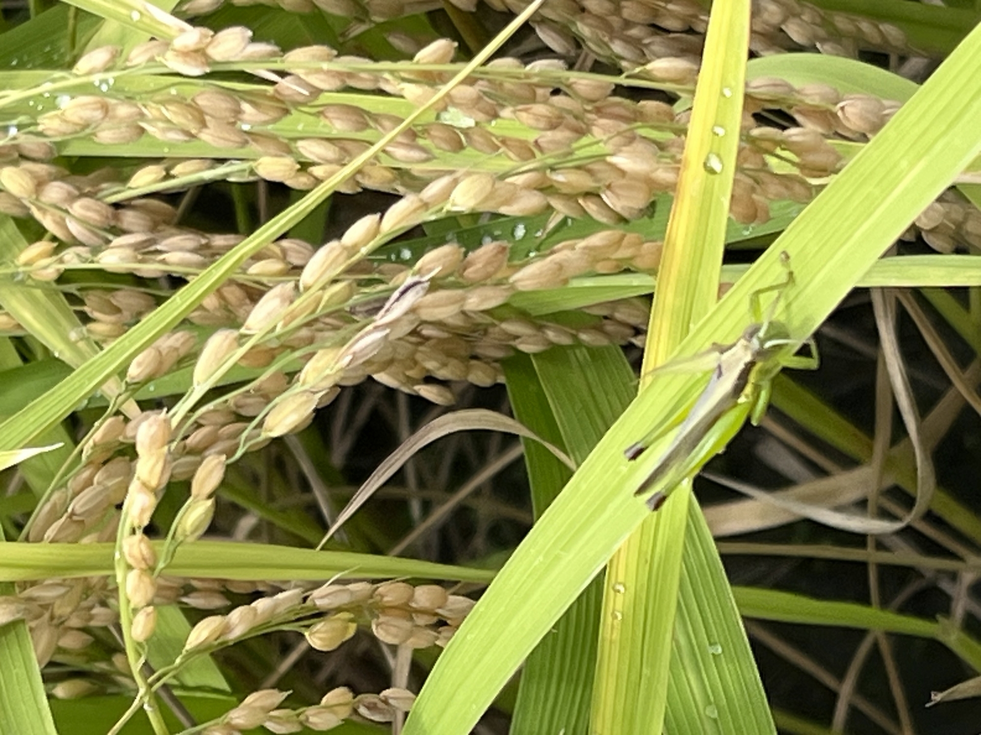 ほら・・稲穂のこっちにバッタが。