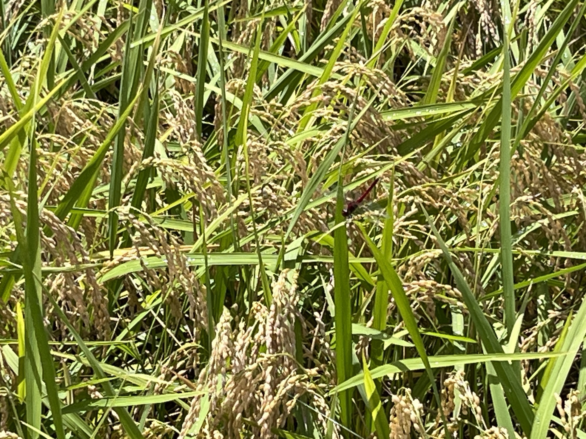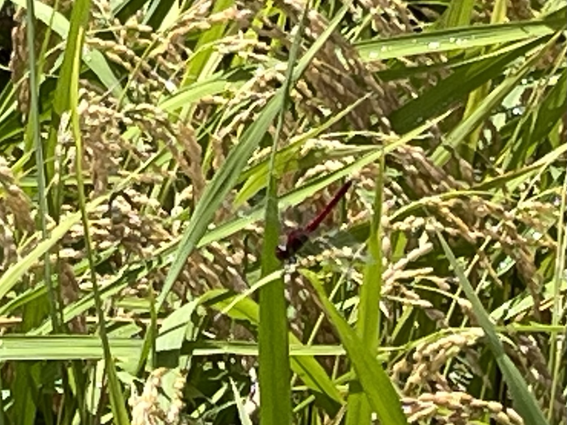 あら、稲穂の近くに赤蜻蛉。