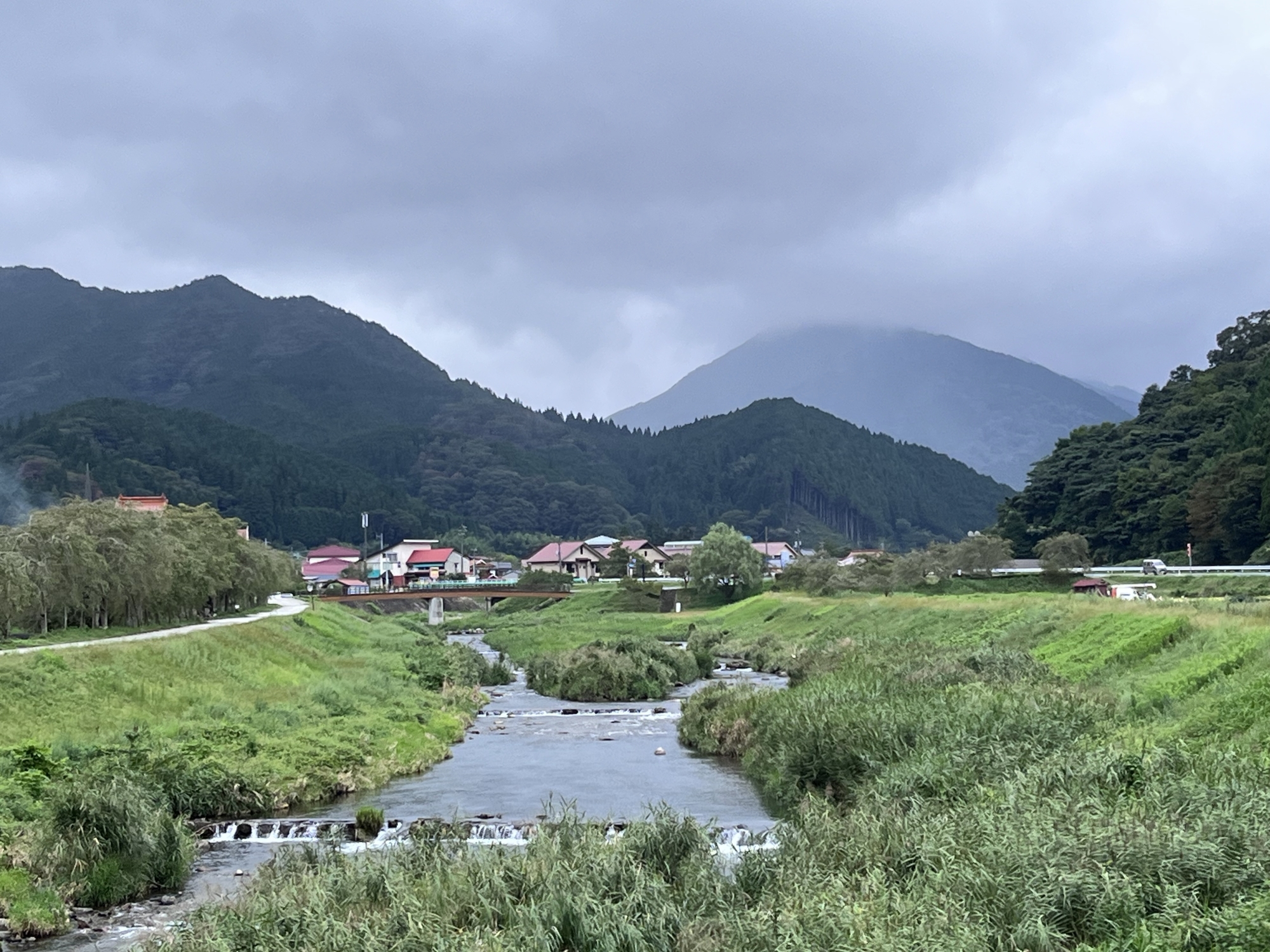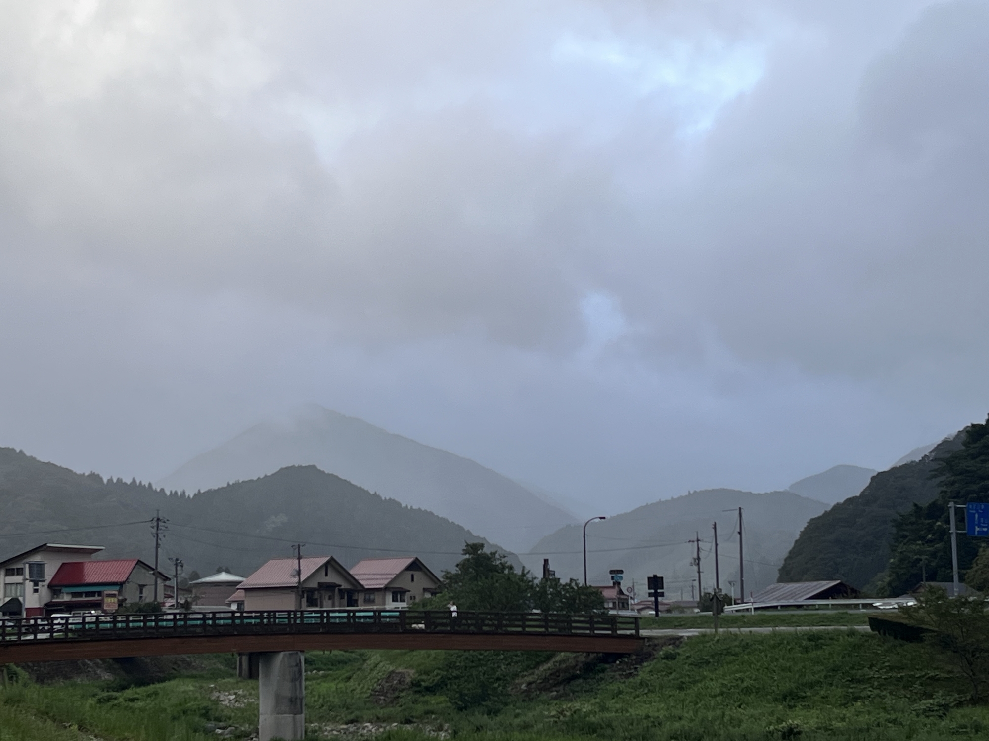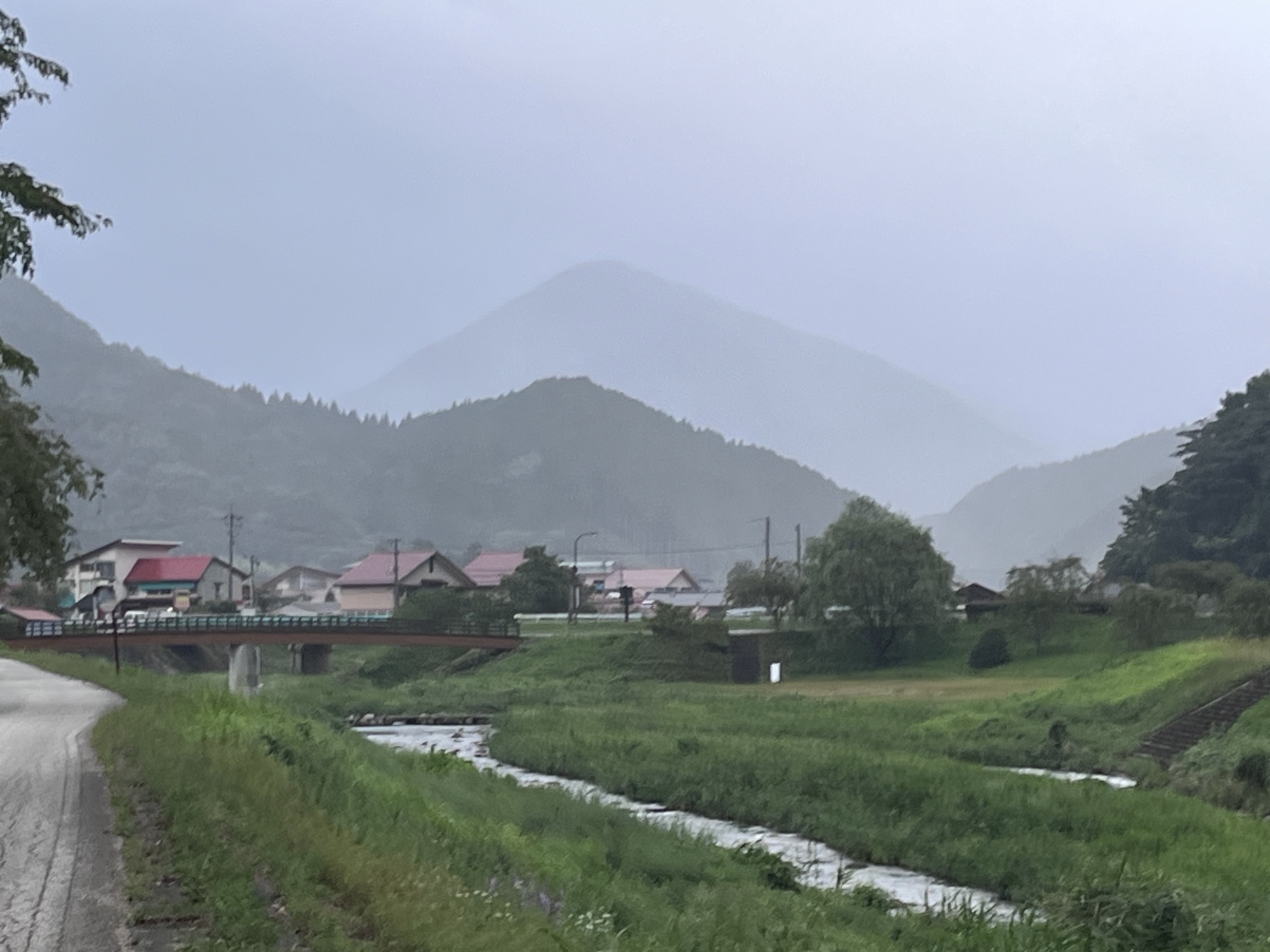 少し小雨が降ってきましたが・・向こうの山は霞んでいます。