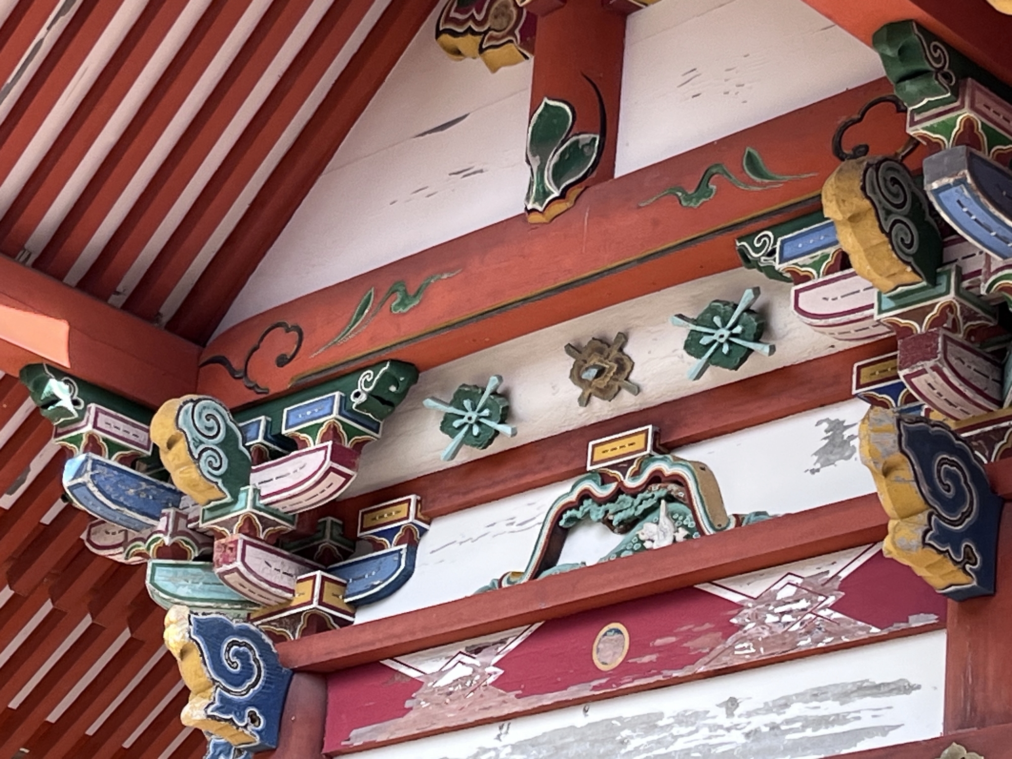 【現在見られるものは桃山時代のもので、桃山様式の極彩色彫刻が施されている。昭和2年(1927年)4月25日指定。】