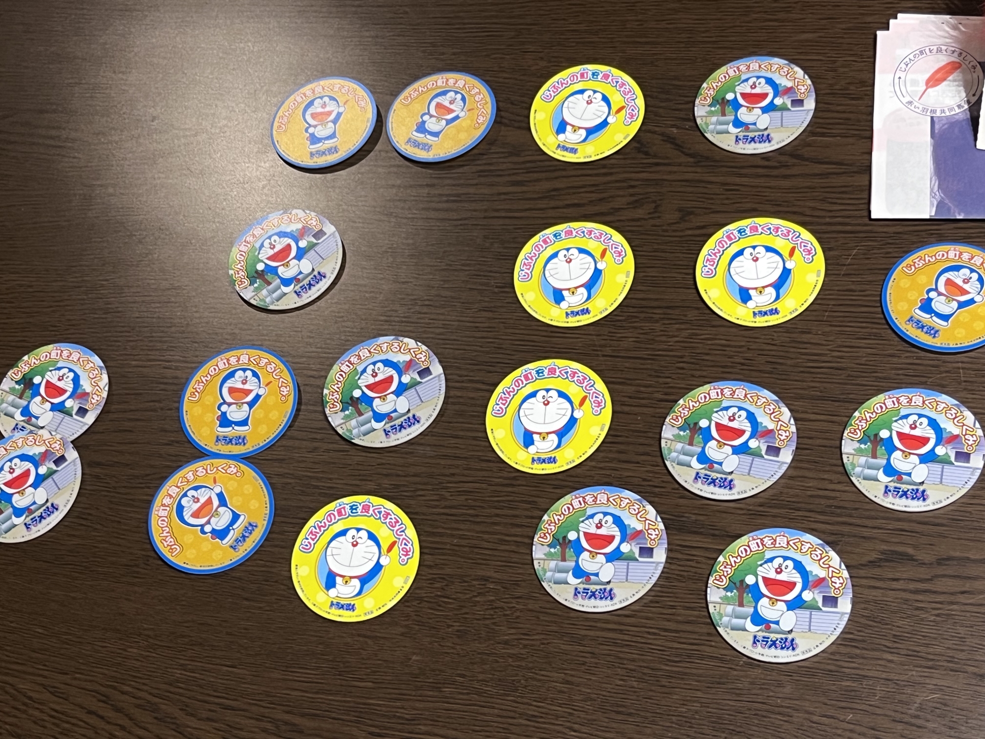 赤い羽共同募金もされてまして・・・こっちにはドラえもんバッチ!