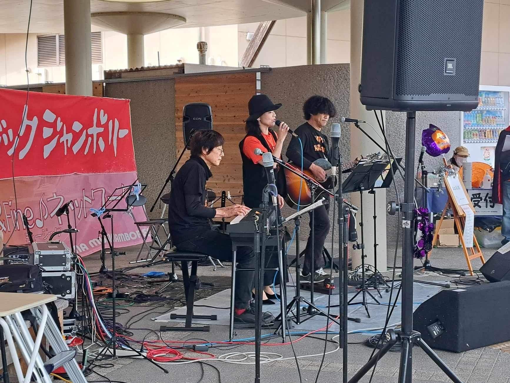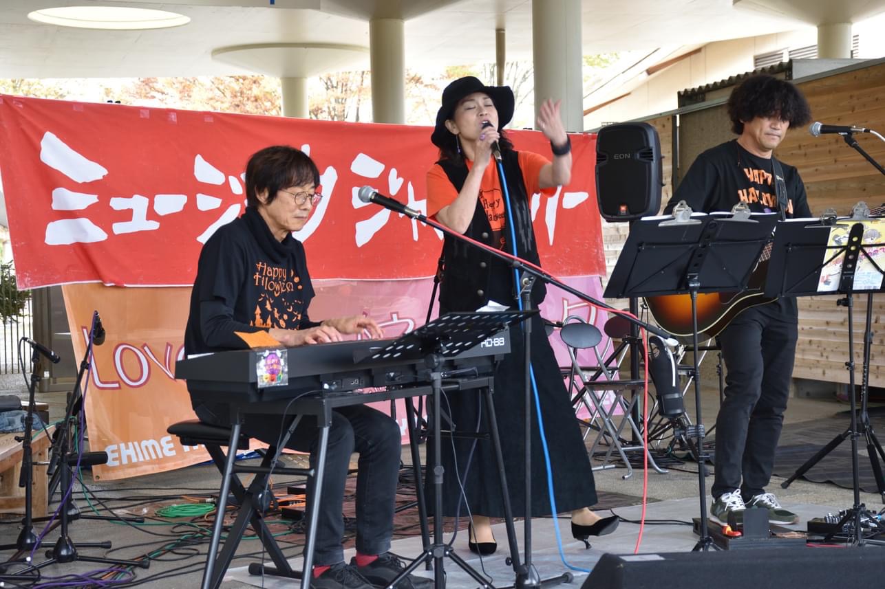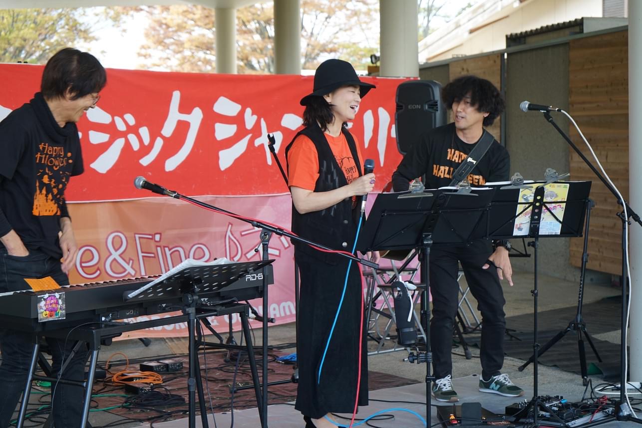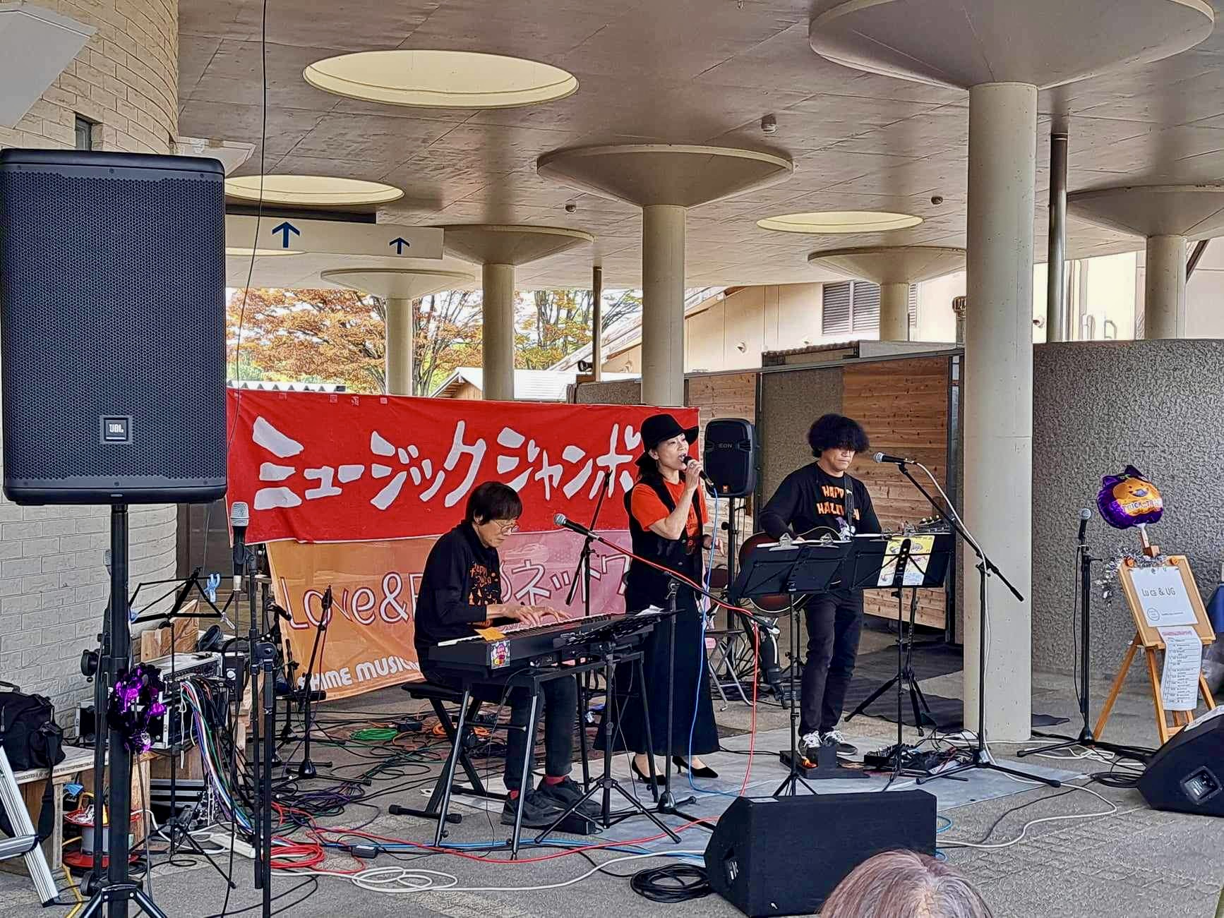 二十世紀梨のソフトクリーム、美味しい! 販売所の女性は、僕らの次の出番のユニットの女性VOCALさんの妹さんとのこと。