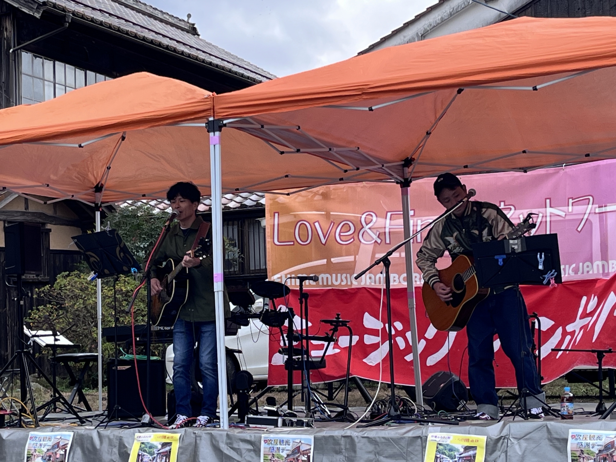 いつもの Okayama Music Jamboreeさんと、実は吹屋観光感謝デーで・・・蔵の中では食べ物やフルーツ売っていました。