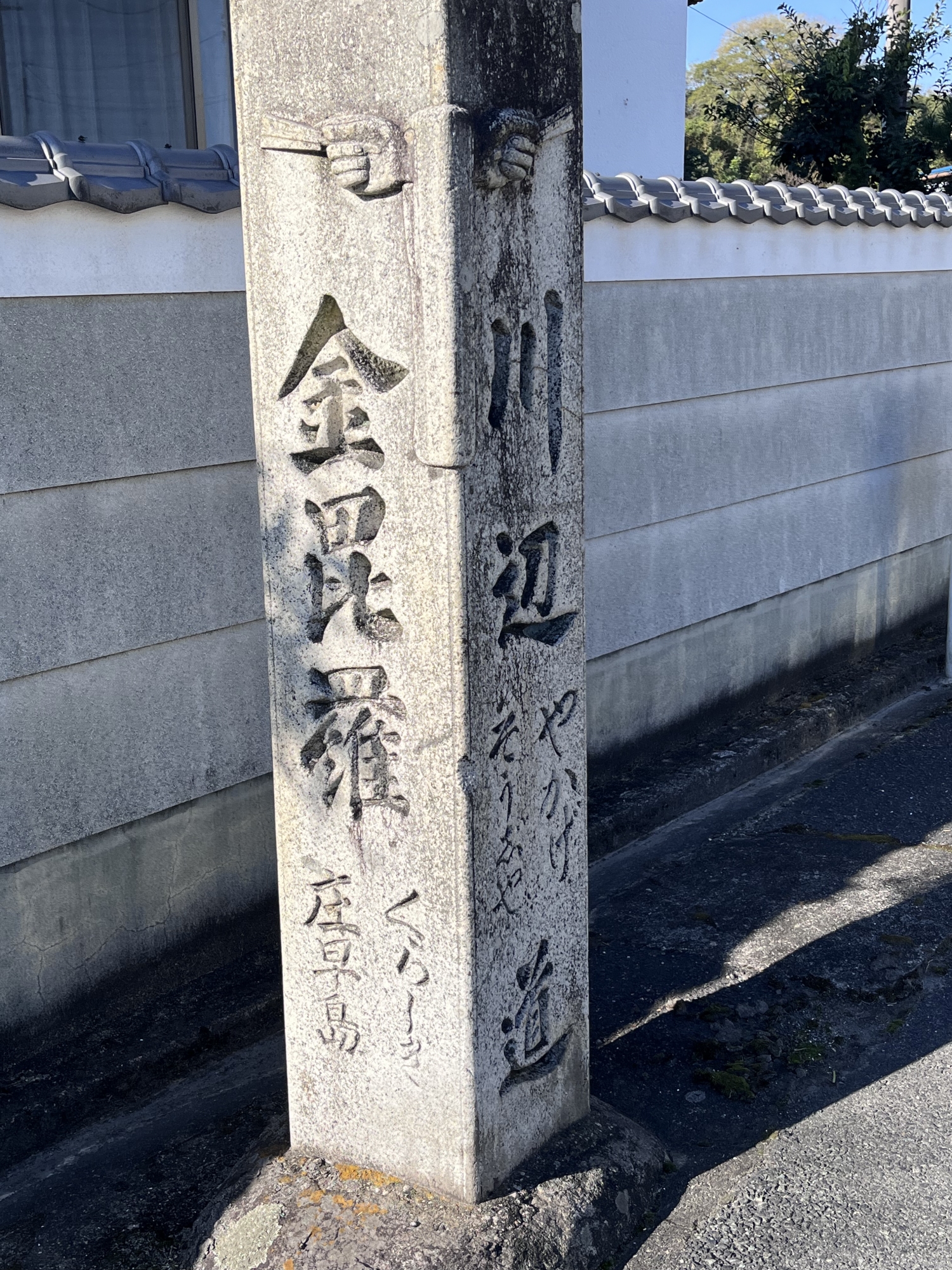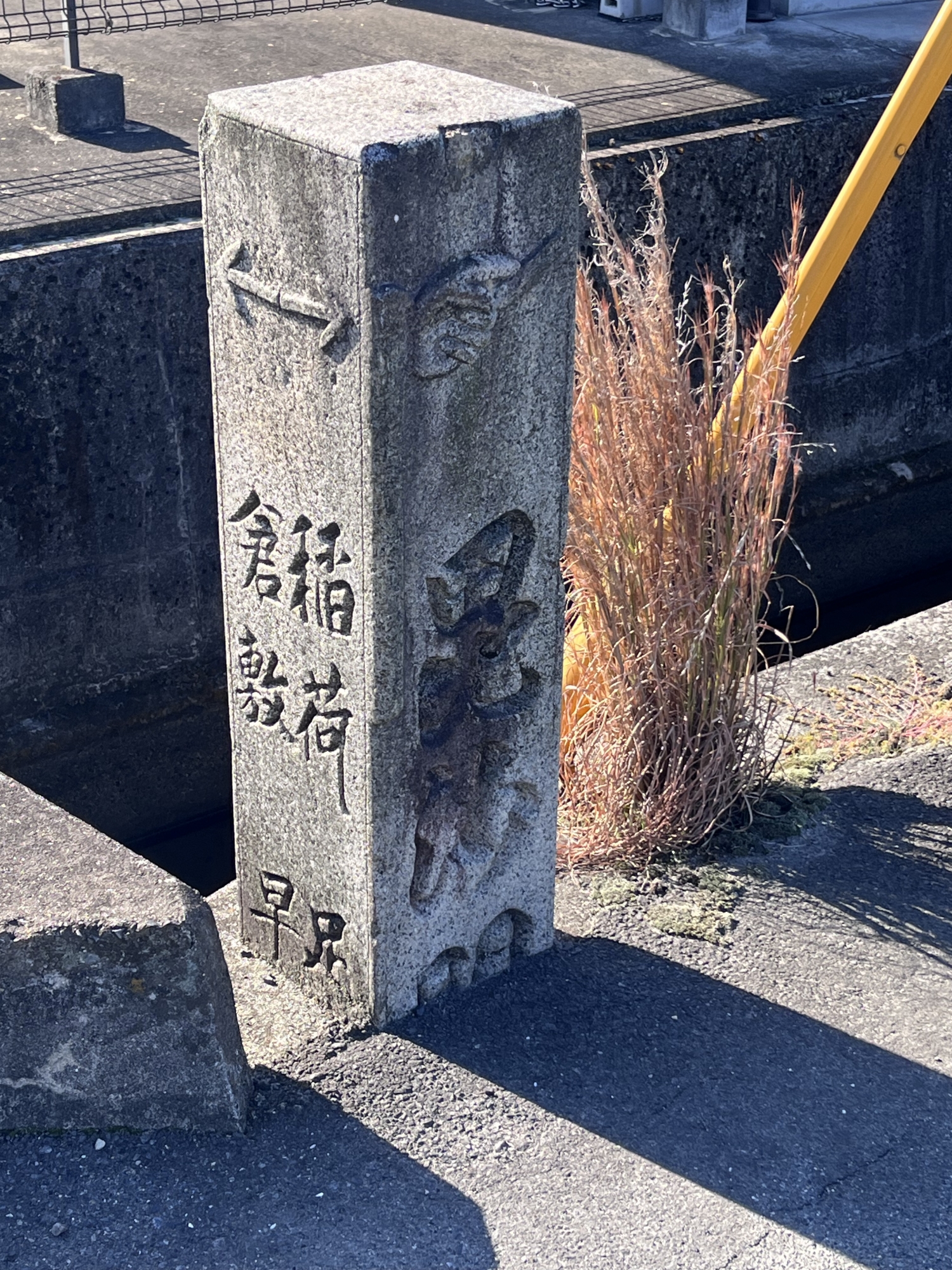 そして、今回初めて気付きましたけど・・この道標・・下が埋もれてます。早島の「島」見えないし、門が半分埋まっています。