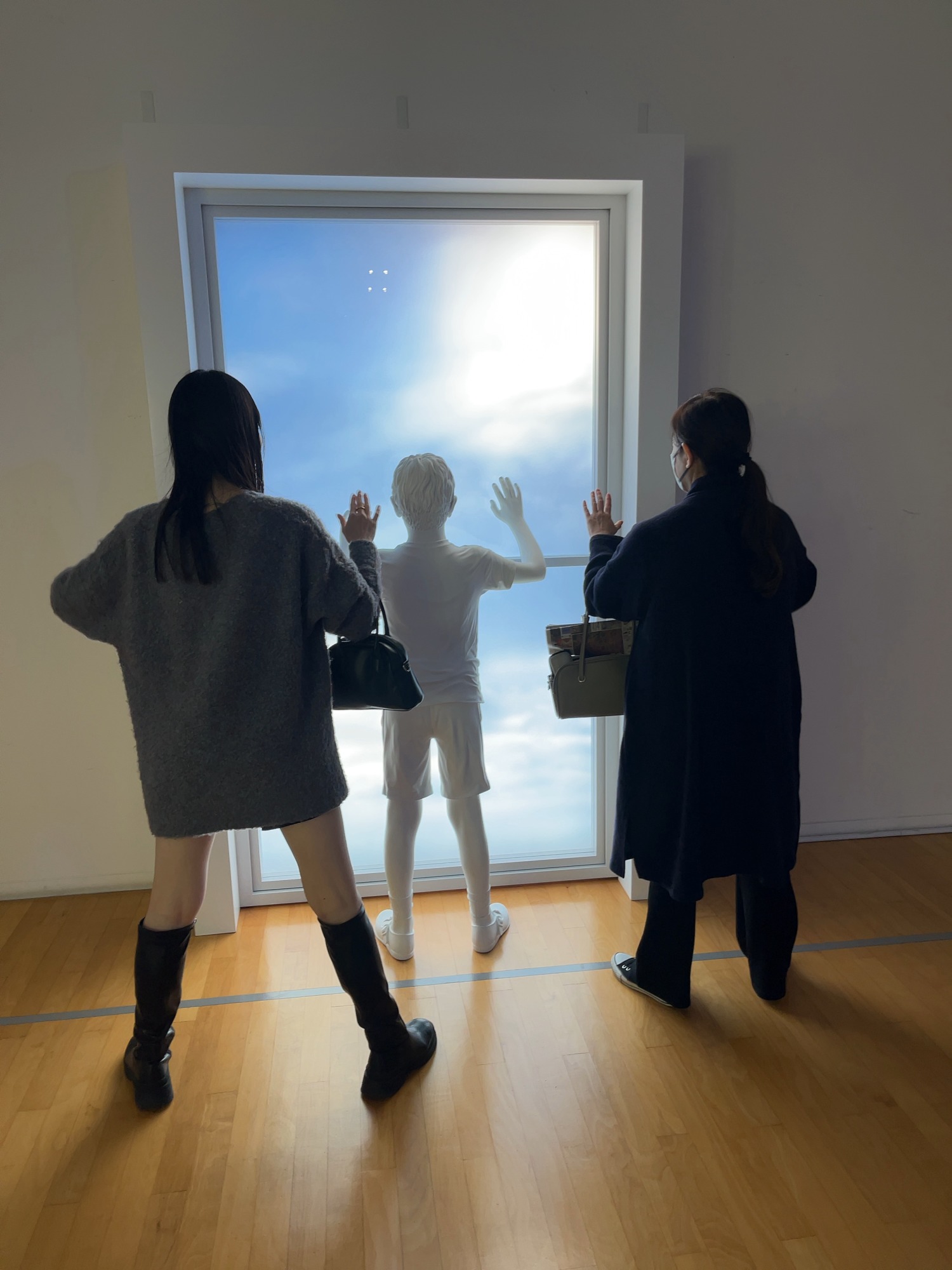 このベンチの場所は・・座って、背景に作品を入れる様にってレイアウト。