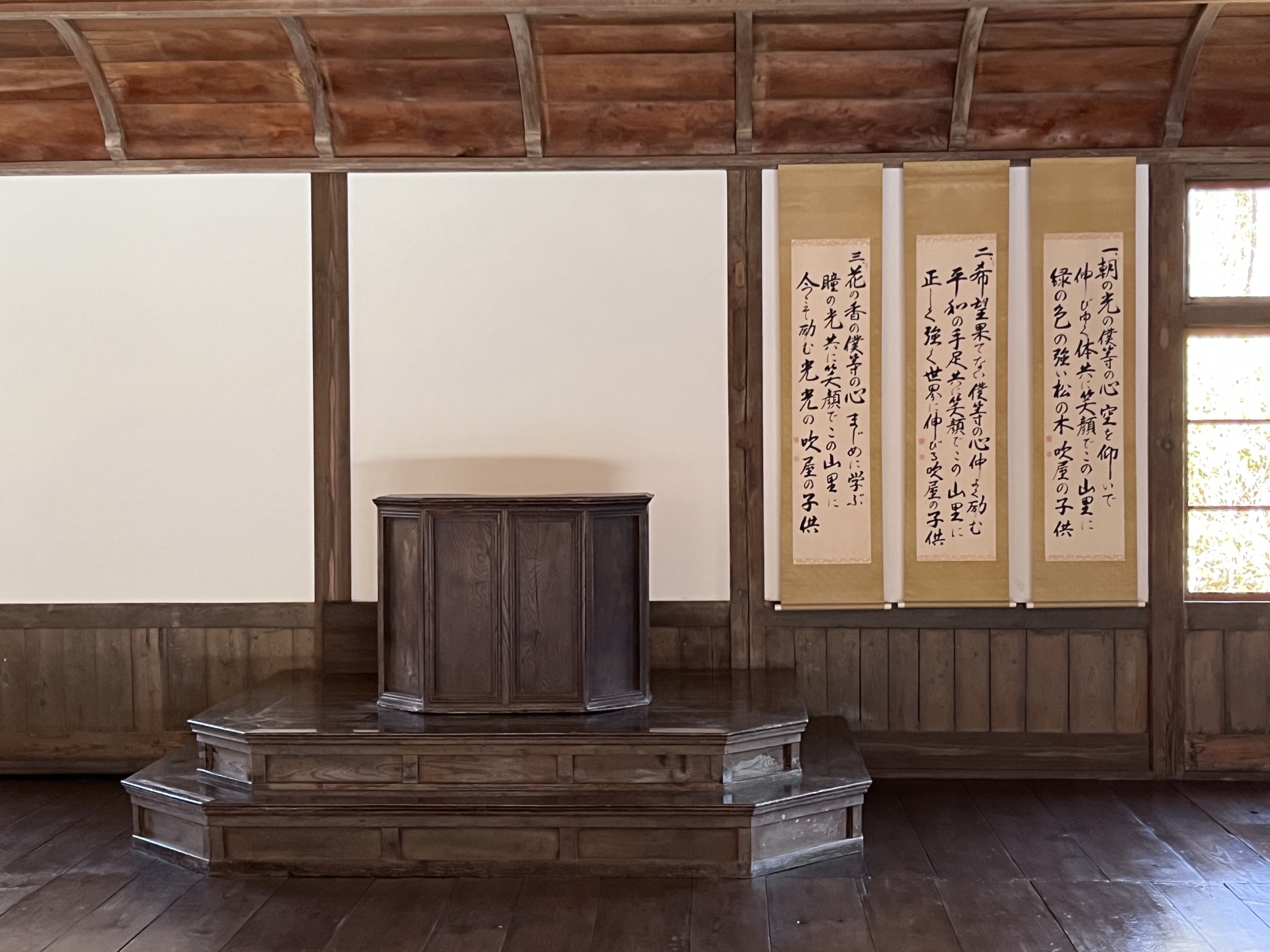 講堂は・・二階なんですね(旧遷喬小学校もそうでした)。