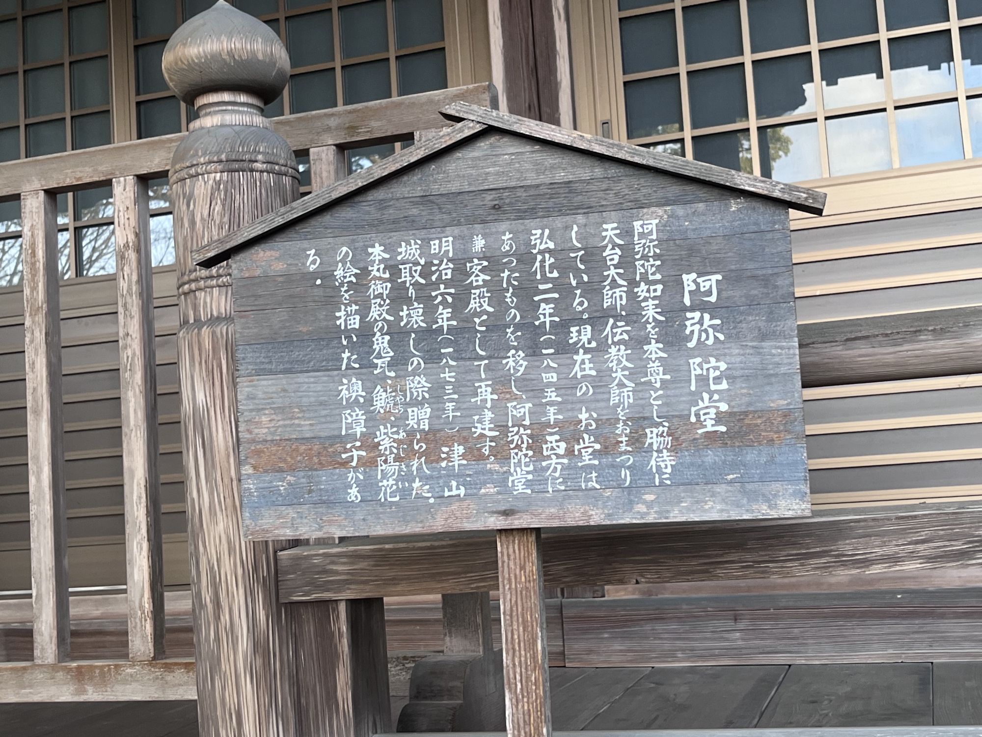 【その後、堂塔迦藍を建立、末寺ニ十ケ寺に及び頗る盛んなものであったが、大永・天正・貞享年間にわたって再三兵火の侵す処となり、悉(ことごと)く焼失し、現今の地へは弘化2年(1845)快玄法印の移したものであります。】
