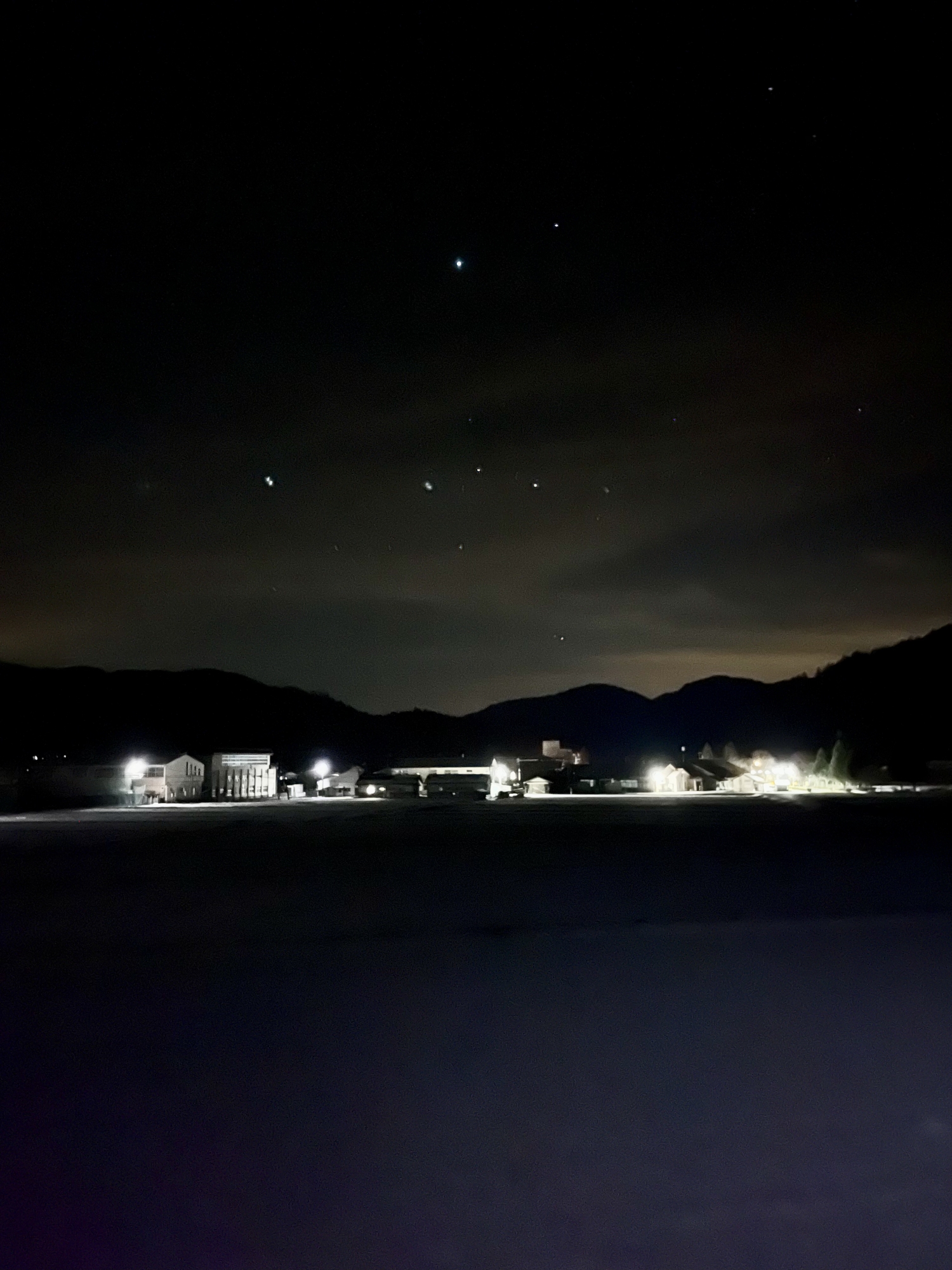 帰ってみると・・・土や田圃の上は、まだ、雪・・・でも、星もきれいでした。