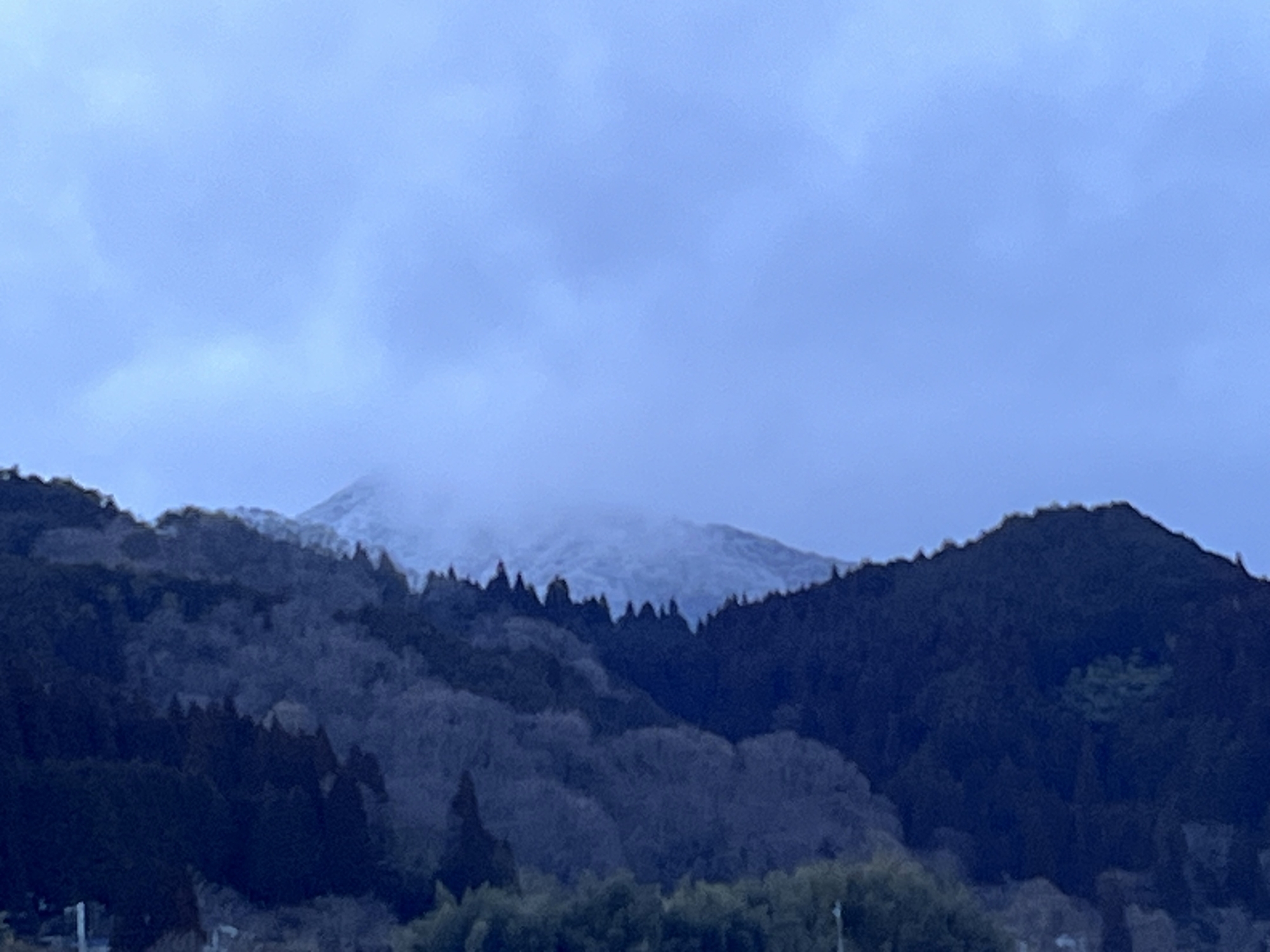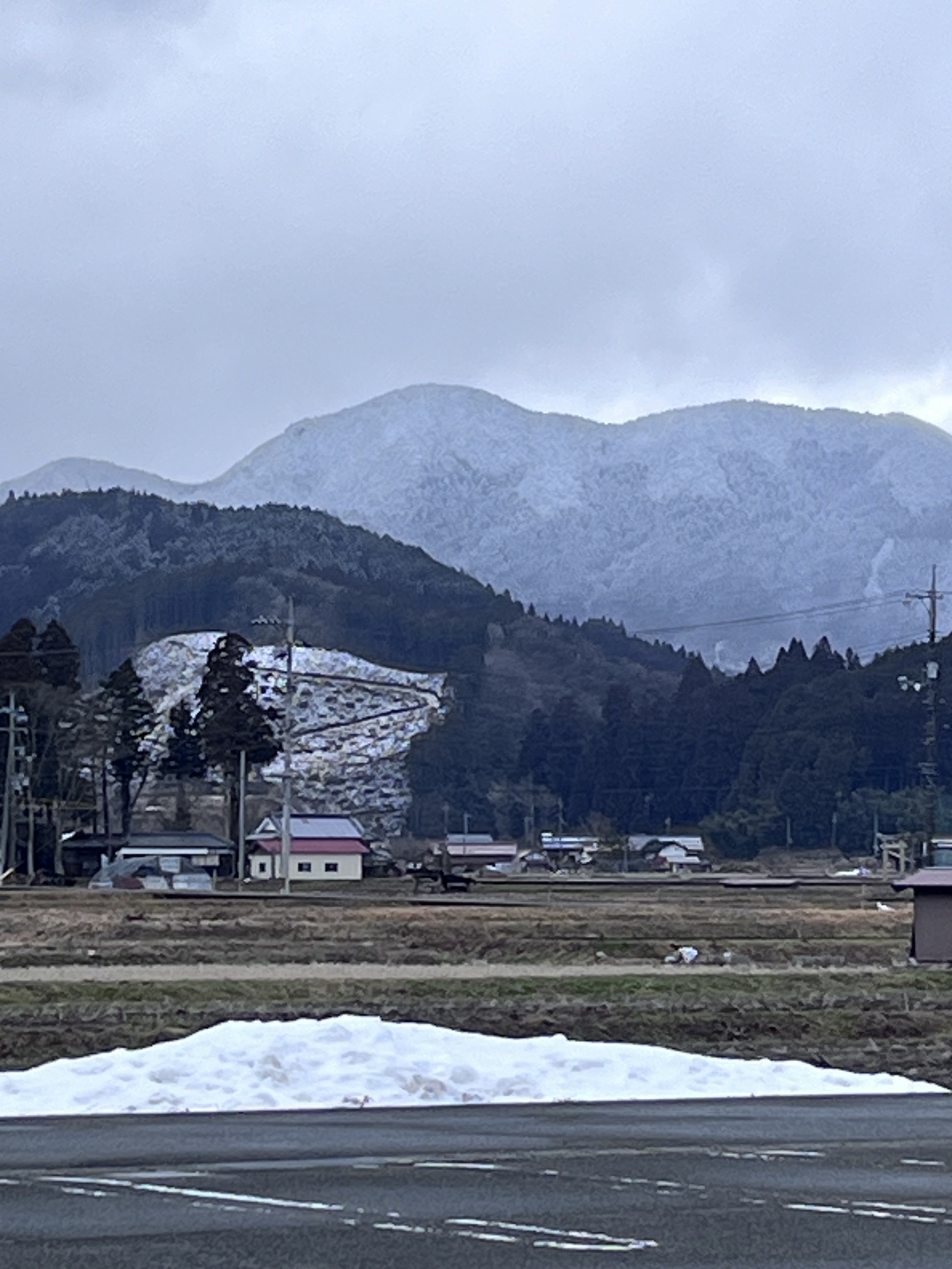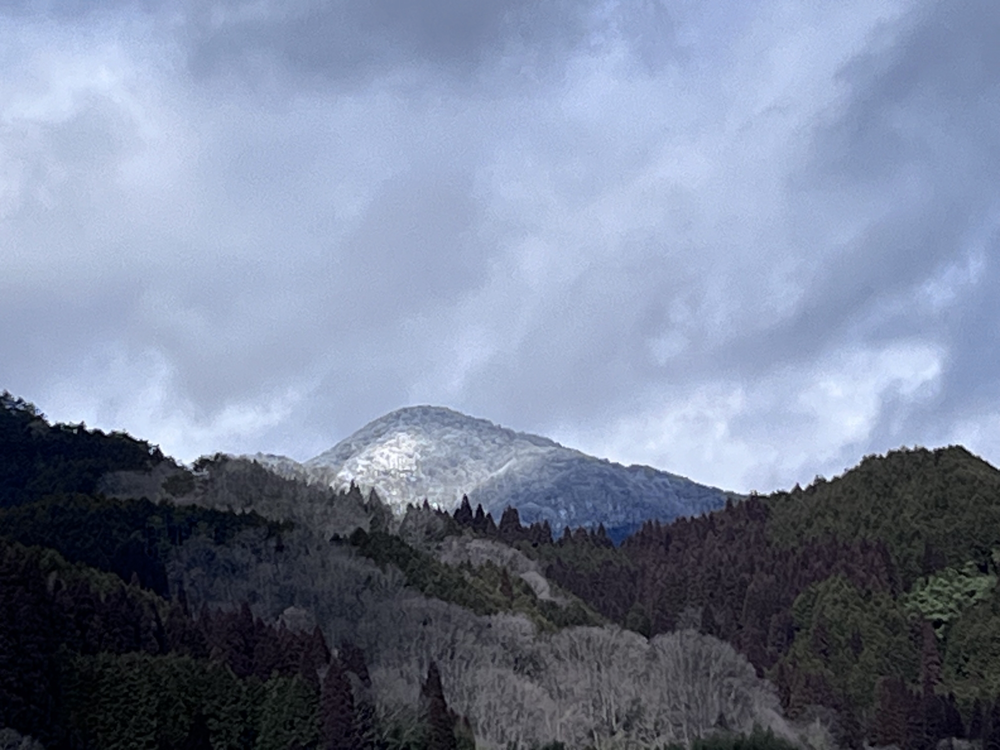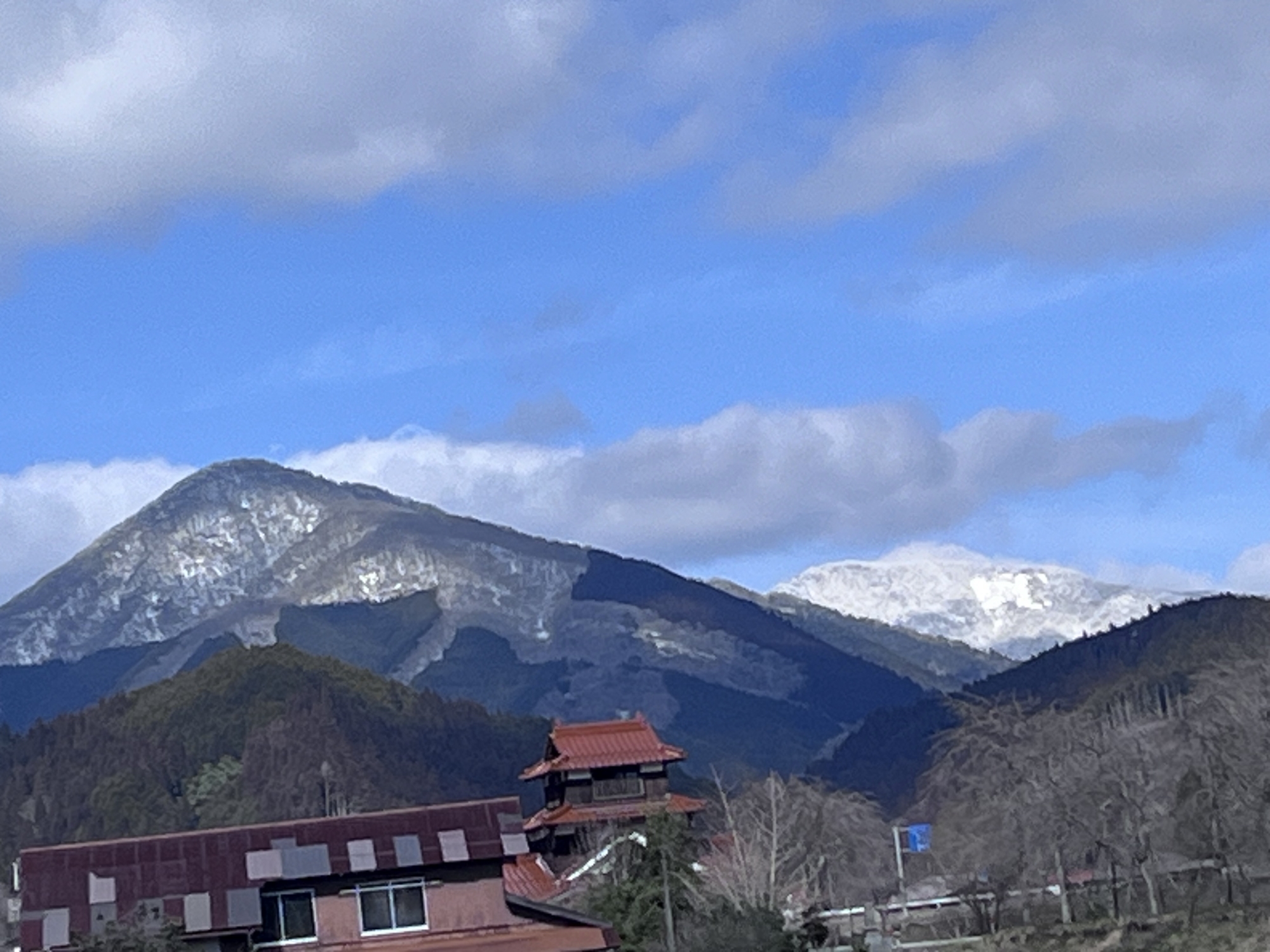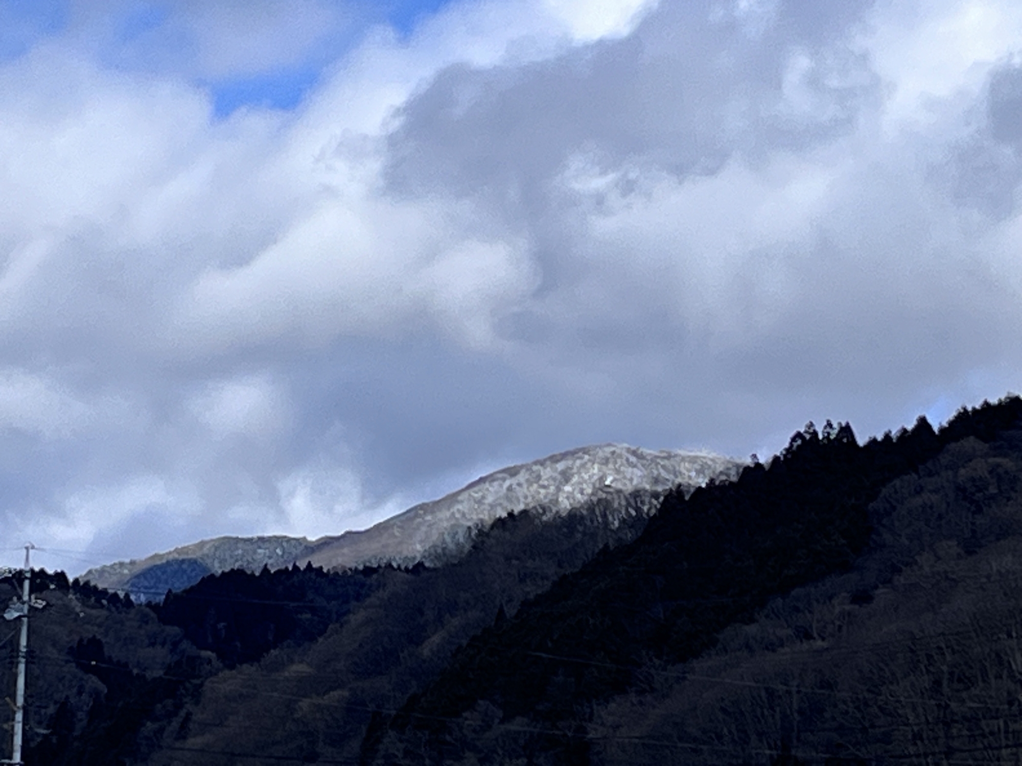 さて・・・笠杖山と、その奥の金ヶ谷山は・・雪が深いですね。