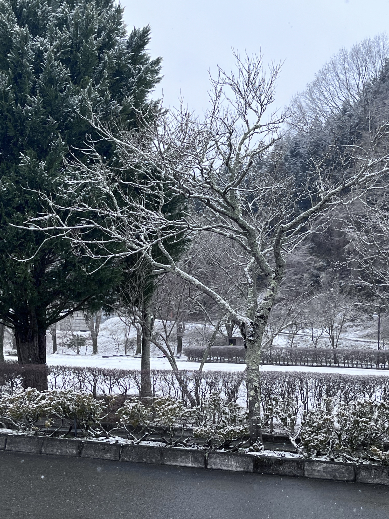 8日:寒いけど、朝はうっすらと雪・・・午後は、勝山の真庭中央図書館でDVD視聴会・・・行ってきました。