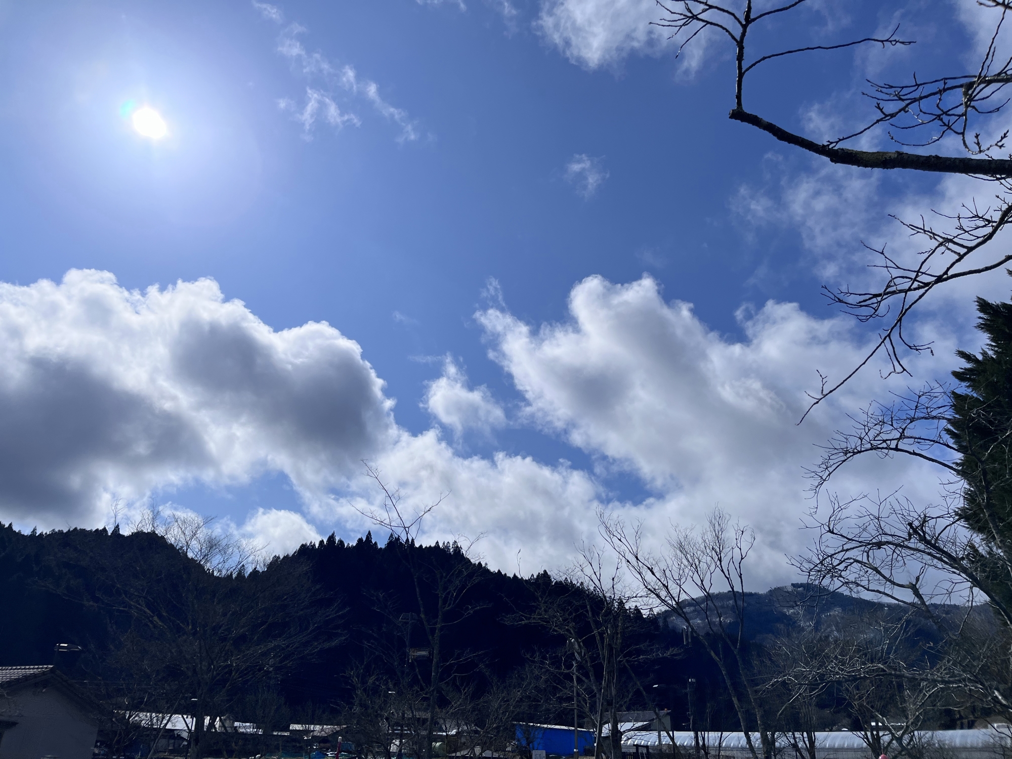 7日:まだ、時々、雪が舞いました。でも、昼は青空。