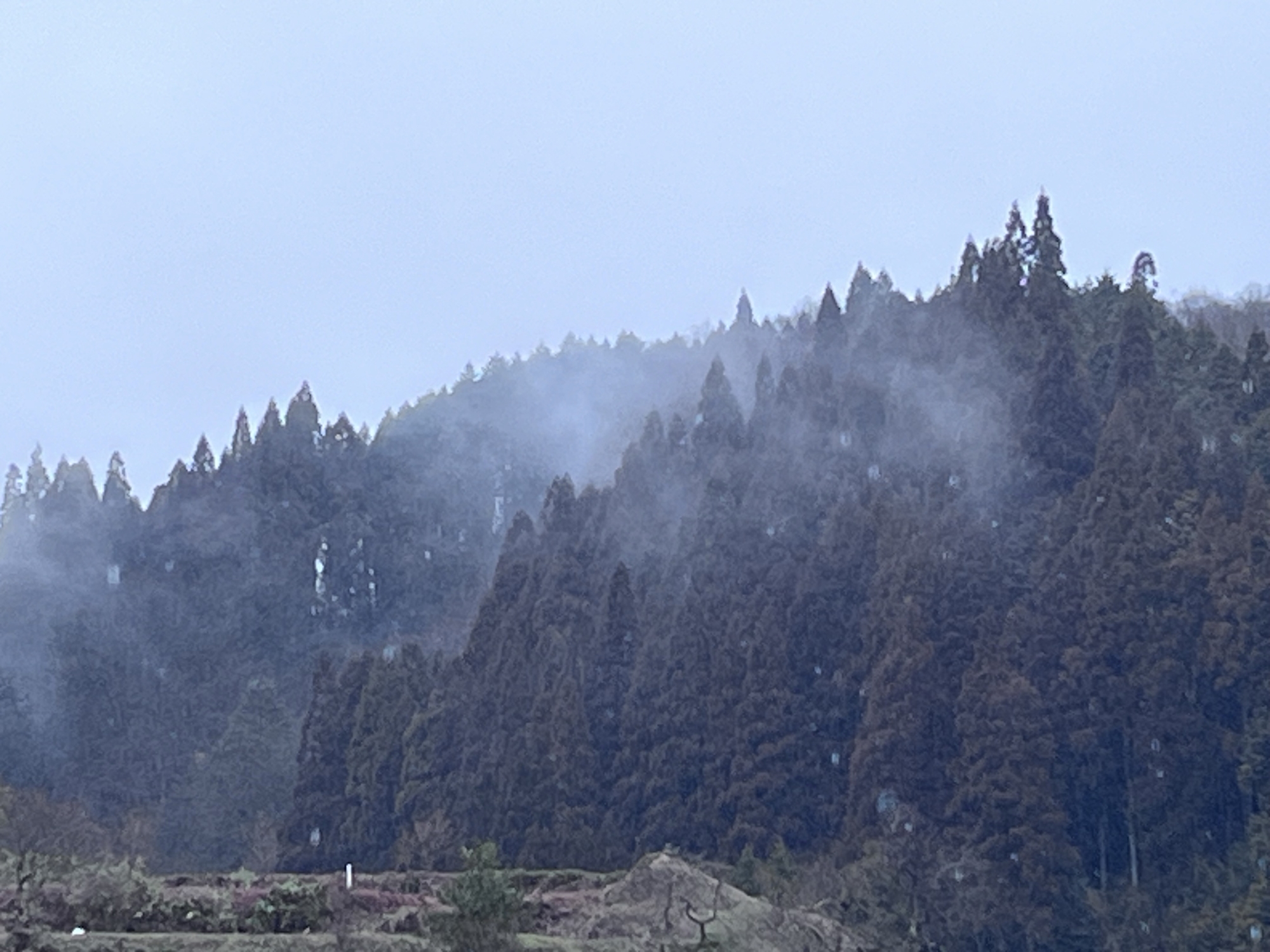 山は雲の中。