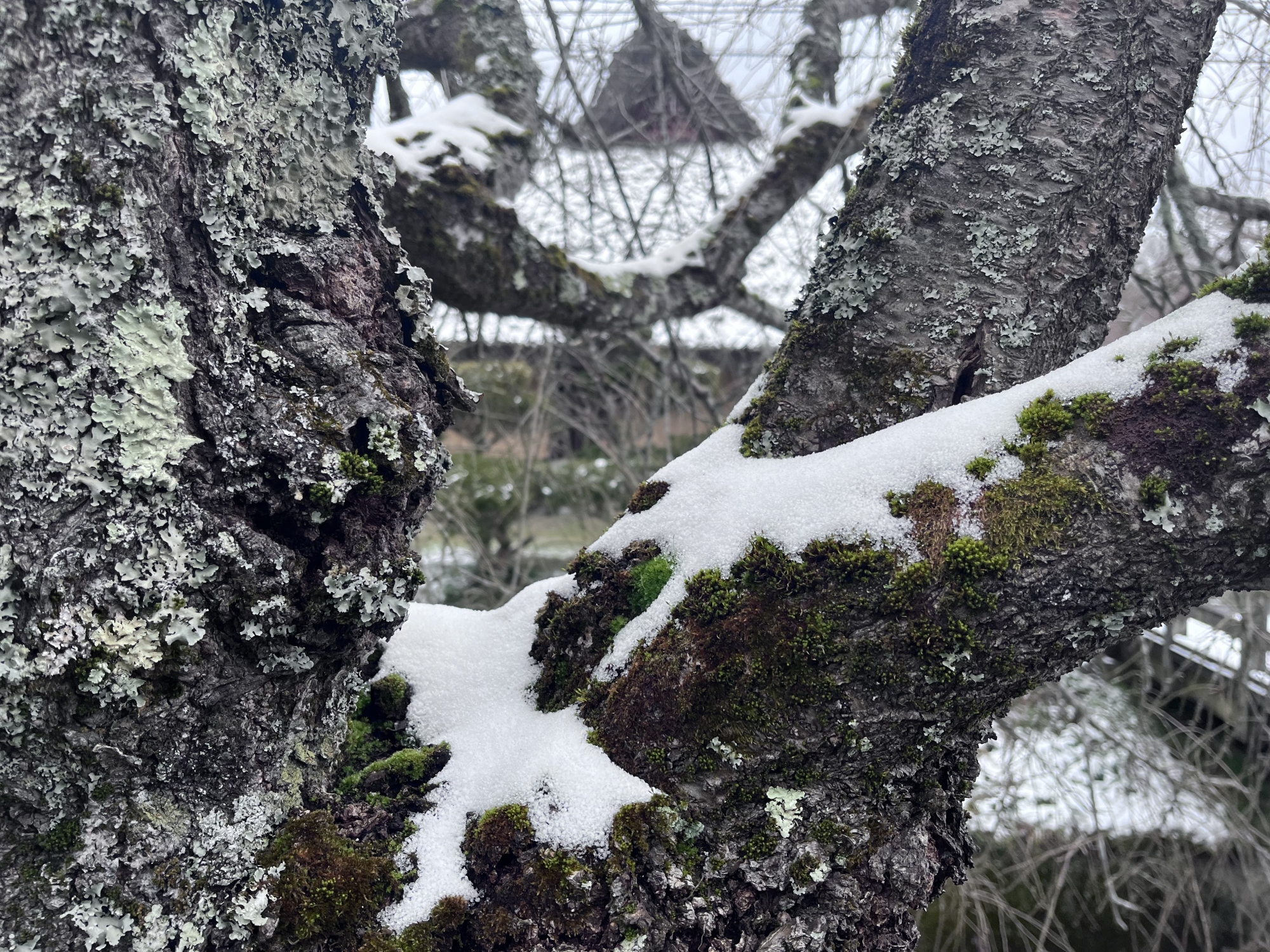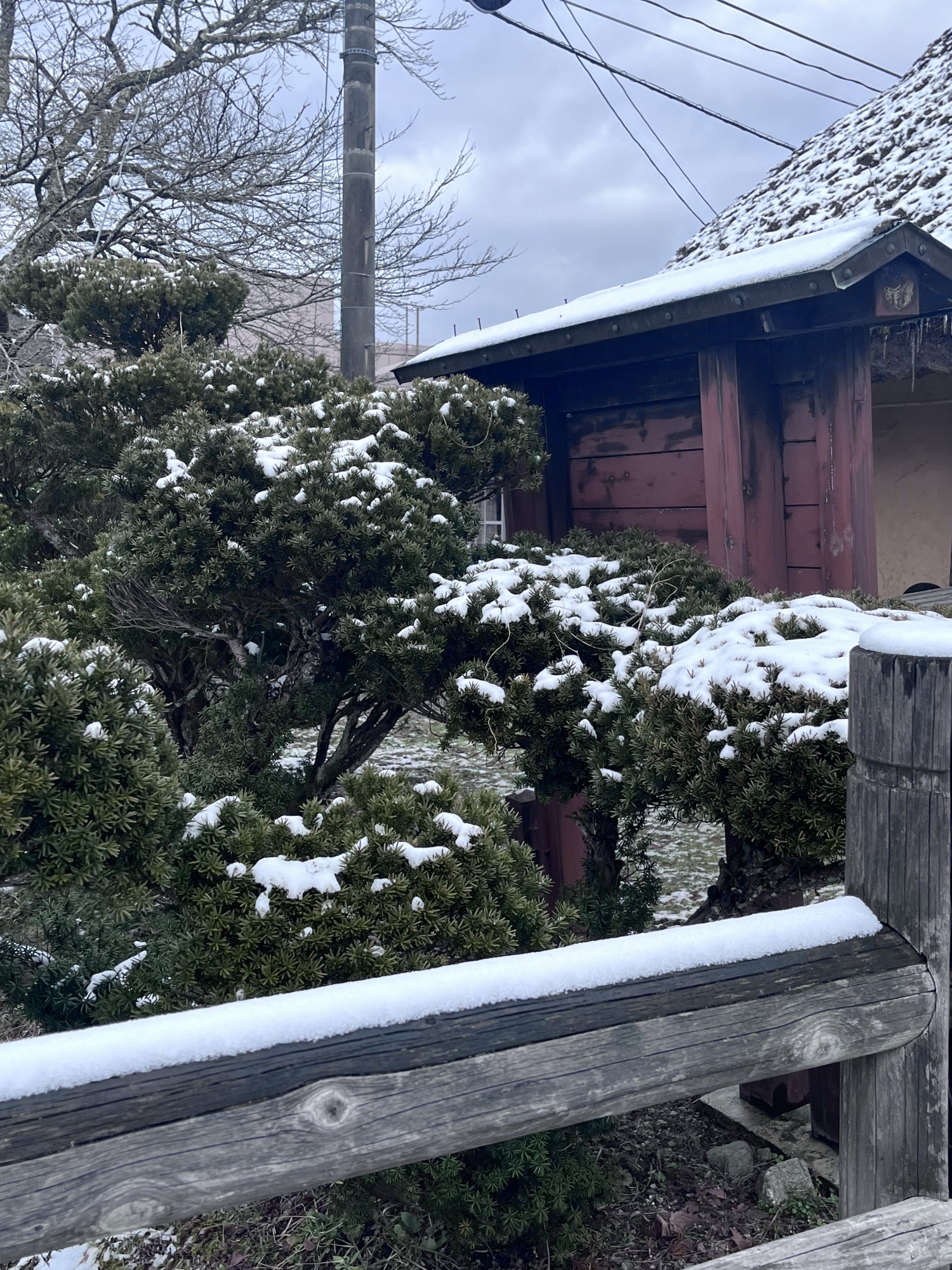 でも、気温も、氷点下ではないので・・・すごく積もりはしないだろうけれど。