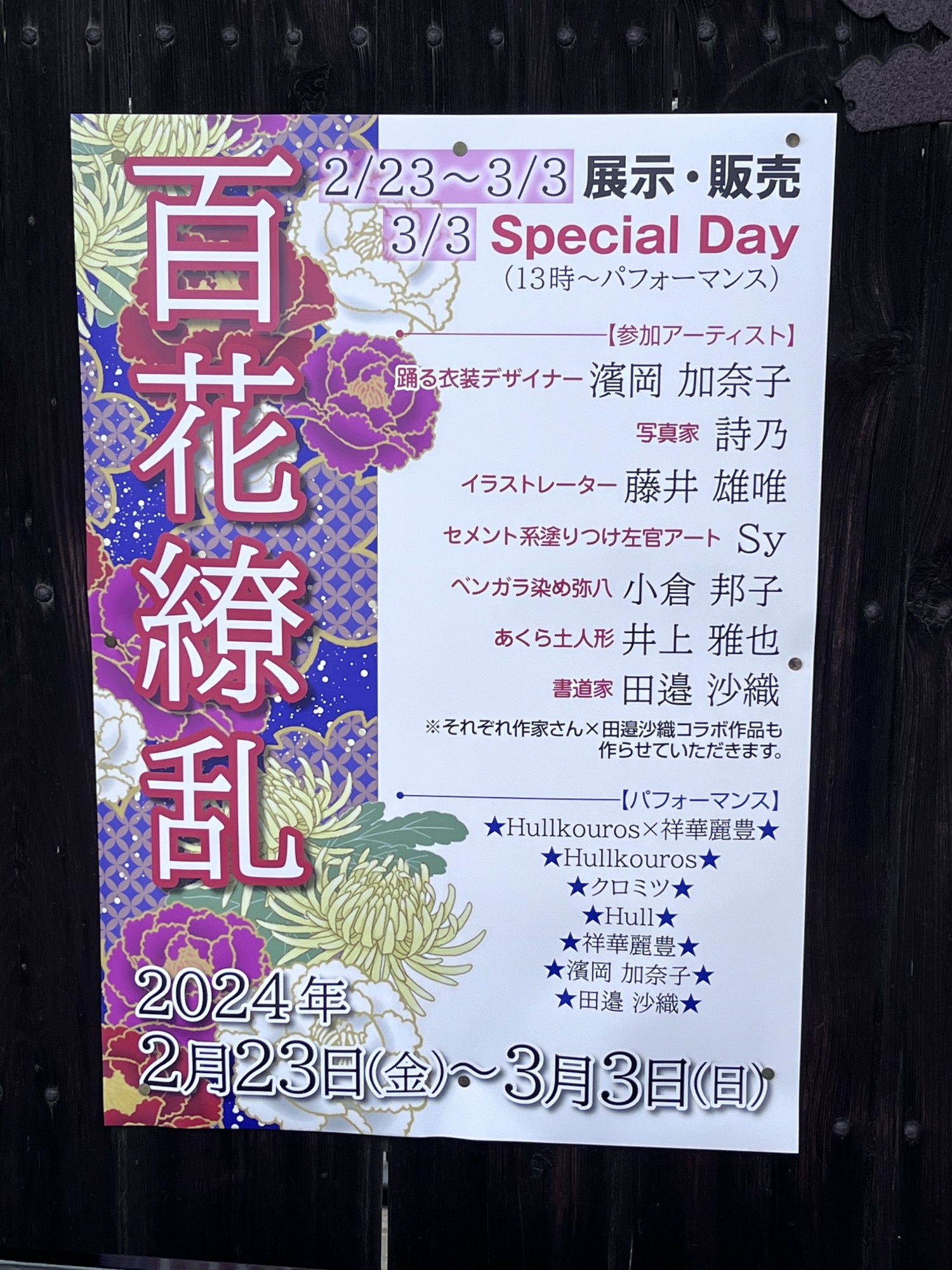 そして、知り合いの書家・田辺沙織さんや、写真家の詩乃さんなどのアート展示会。