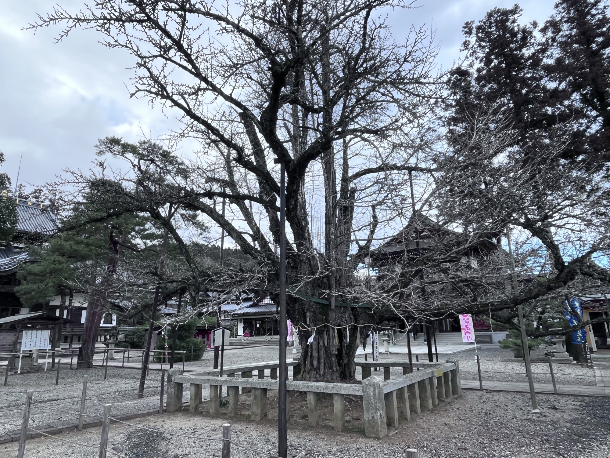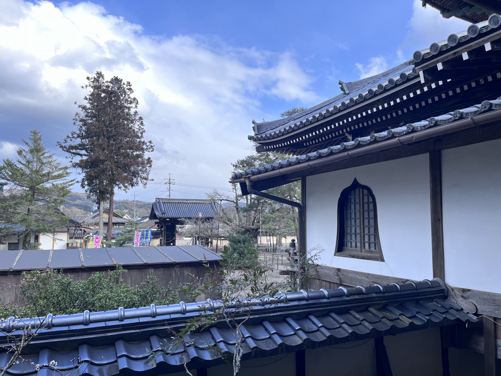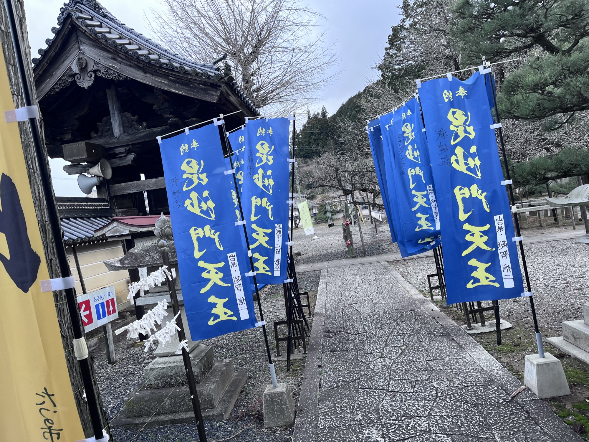 幟が・・幾つか、毘沙門天や逆さ公孫樹。