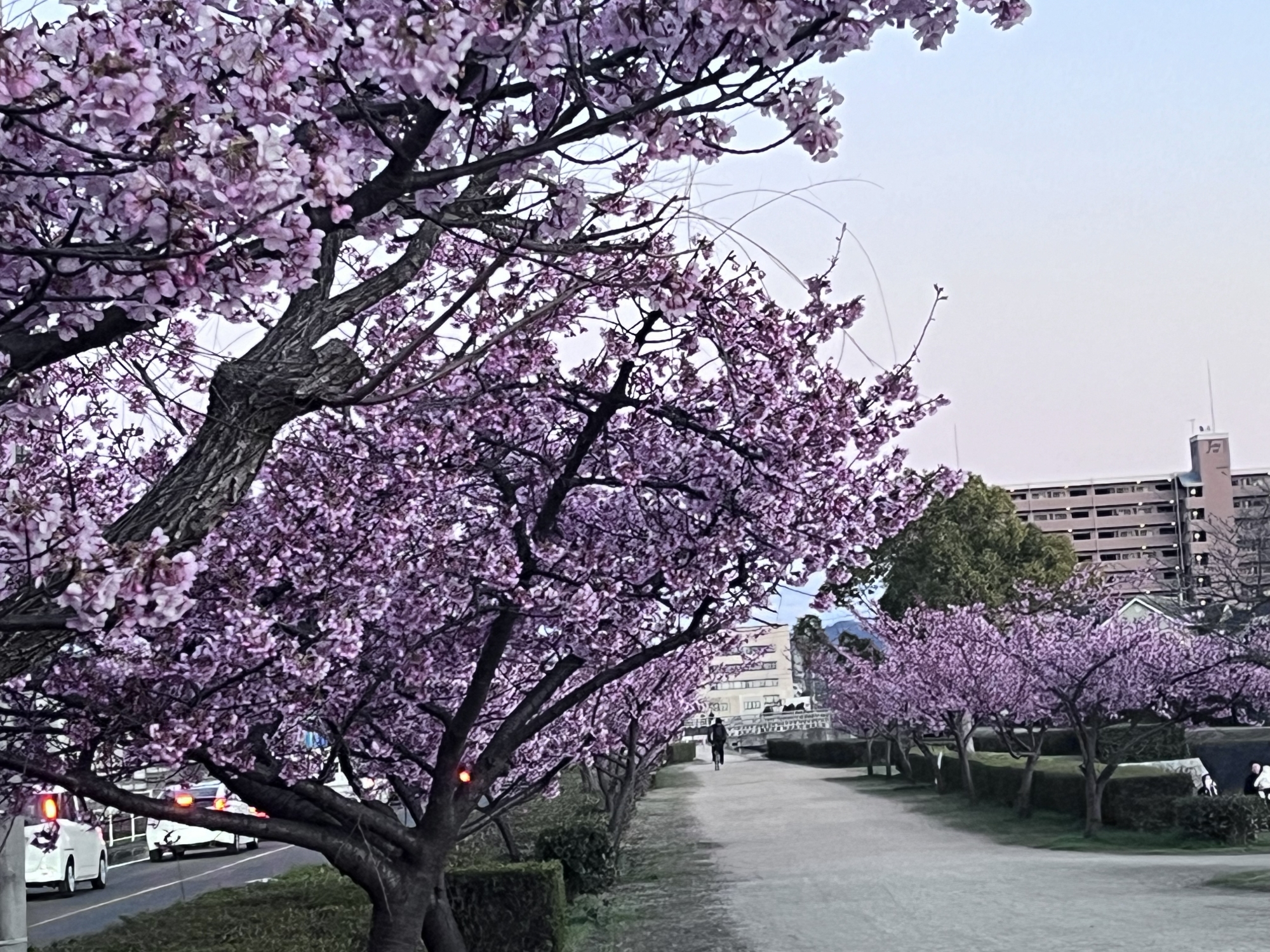 この前も、倉敷河畔の河津桜、6日後で一気に開いています。