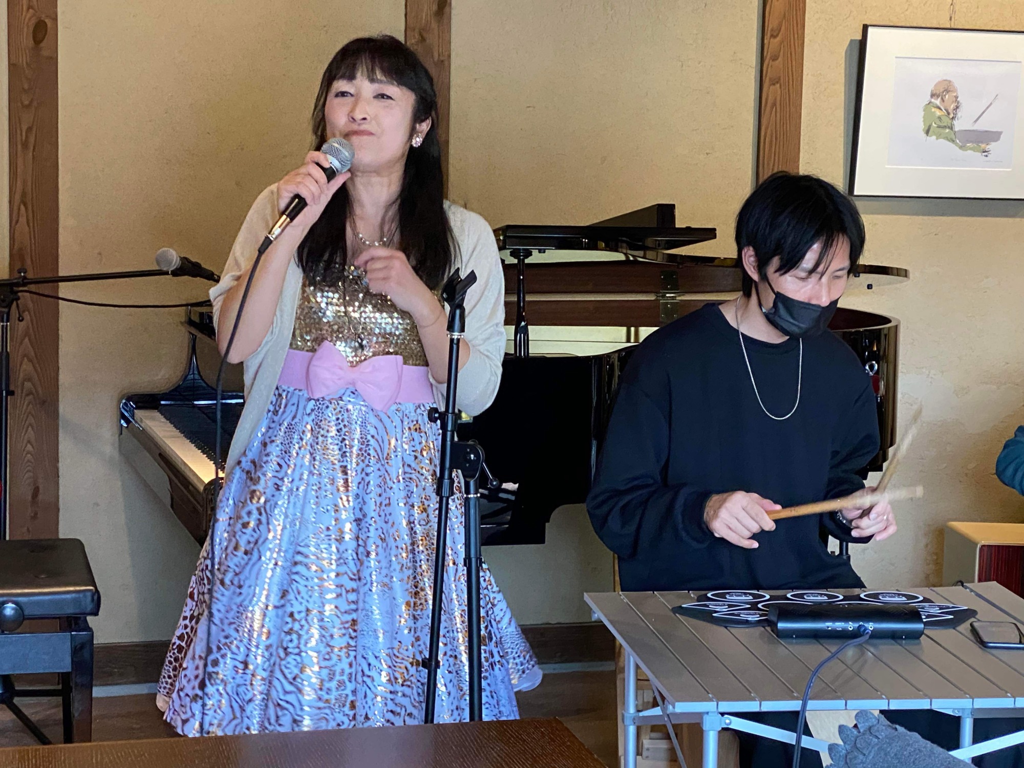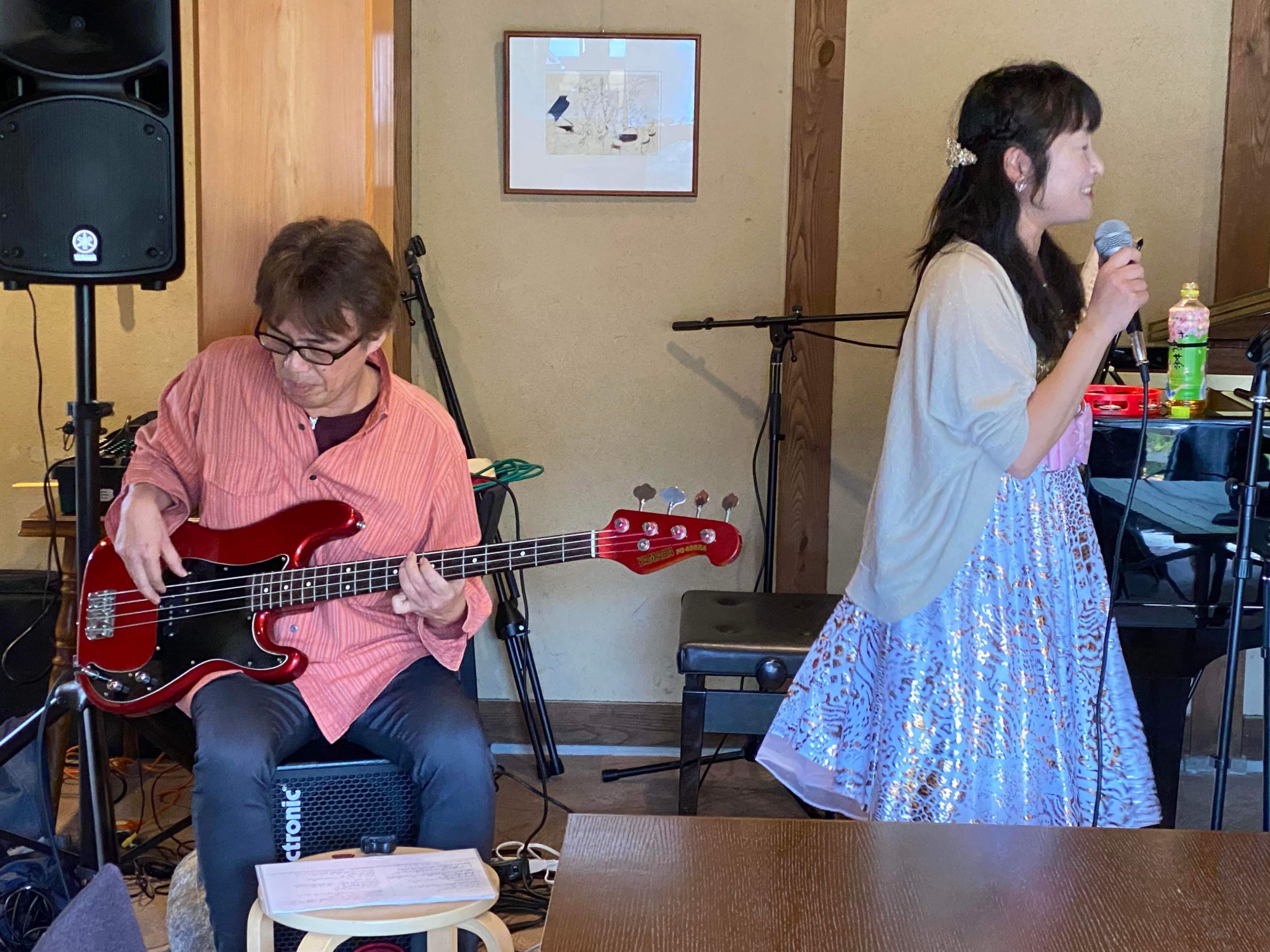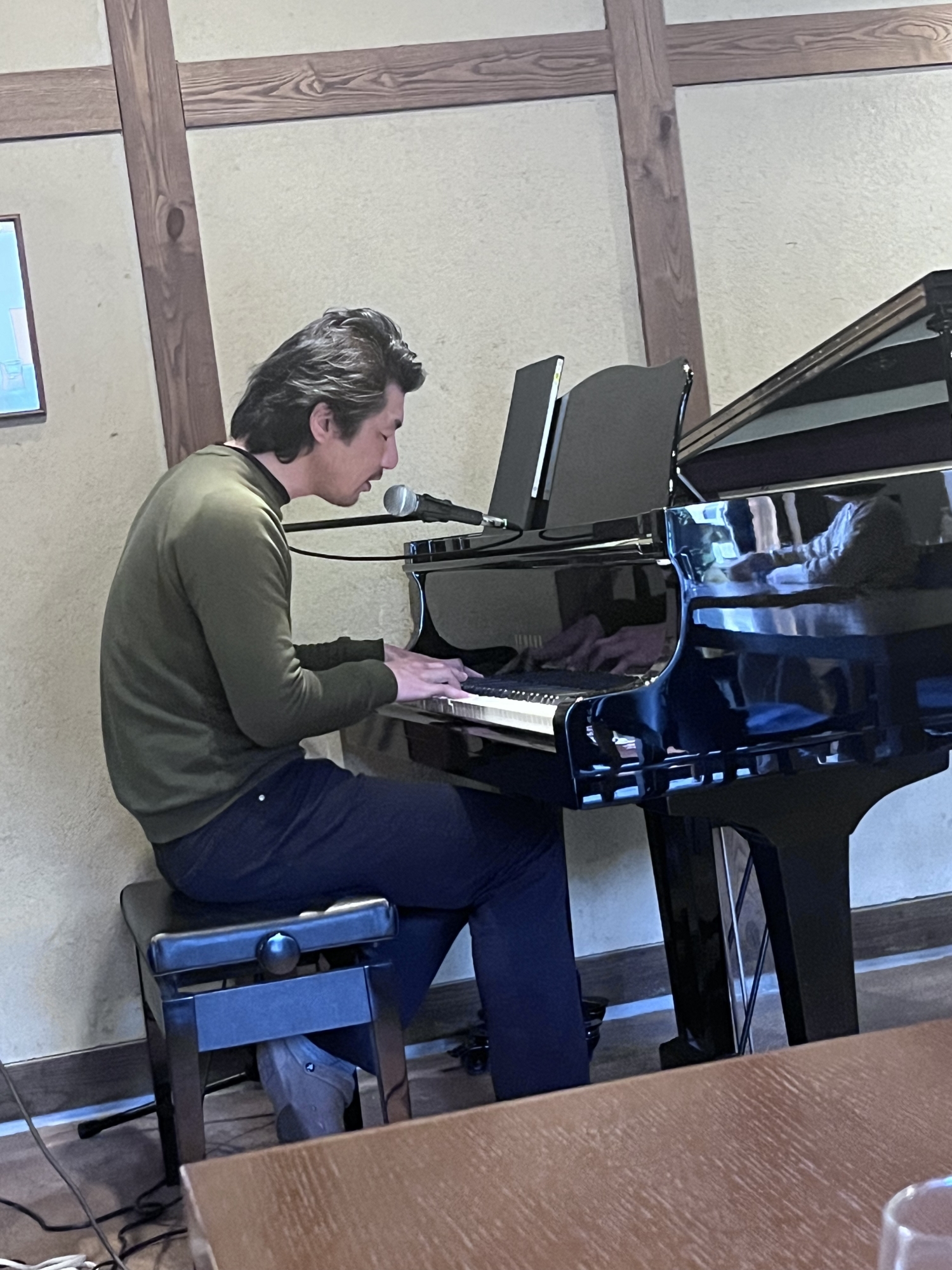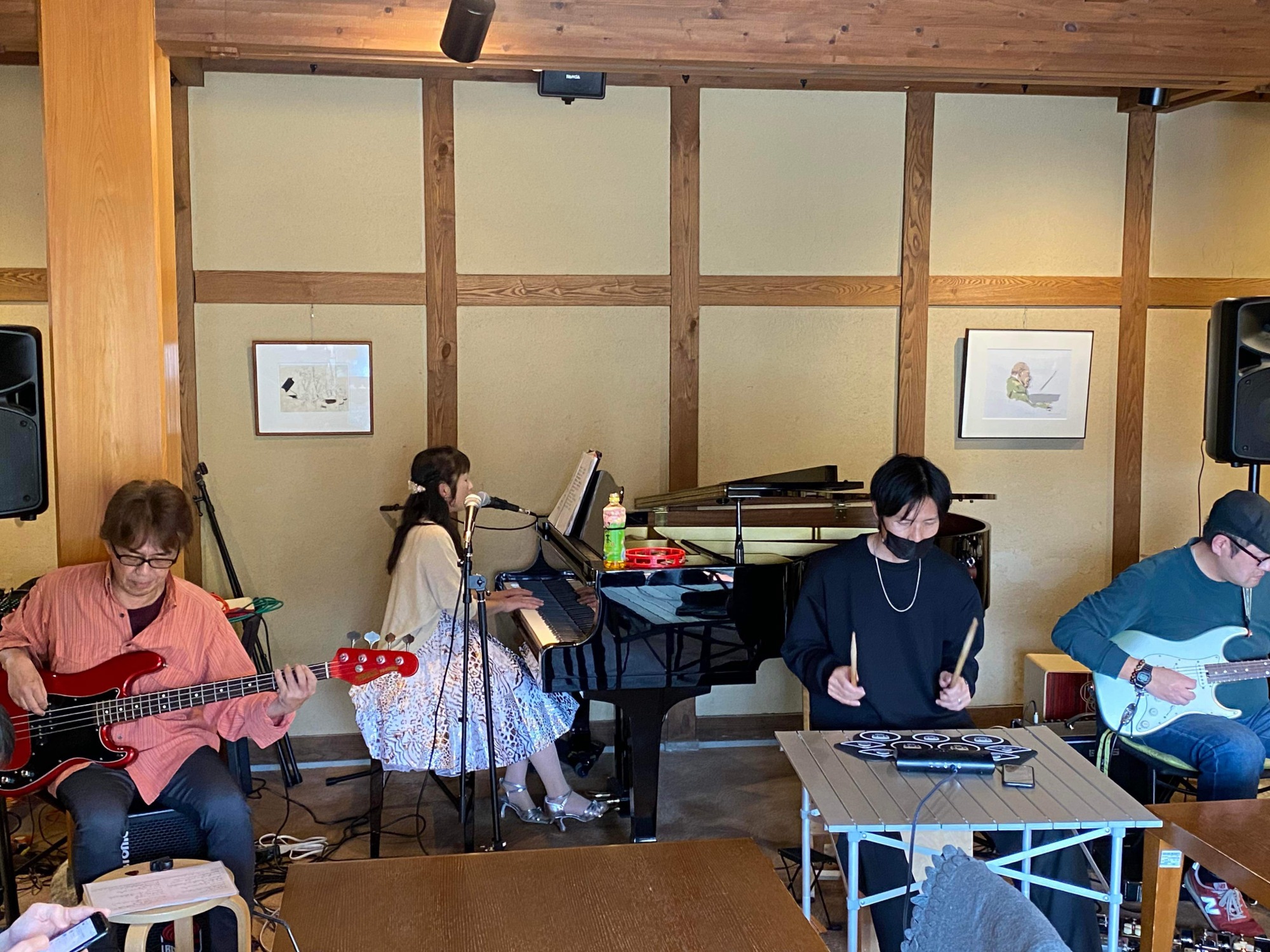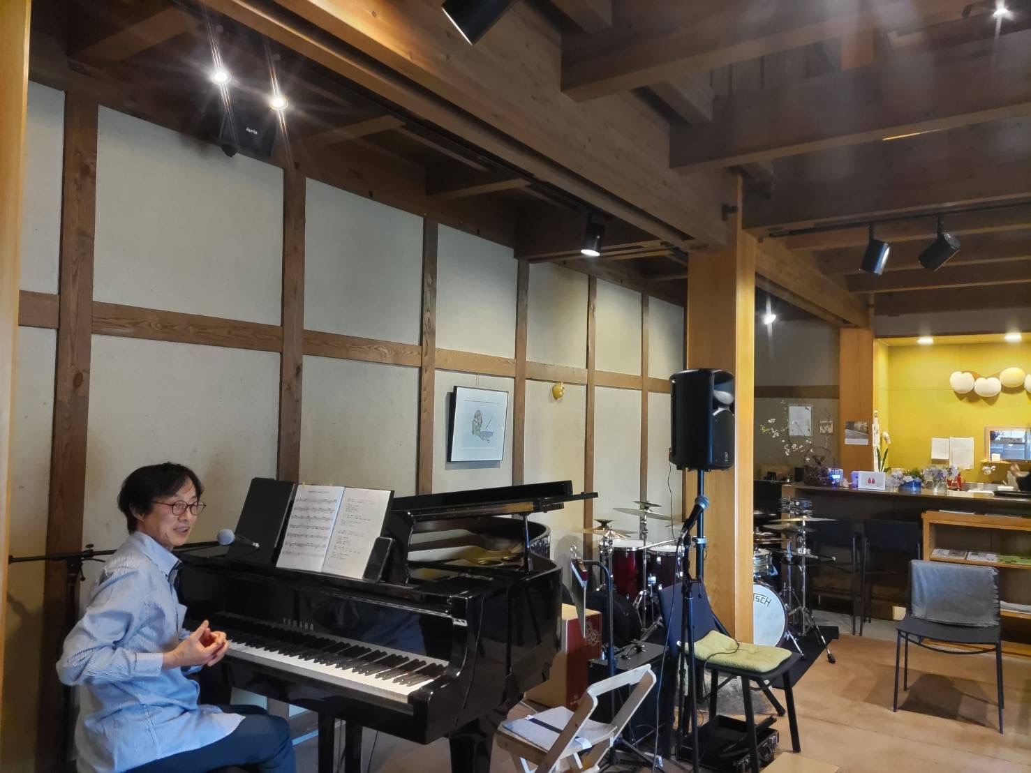 3曲のオリジナルともう1曲スタンダード、「映画ミネルヴァの梟、サポートソング」、「さくらの季節」、「朧月夜」、「3.11その後」を披露させて頂きました。