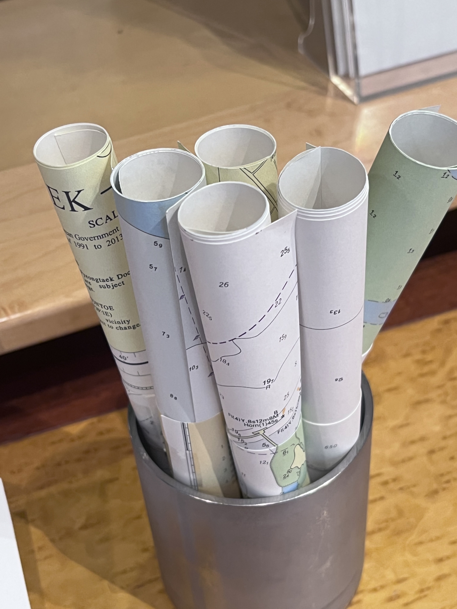 アンケートを投函すると、横に置いてある海図の切り抜きを、どれでも選んで・・って・・。