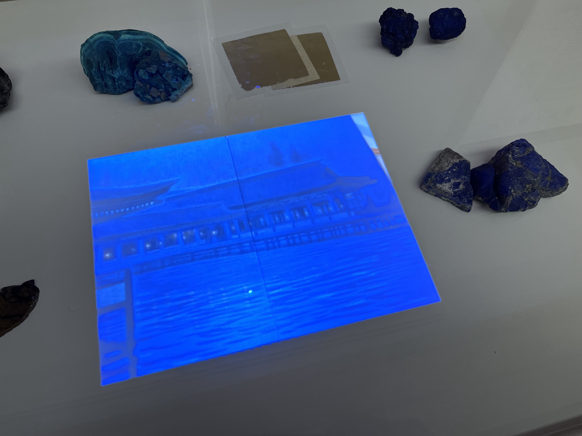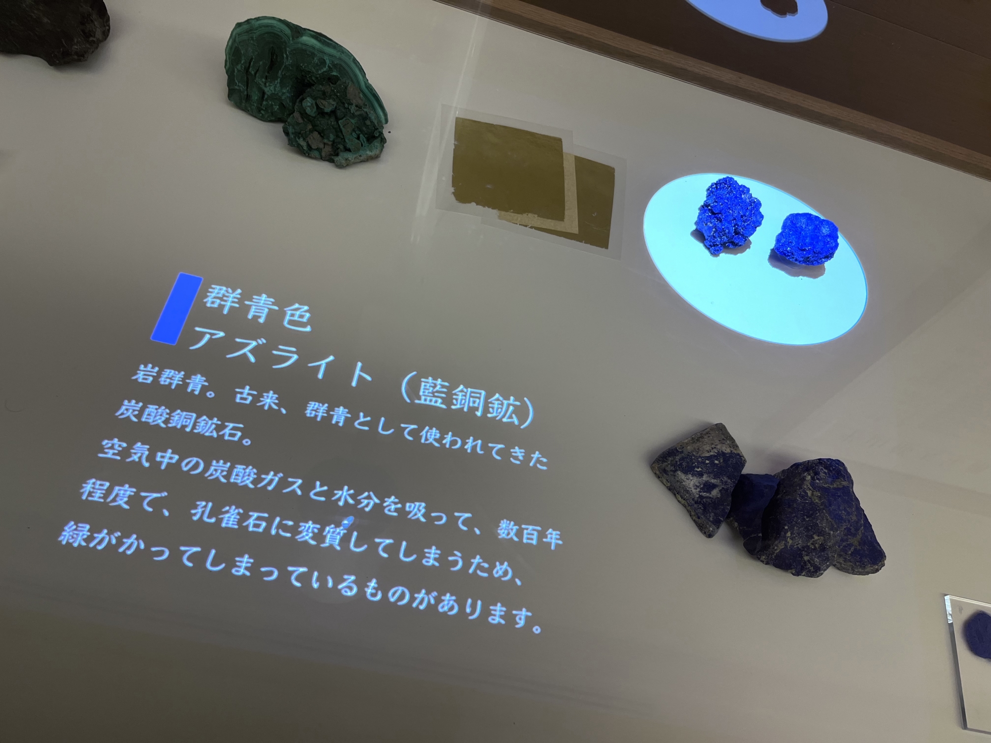 この青が素晴らしい・・。映像での説明、さらに、使用された天然岩石からの色の説明など、興味深い展示もあって、興味尽きませんでした。