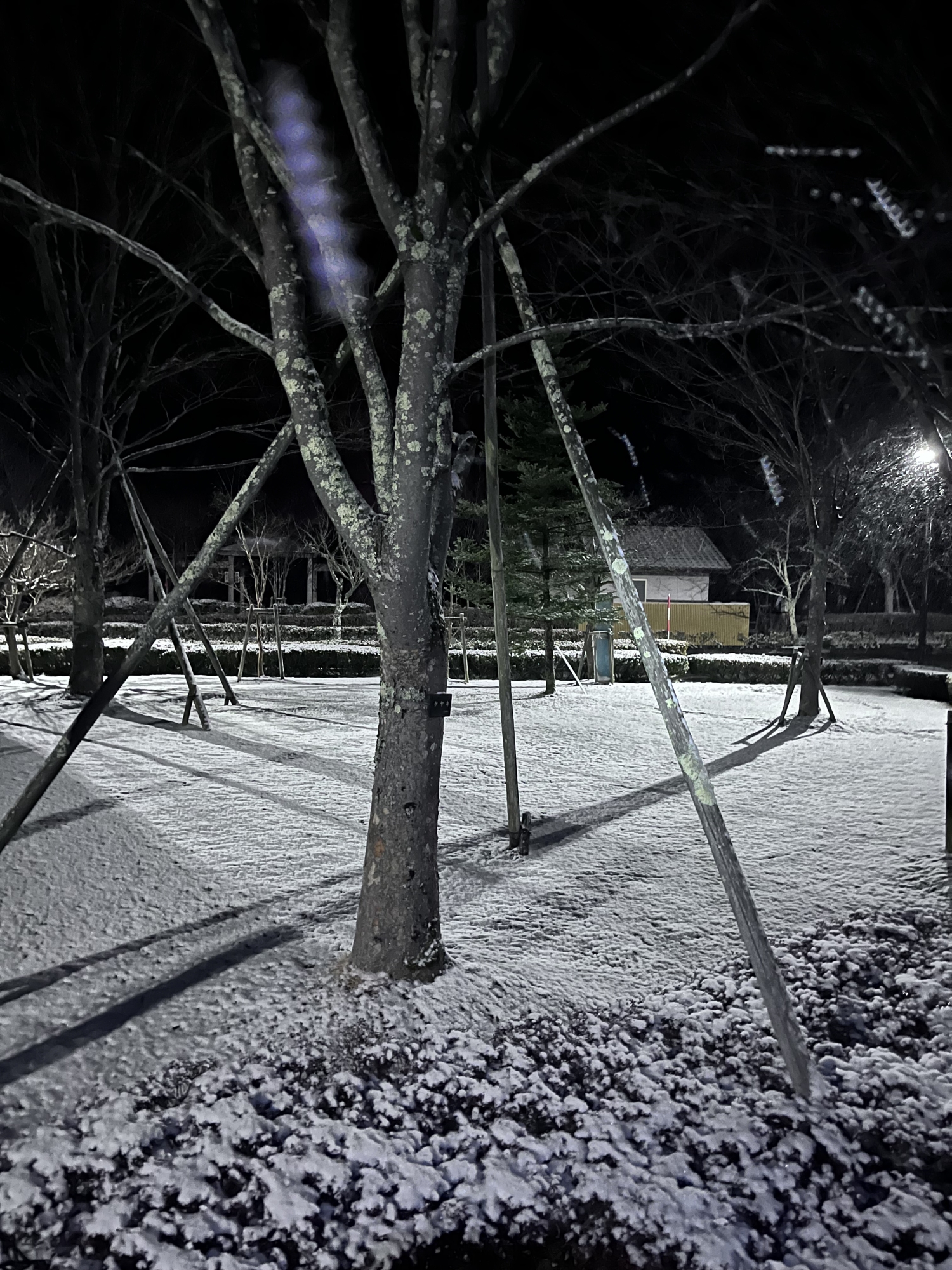そして・・・歴史民俗資料館を抜けて・・・公民館で英会話倶楽部で・・・そして、その後、少し積雪。