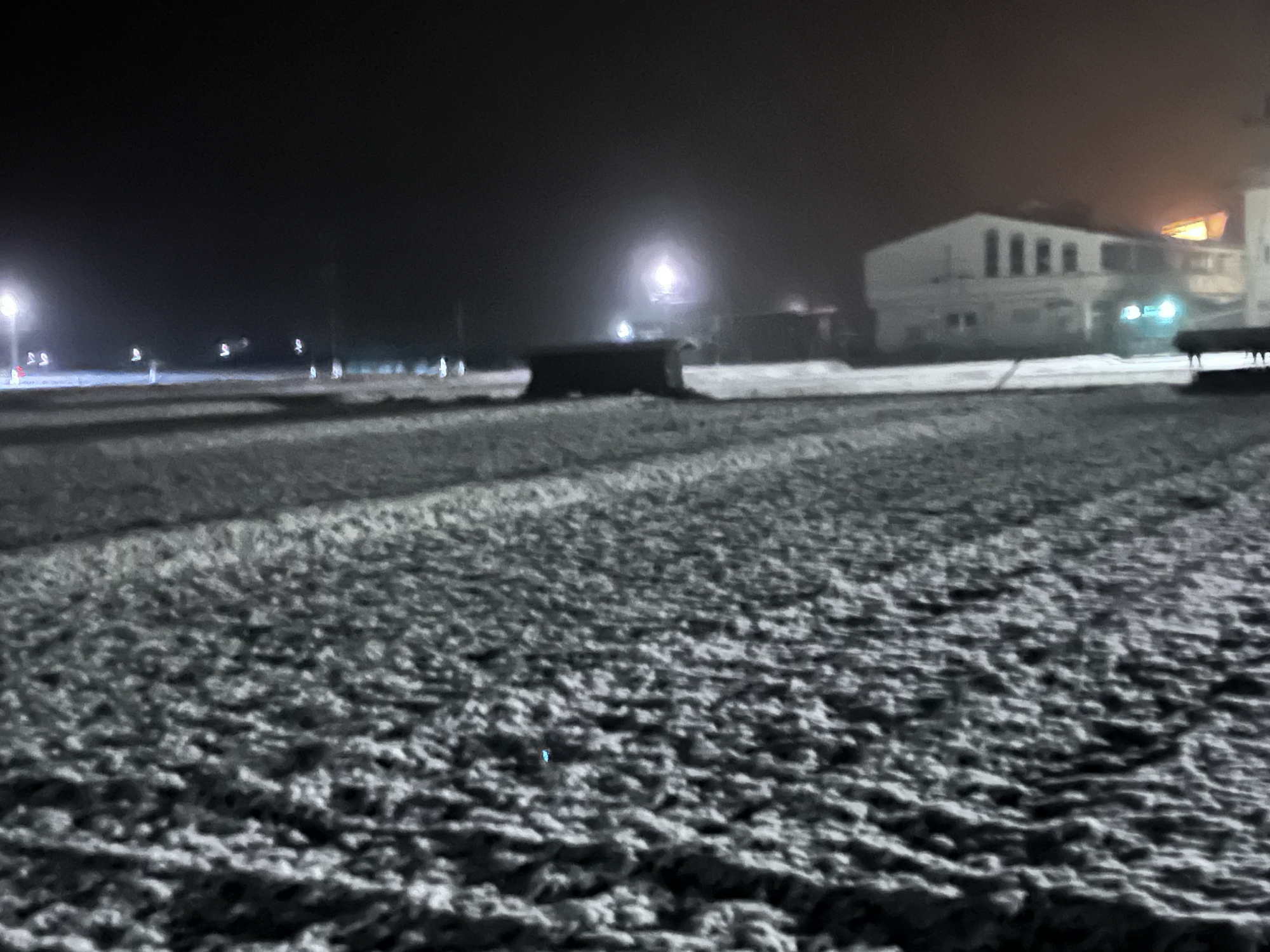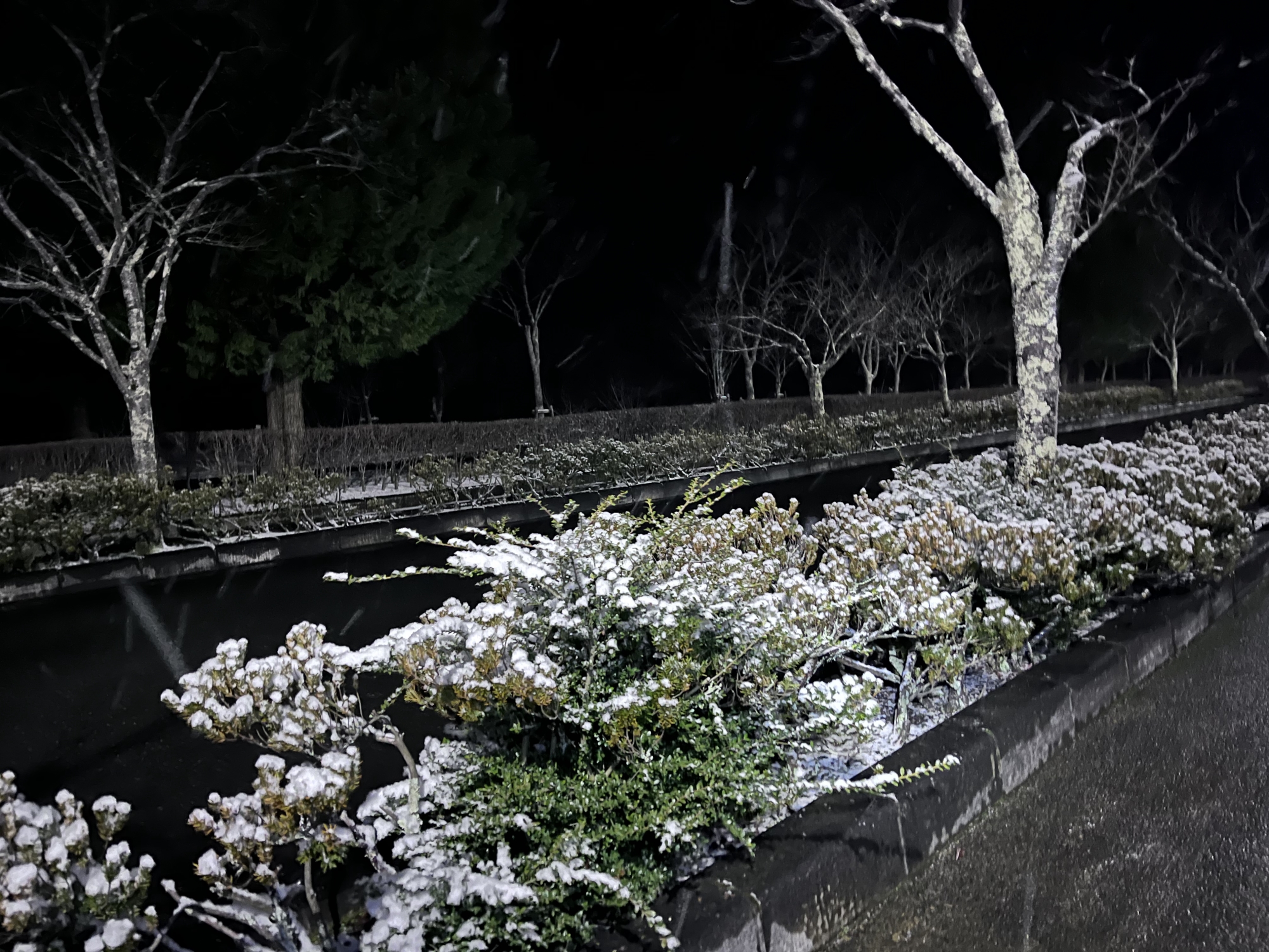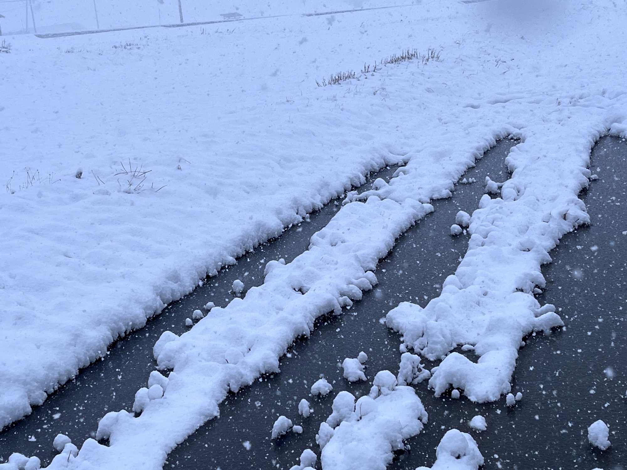 掻くほどでもないけど、アスファルトの上も積もりました。