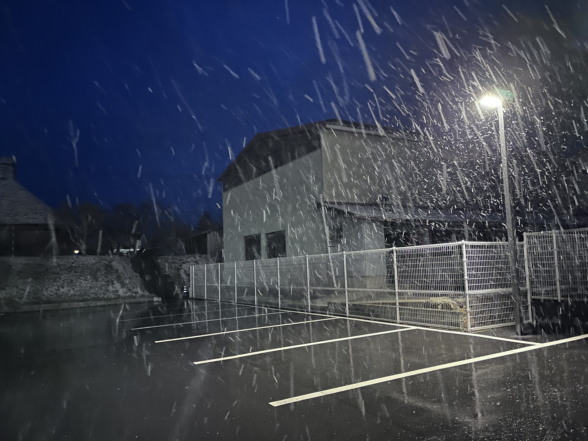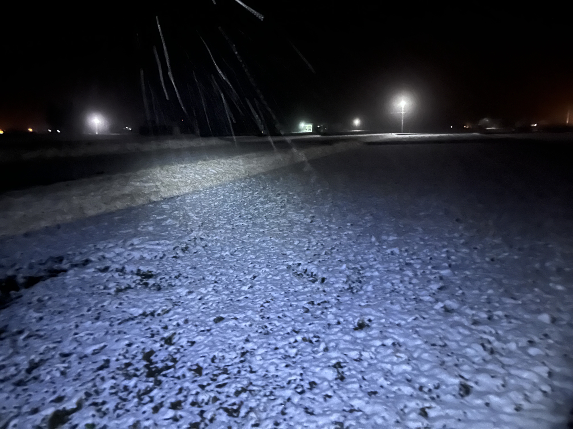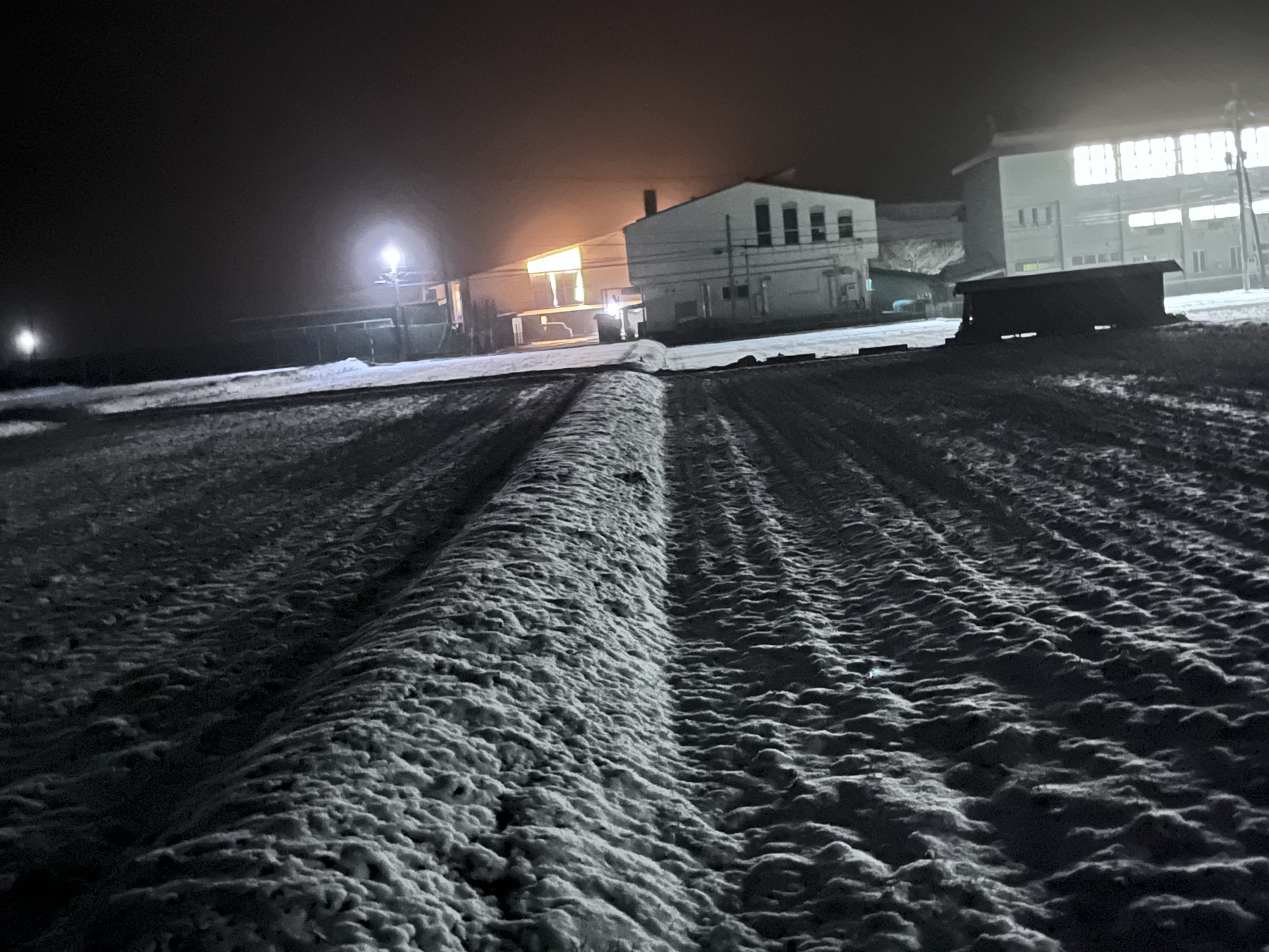 掻くほどでもないけど、アスファルトの上も積もりました。