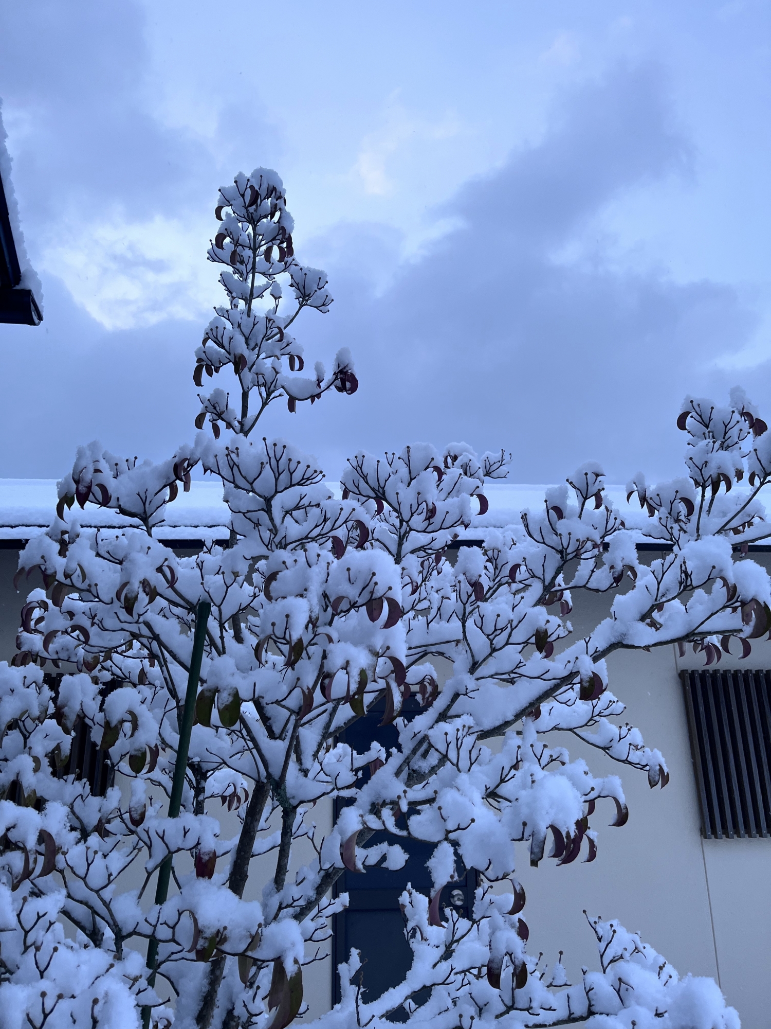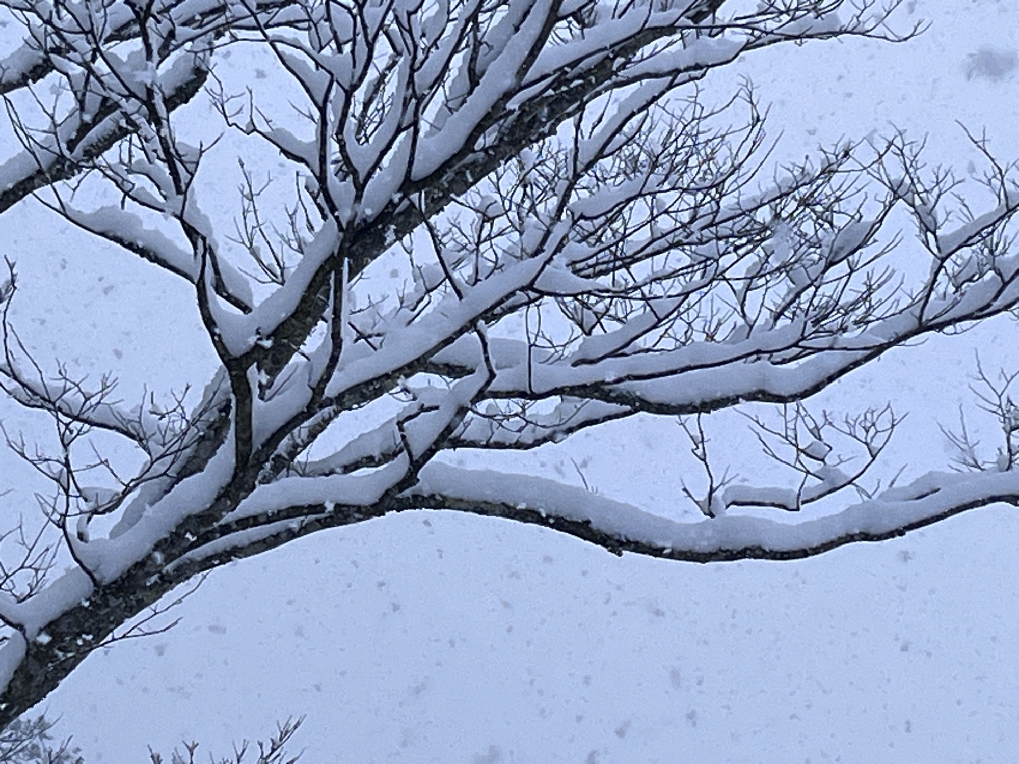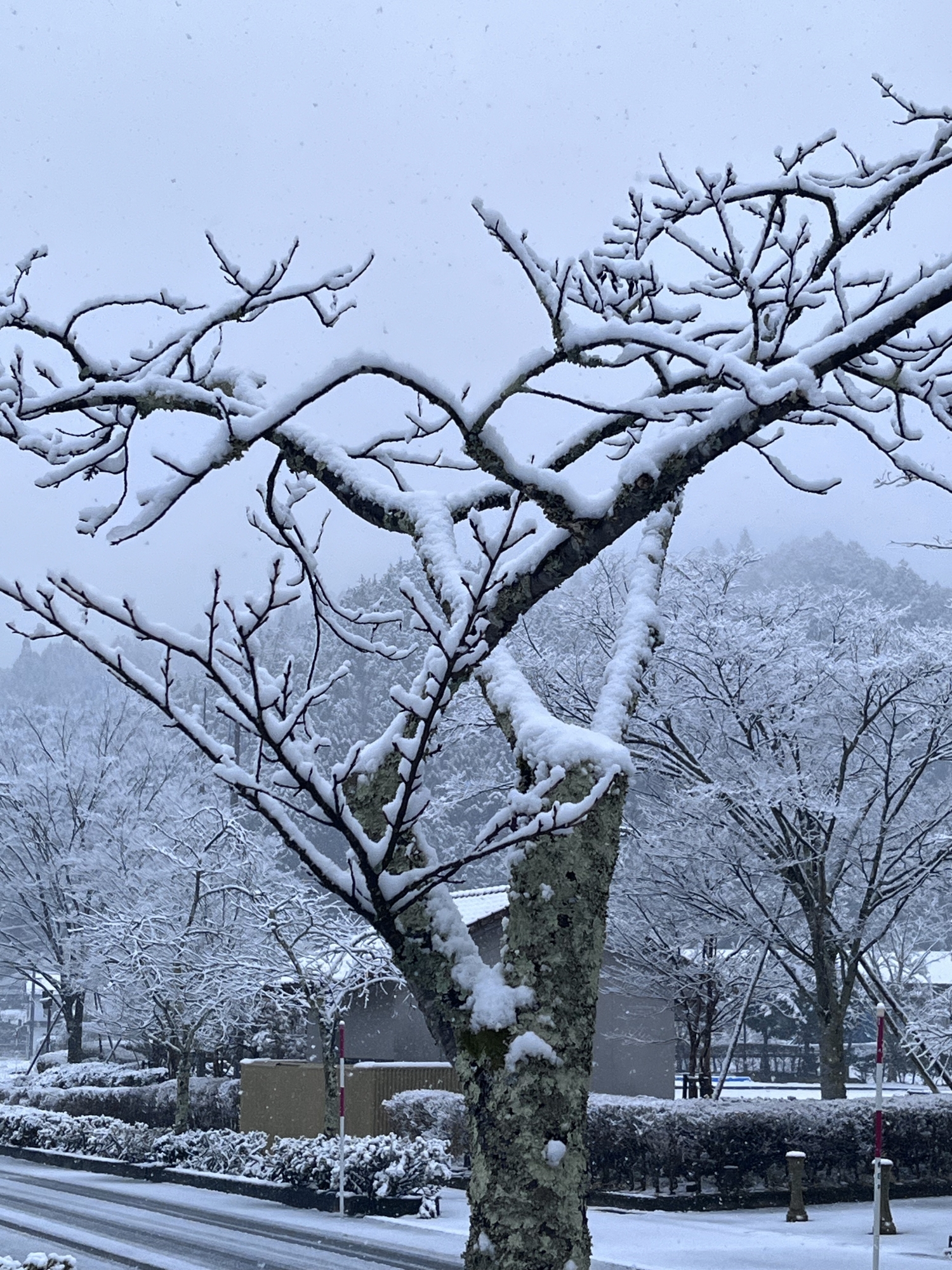 夜は英会話倶楽部で・・・でも、結構、降りますし、風も・・・夜のうちに、舗装道路には積もってないけど・・・。
