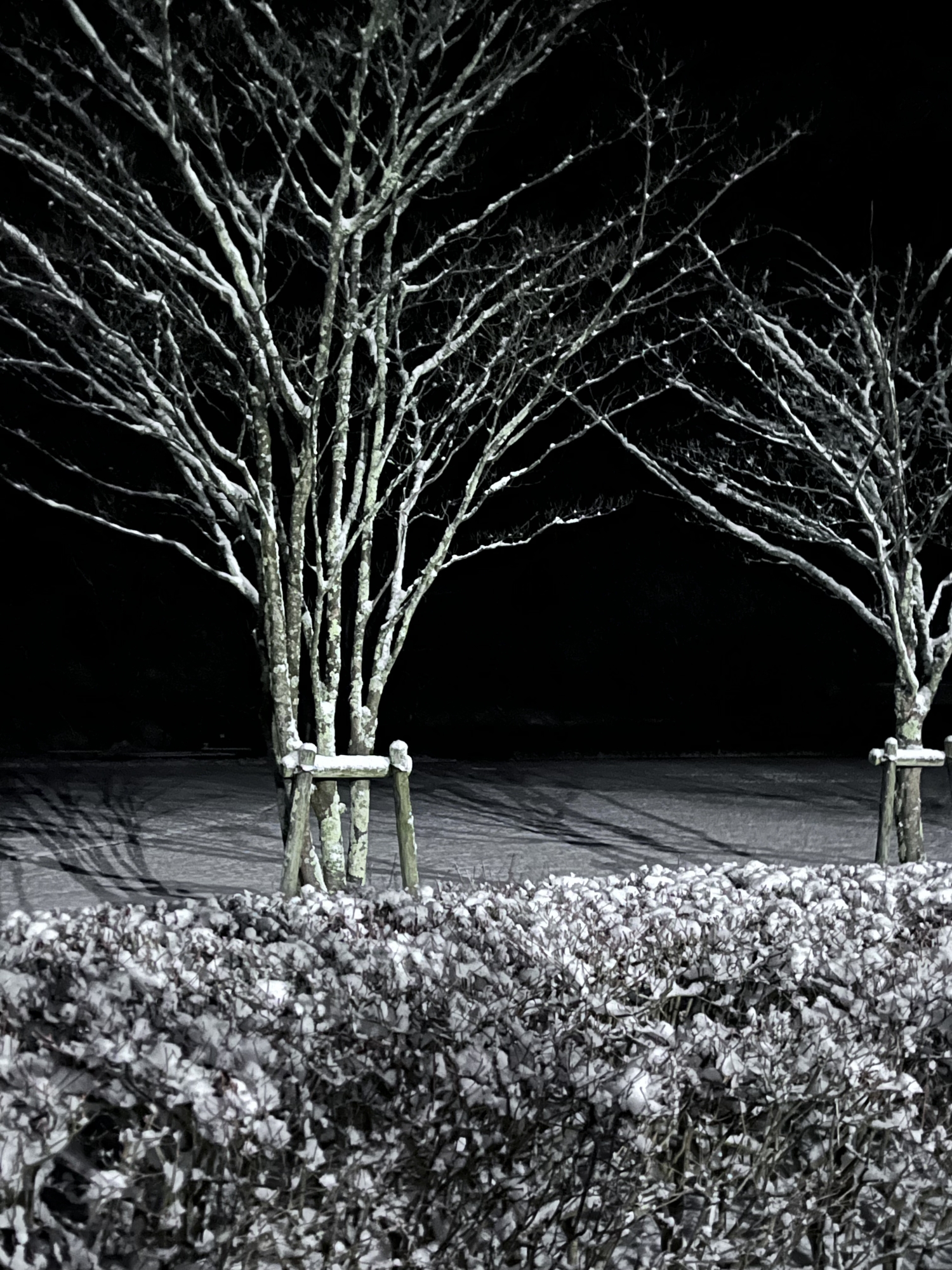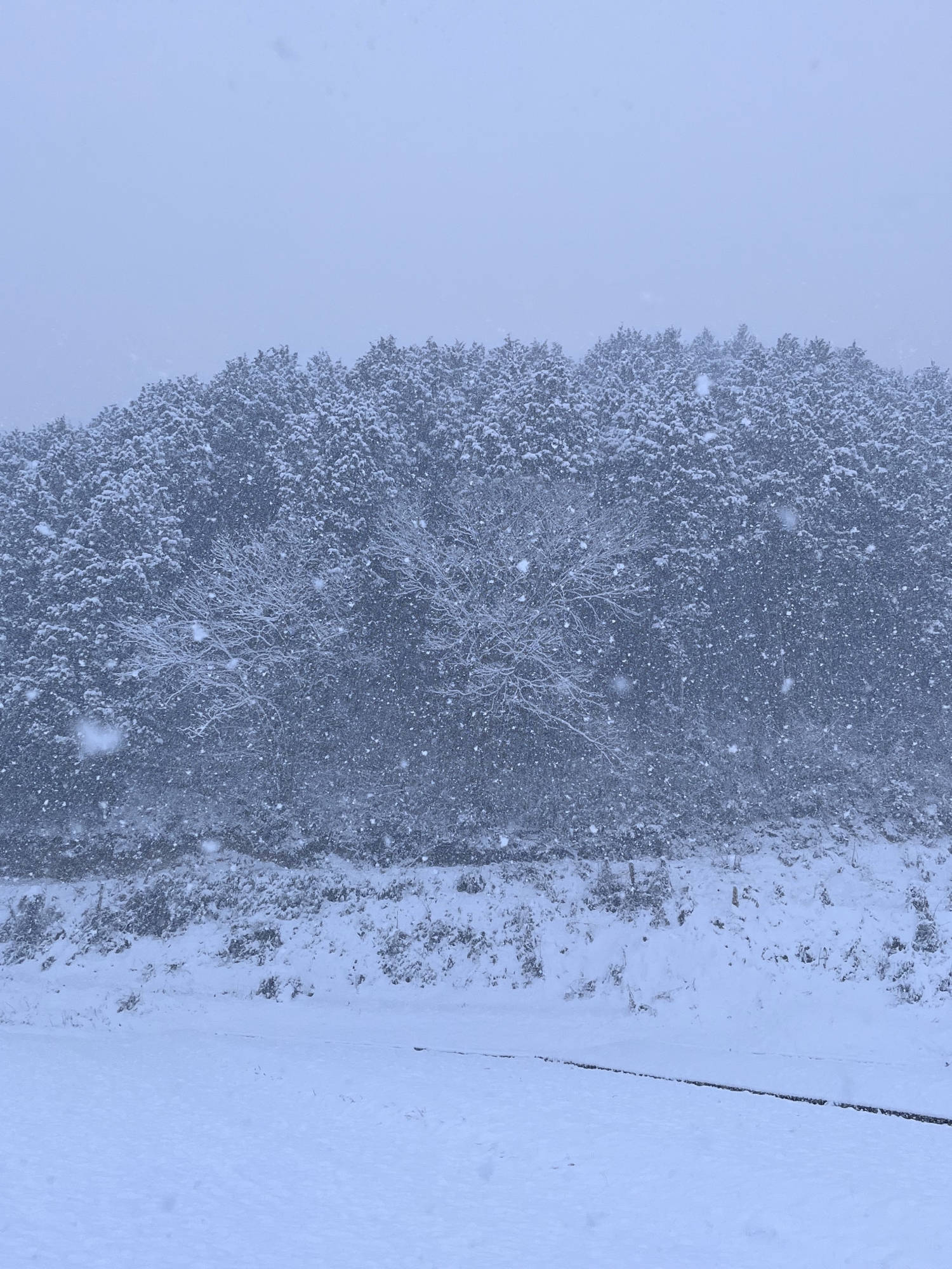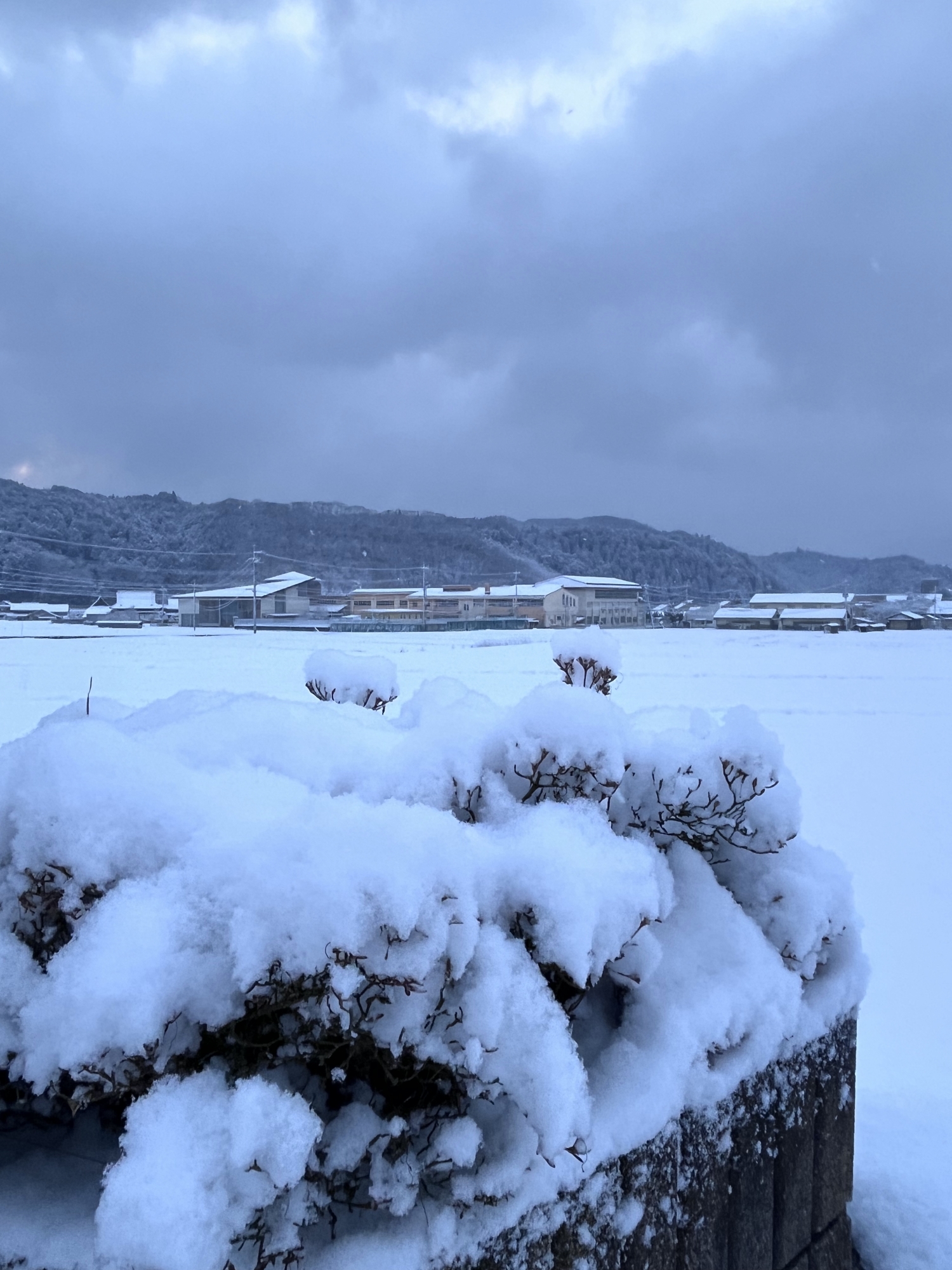 夜は英会話倶楽部で・・・でも、結構、降りますし、風も・・・夜のうちに、舗装道路には積もってないけど・・・。