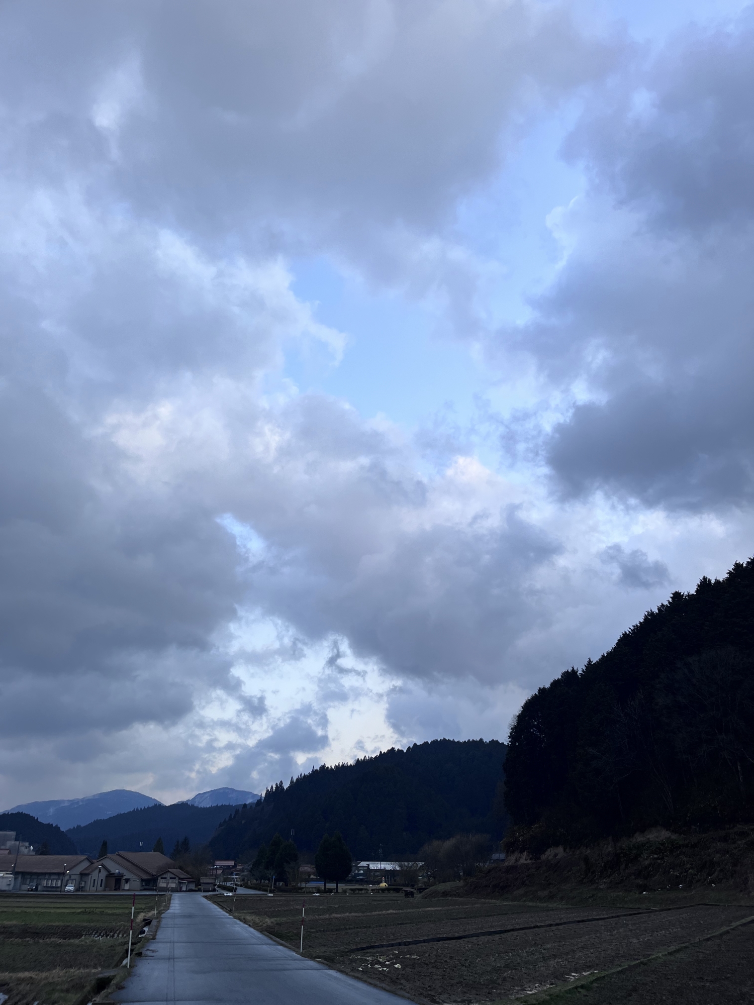 夜には、また、雨(予報は・・雪)でしたが、帰宅時には、少し、青空も。
