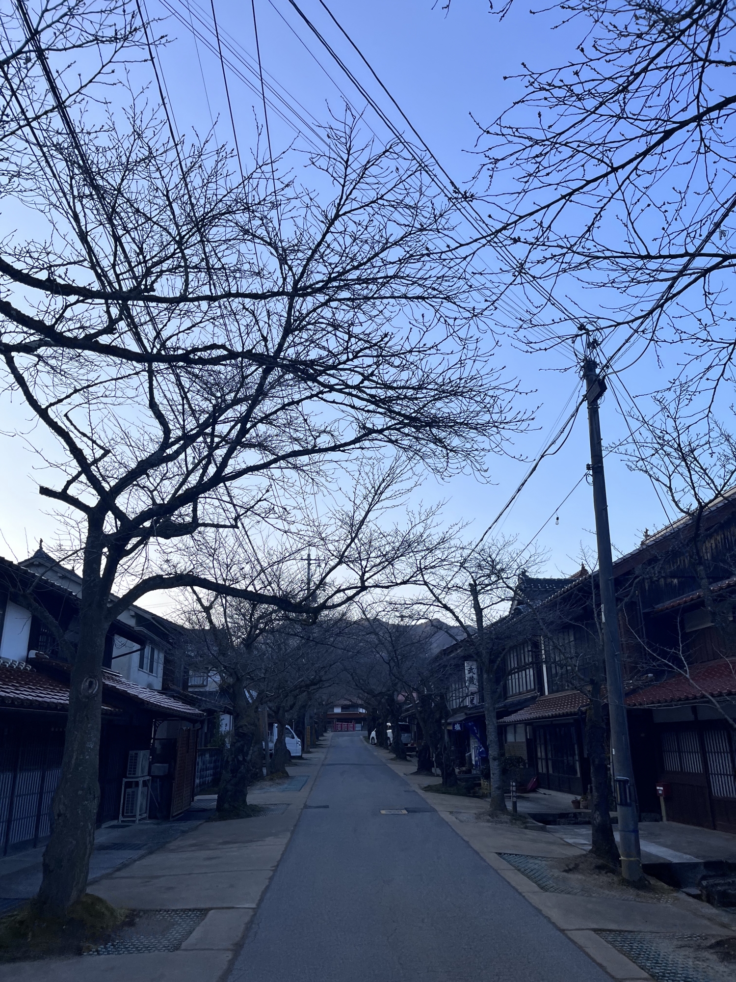 昼には、少し雨も降ったのかな? 濡れた舗道。