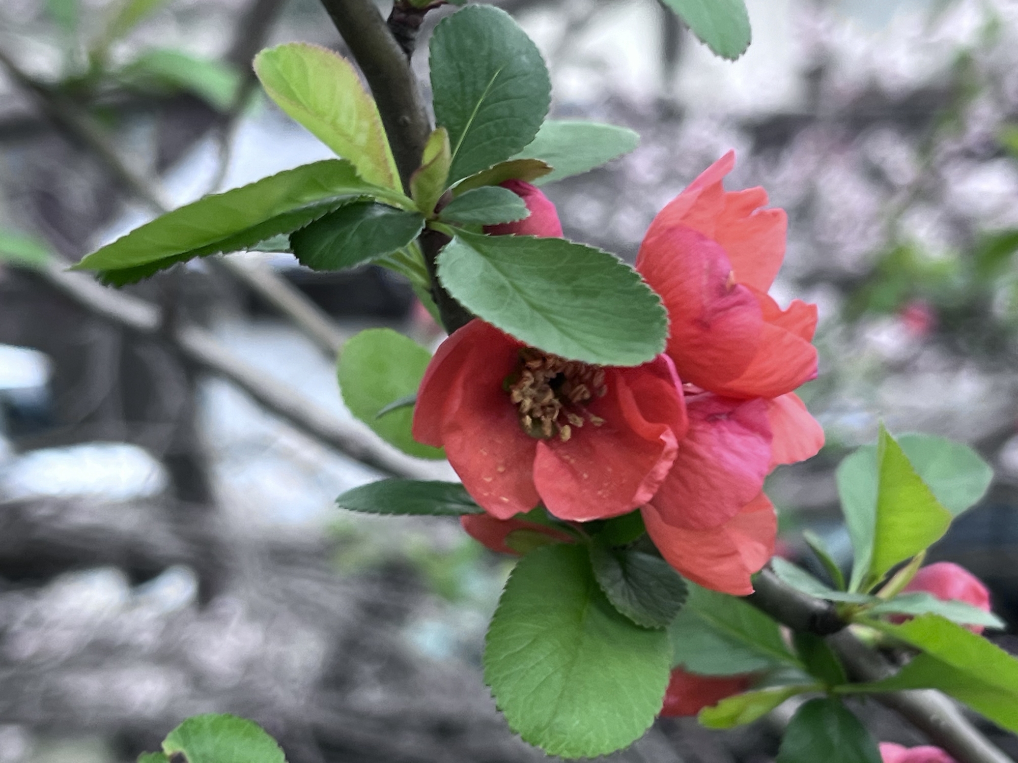 そして、桜の下に、木瓜。